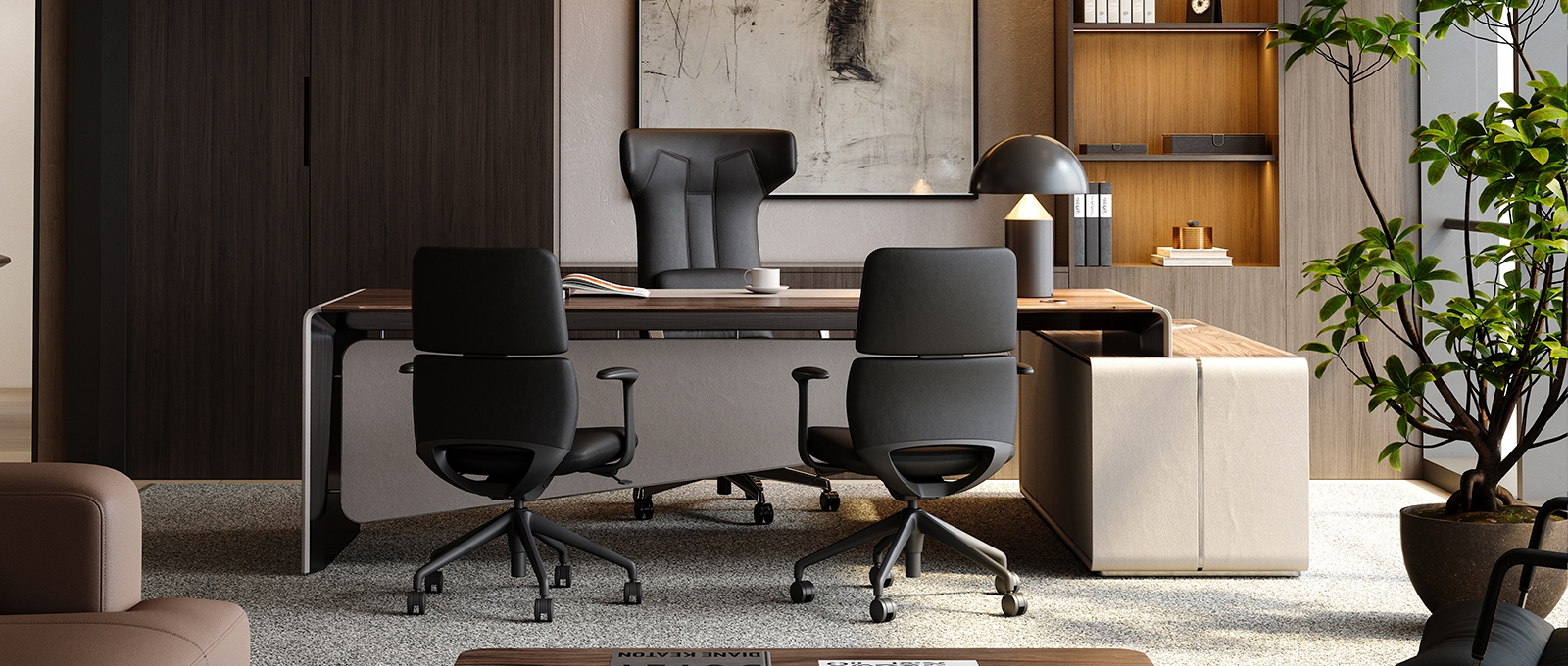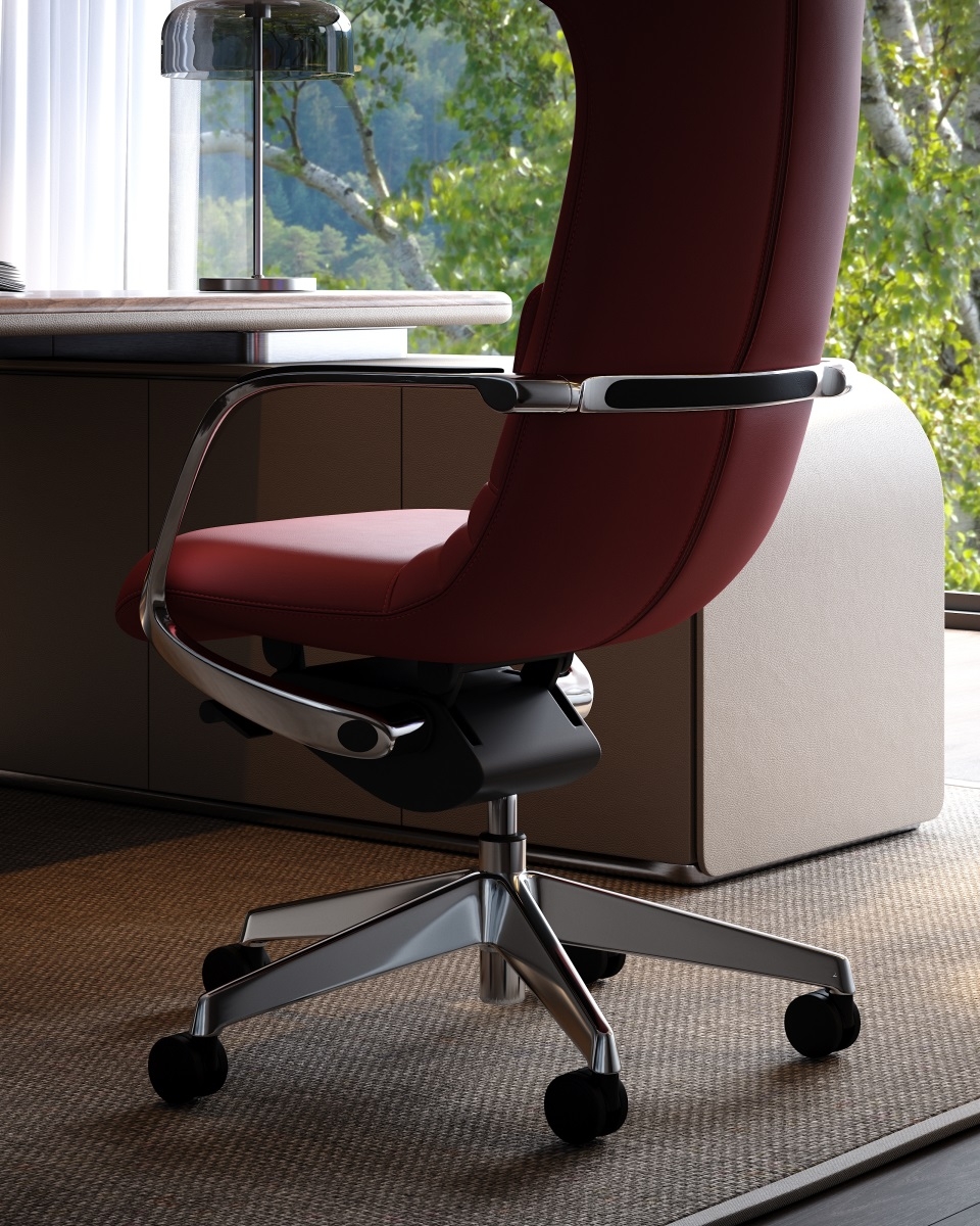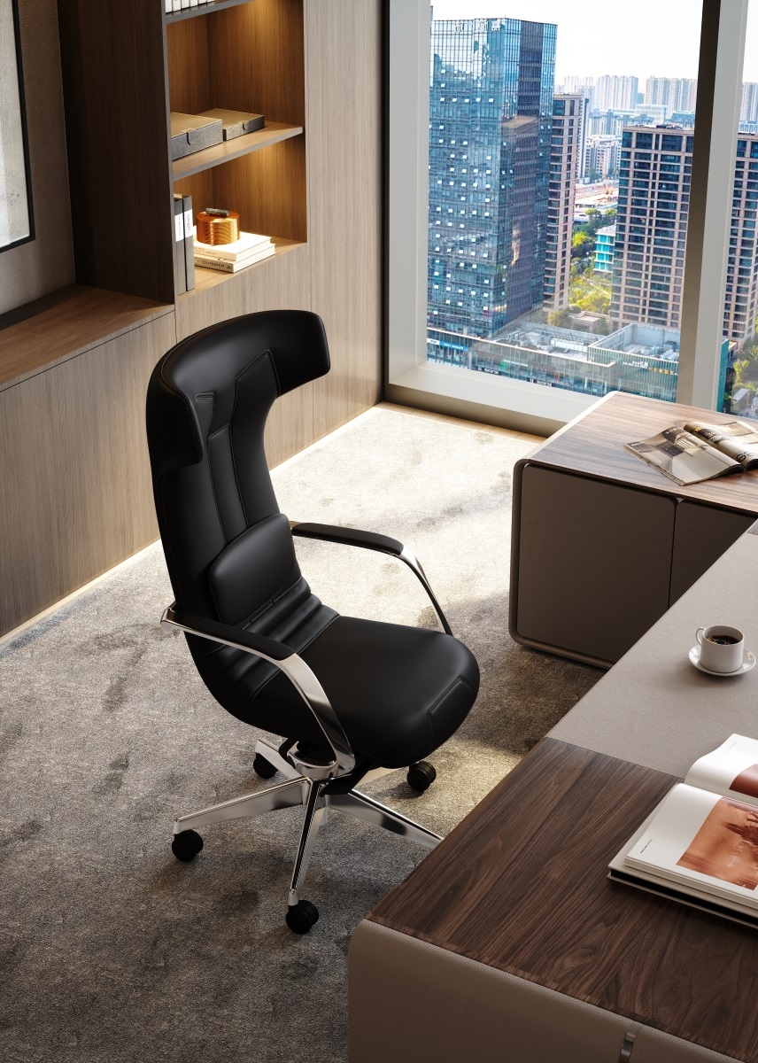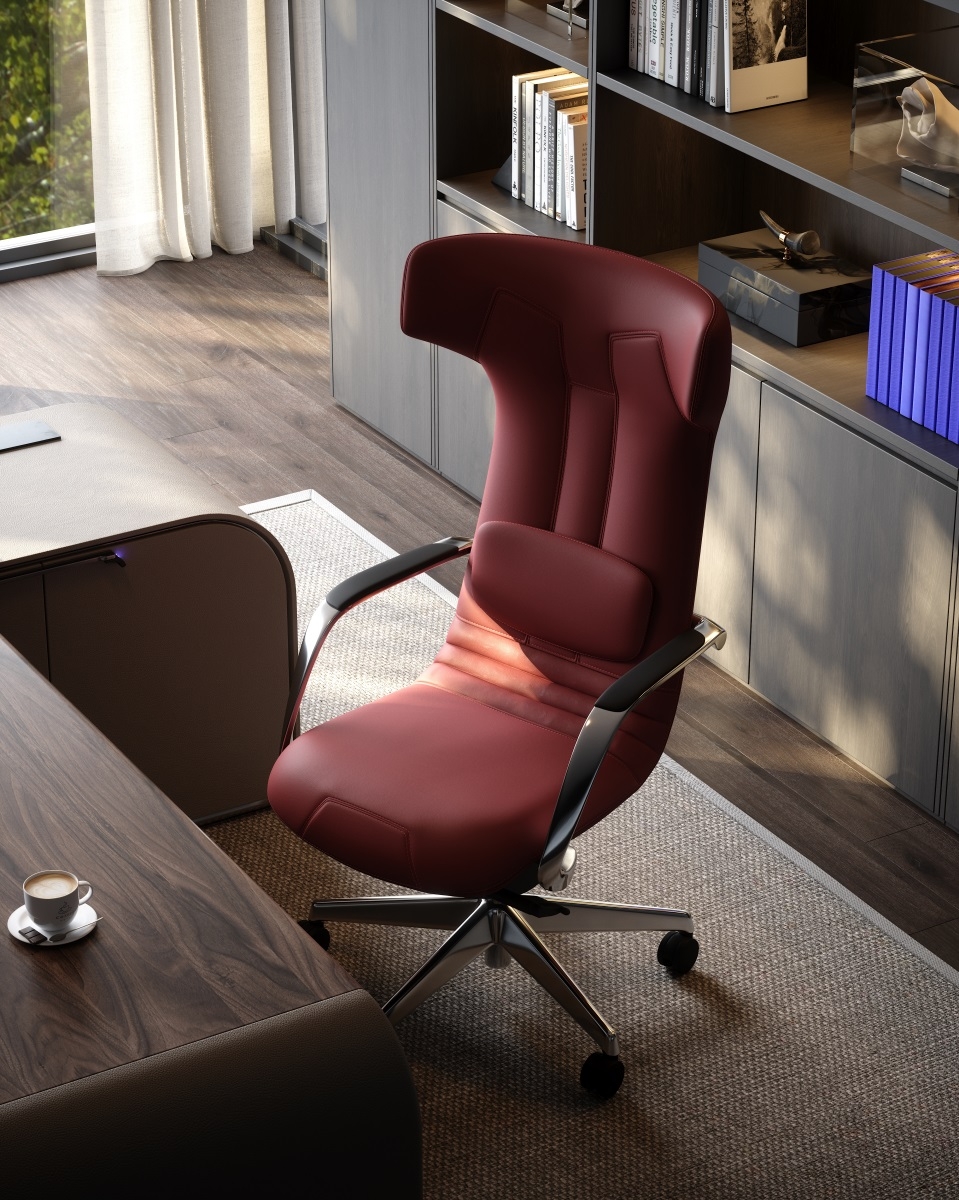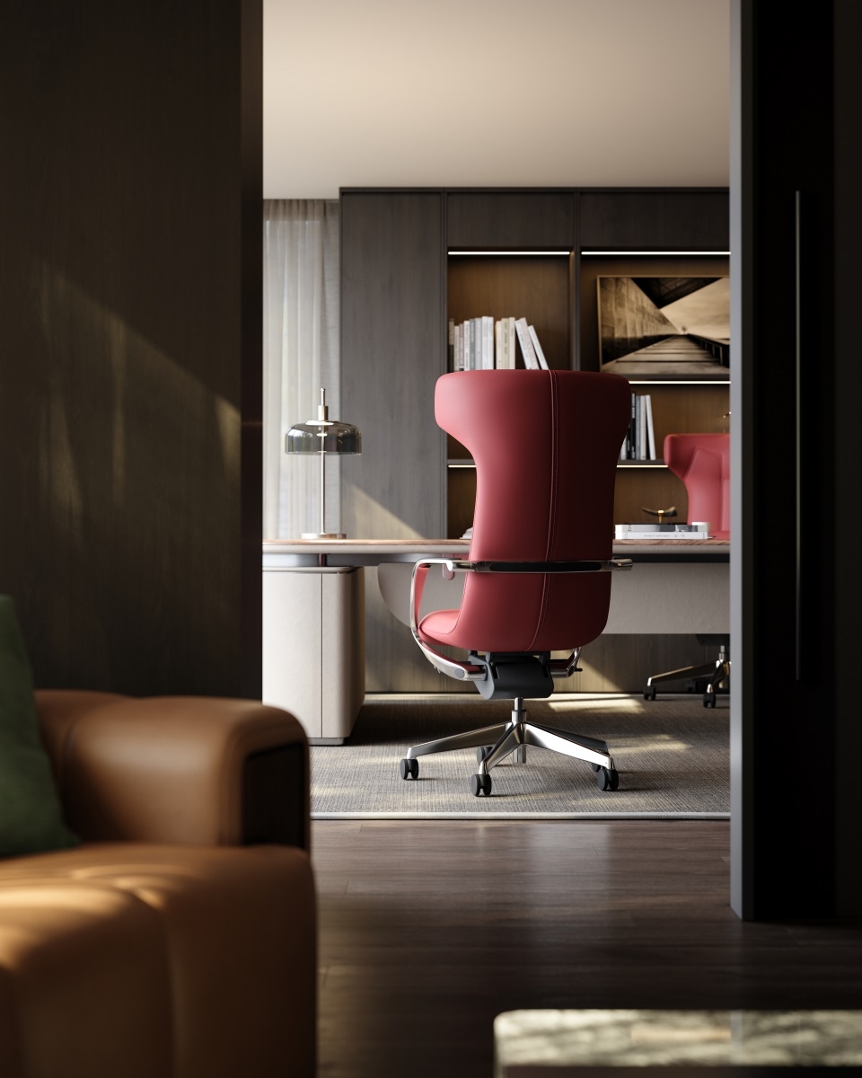 Placed in the space, it is not merely a chair but also a dynamic sculpture made of warm leather. To forge the ultimate elegant appearance of this office chair, the design team developed the market's first all-leather surface one-piece reclining structure.