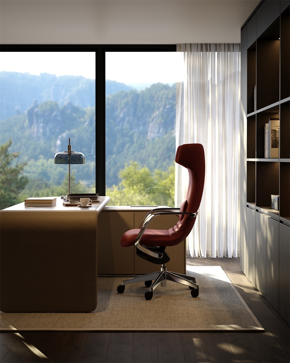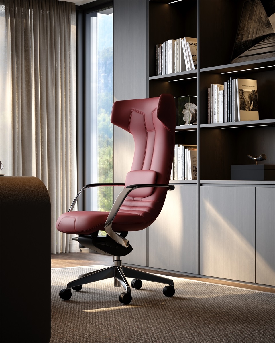 The chair body is made of high-quality genuine leather, which has both delicate touch and wear-resistant properties. The diamond pattern design on the surface adds a sense of refinement. The metal five-star footrest is sturdy and durable, with a neat luster. The combination of the two injects a high-end atmosphere into the office space.