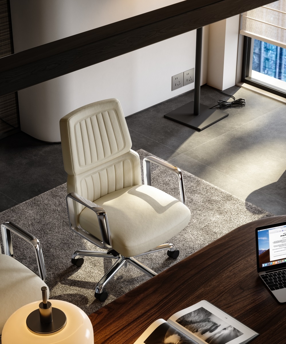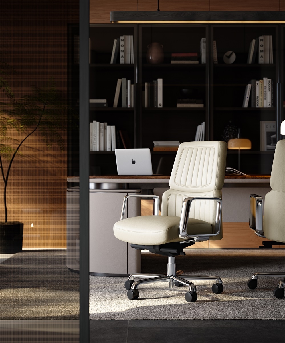 In a scene that focuses on office comfort and space style, this office chair, with its clever combination of leather, metal, and ergonomic design, becomes the "comfort leader" of the office area, turning every moment of working time into a comfortable experience of embracing quality office.