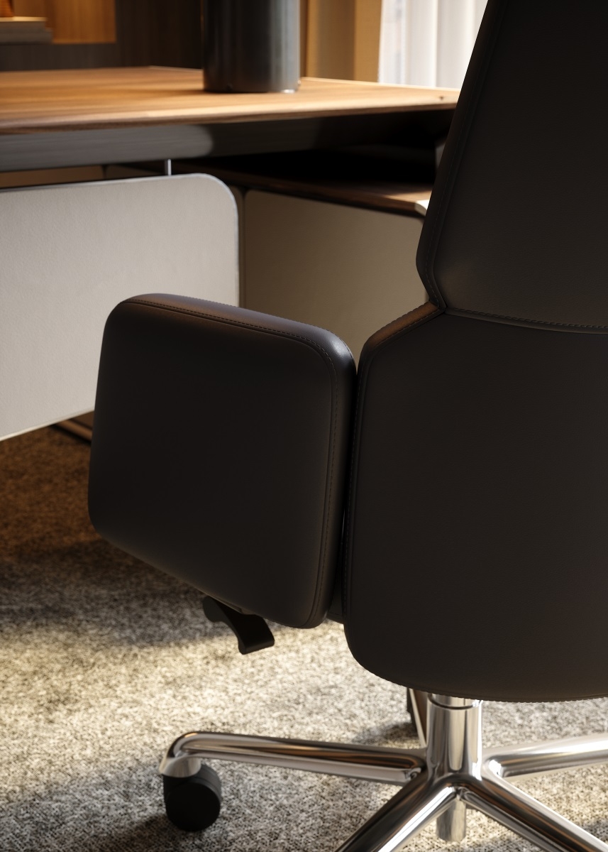 The ergonomic design of high backrest + adjustable armrests + streamlined seat cushion accurately fits the human spine curve and provides all-round support; with adjustable seat height and tilt function, it can meet the needs of different office postures, effectively relieve fatigue from sitting for a long time, let you say goodbye to back pain at work and return to a comfortable and efficient working state.