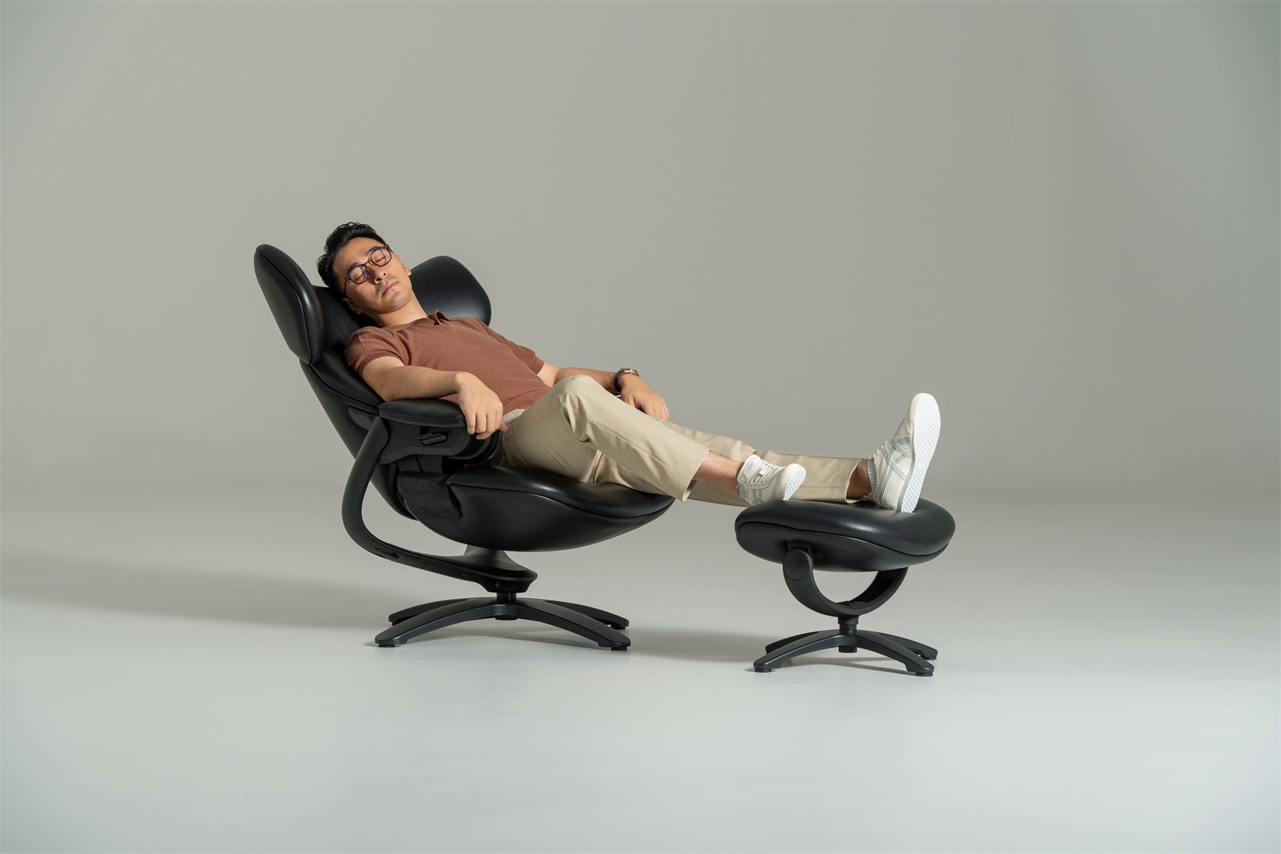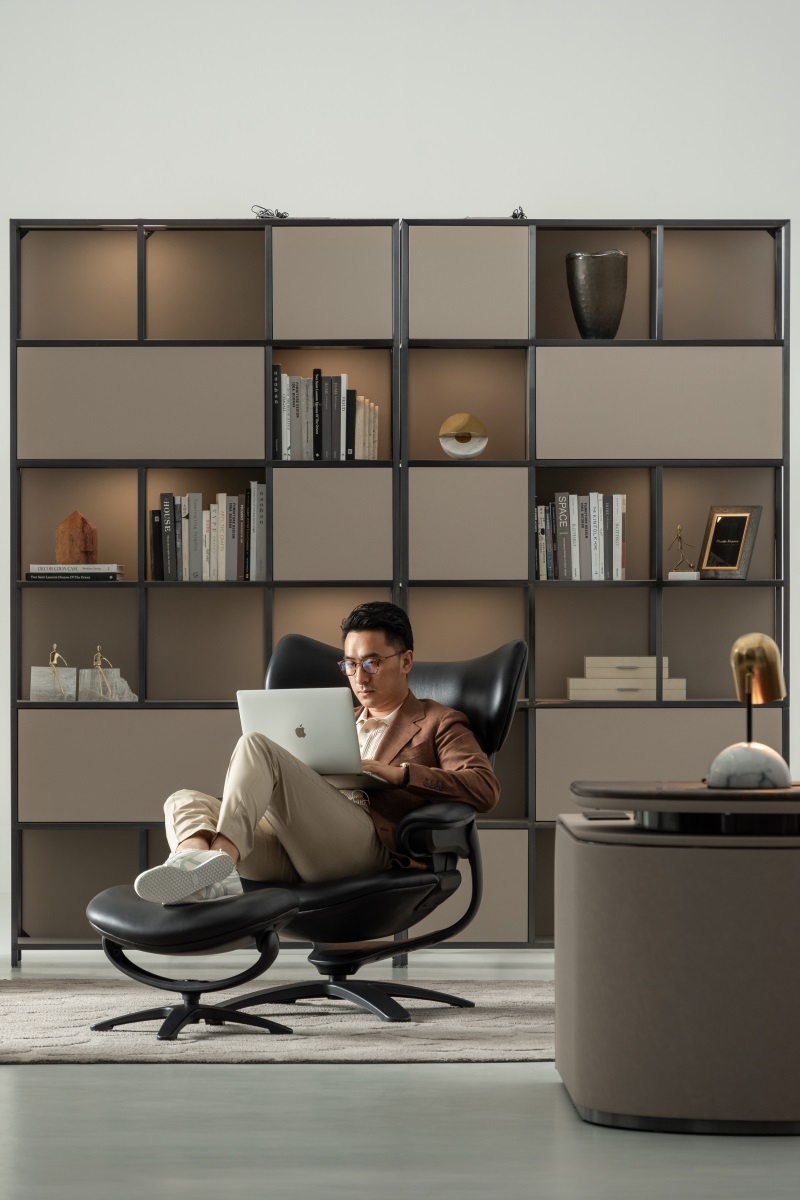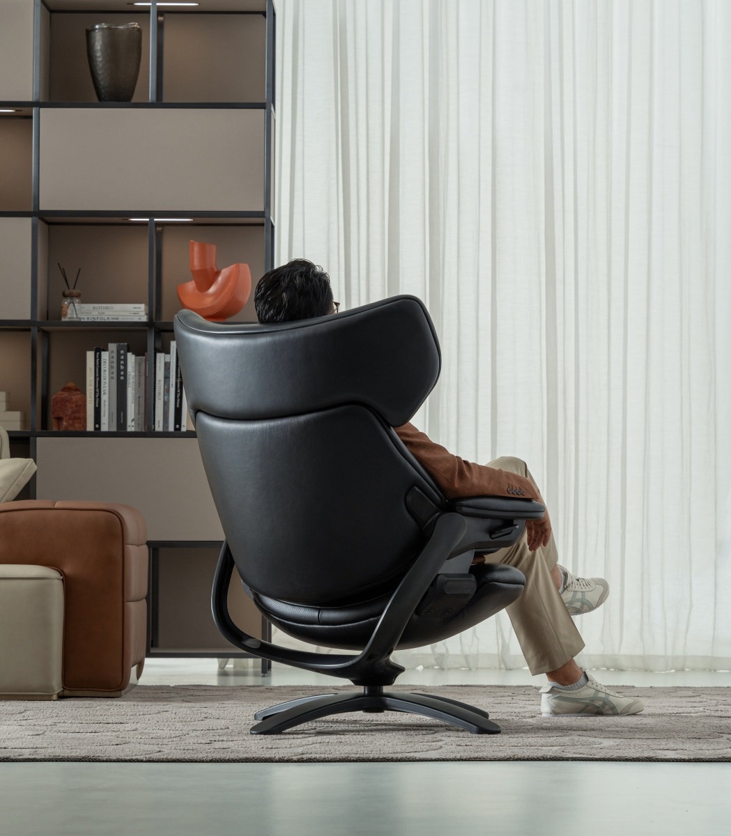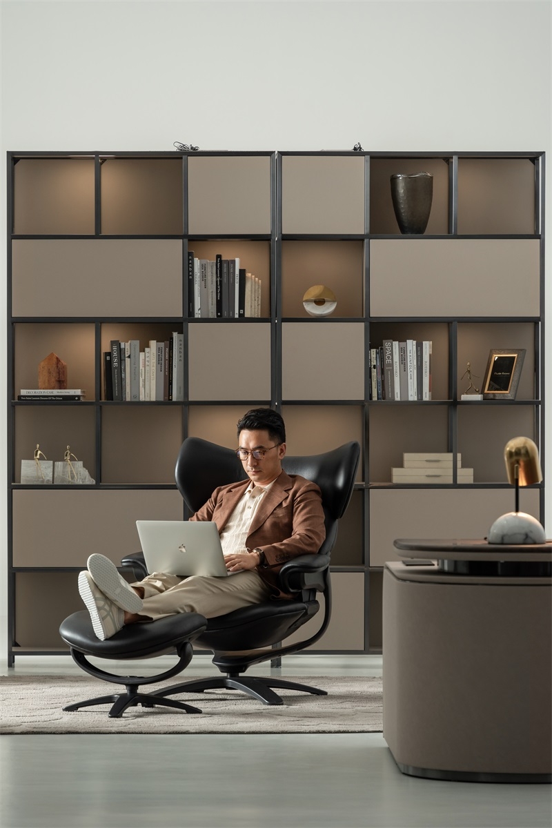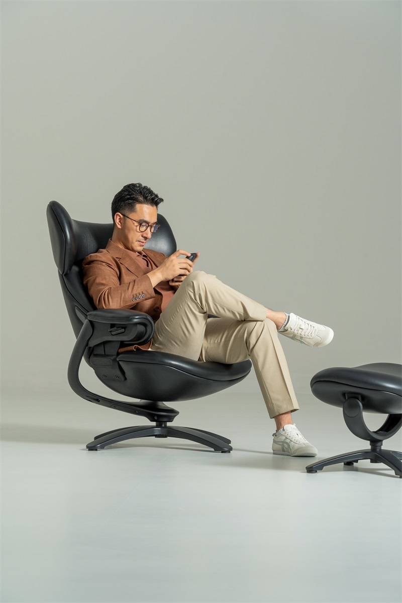 The egg-shaped wrap-around design gives people a sense of security and comfort that is enveloped, with smooth and dynamic lines and sculptural shapes connecting the mechanism and the chair legs, forming a sense of suspension separation between the seat and the support, and realizing the feeling of suspended sitting and experience.