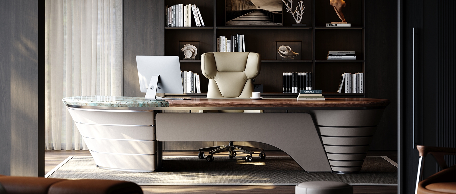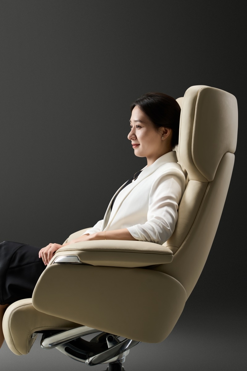 Jointly created by the German IDO international design team, it embodies the peak achievements of the TOMU Y series in ergonomics, structural language and haute couture aesthetics. With a 130cm high back, an 88cm wide seat, and a large encircling back wing design, it not only supports the back but also enhances the presence.