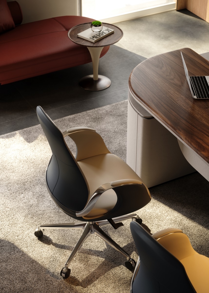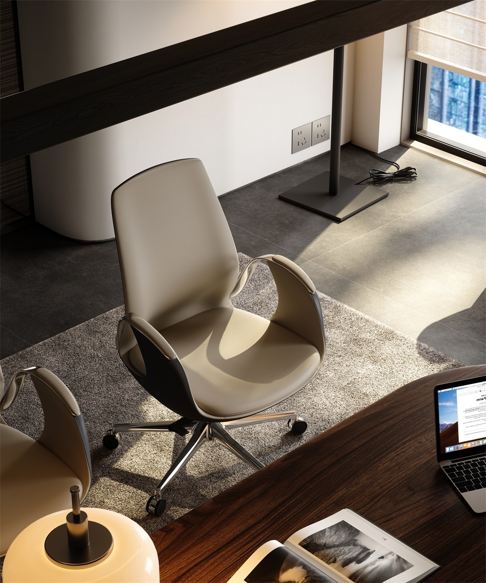 In a scene that focuses on office comfort and space style, this office chair, with its clever combination of leather, metal, and ergonomic design, becomes the "comfort leader" of the office area, turning every moment of working time into a comfortable experience of embracing quality office.