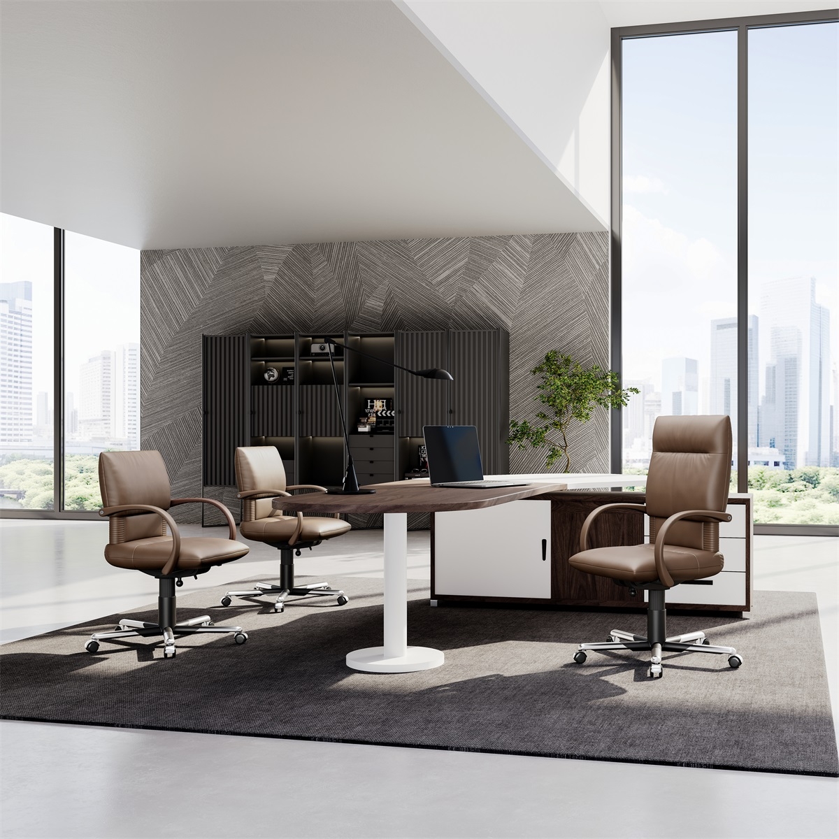 The ergonomic design of high backrest + adjustable armrests + streamlined seat cushion accurately fits the human spine curve and provides all-round support; with adjustable seat height and tilt function, it can meet the needs of different office postures, effectively relieve fatigue from sitting for a long time, let you say goodbye to back pain at work and return to a comfortable and efficient working state.