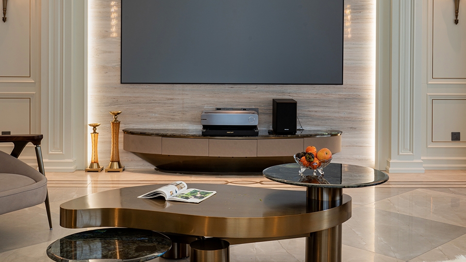 Use the Whole sofas and Kun leisure chairs to enclose an independent living room area. The Pillar coffee table and Minimalist TV cabinet are placed opposite each other at the center line, making the living room layout more orderly and distinct.