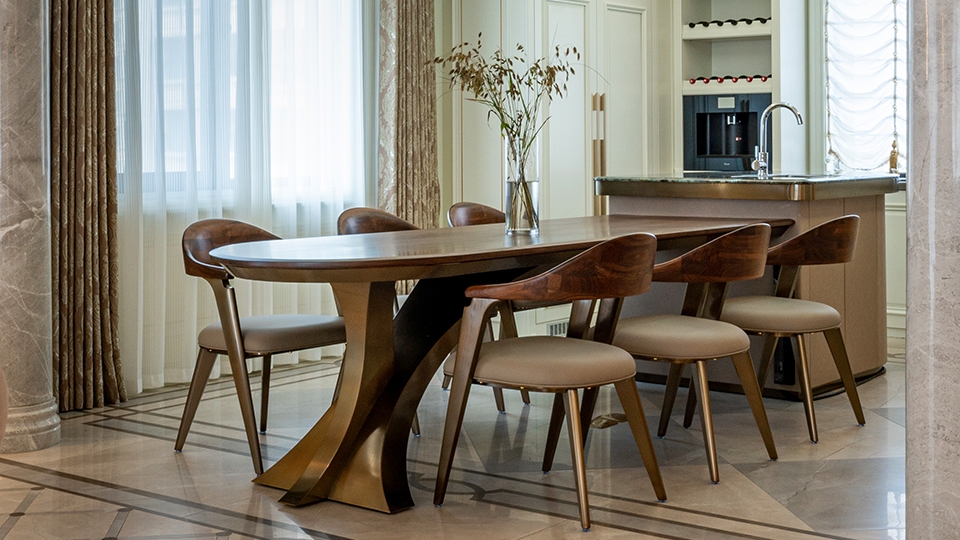The multi-functional Bridge island dining table is like an island filled with delicious food, making the restaurant a joyful interactive venue for families.