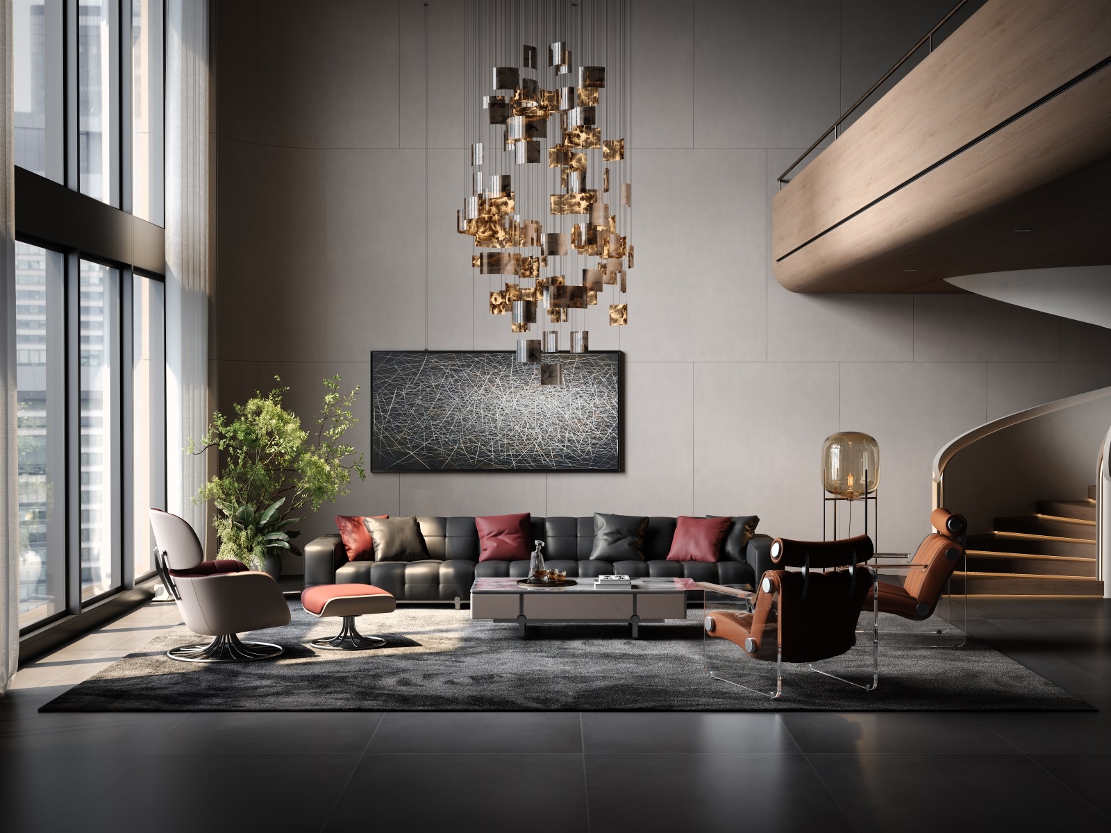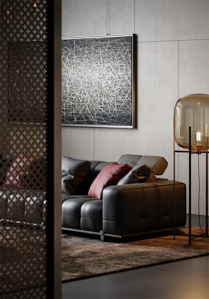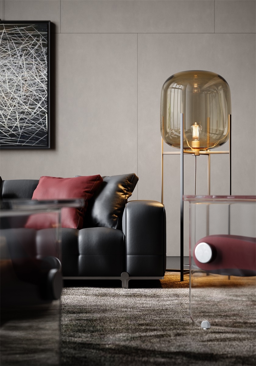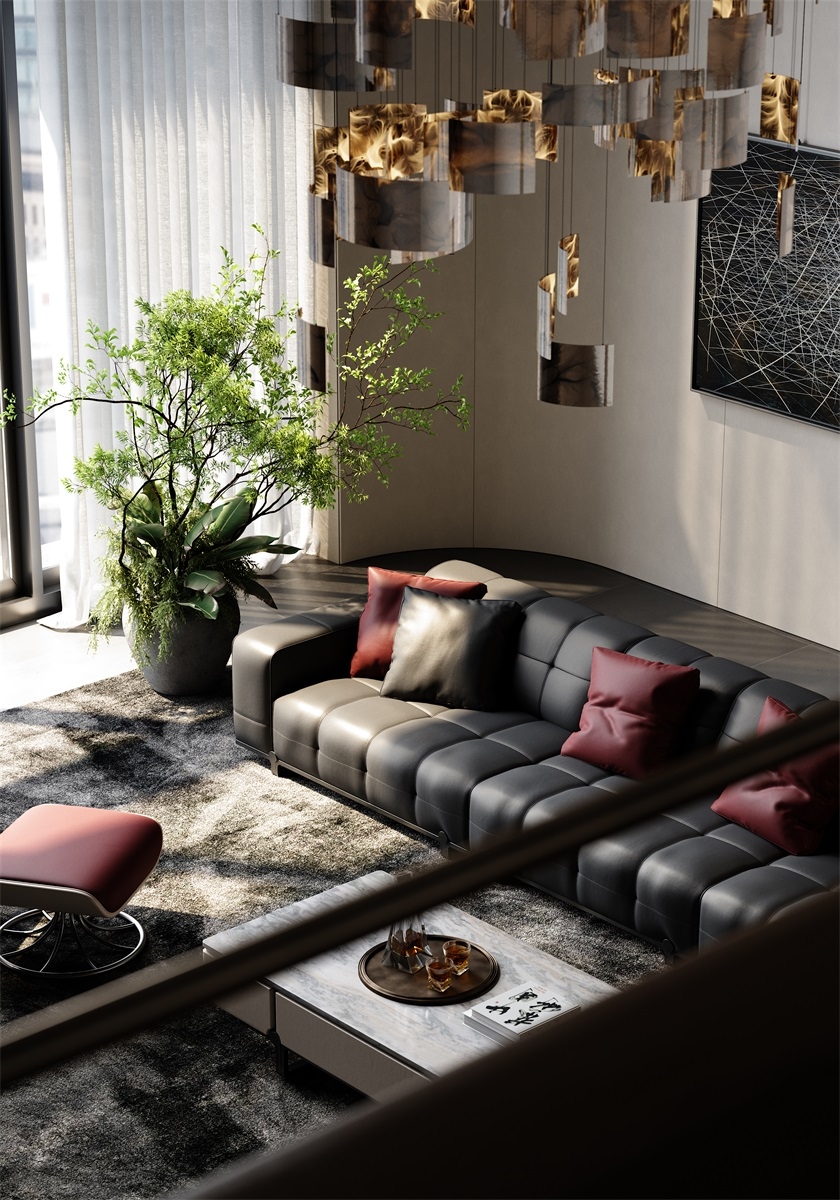 With simple geometric shapes, modules complement each other, like versatile building blocks, freely combining forms, endowing the magic of spatial transformation. Durable, cozy black leather offers a sumptuous touch and timeless appeal.Red pillows add a bold pop of color and visual interest.Clean lines and tailored cushions create an elegant, sophisticated look.