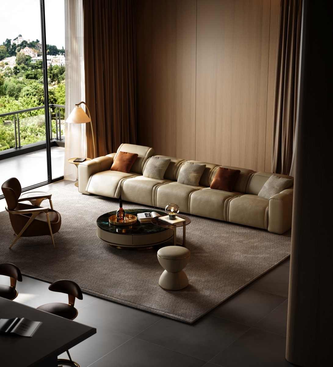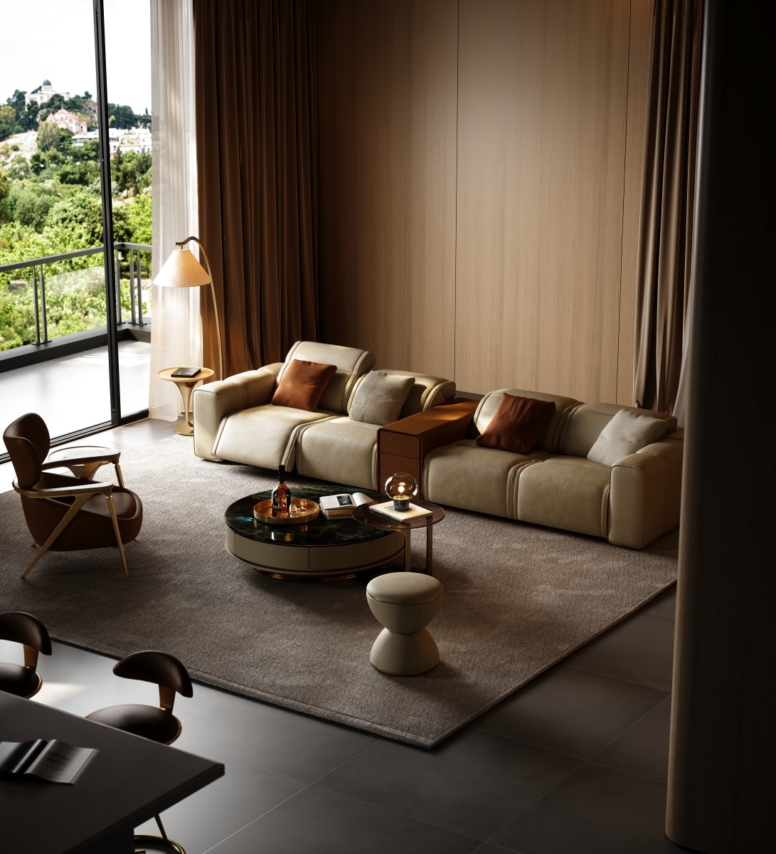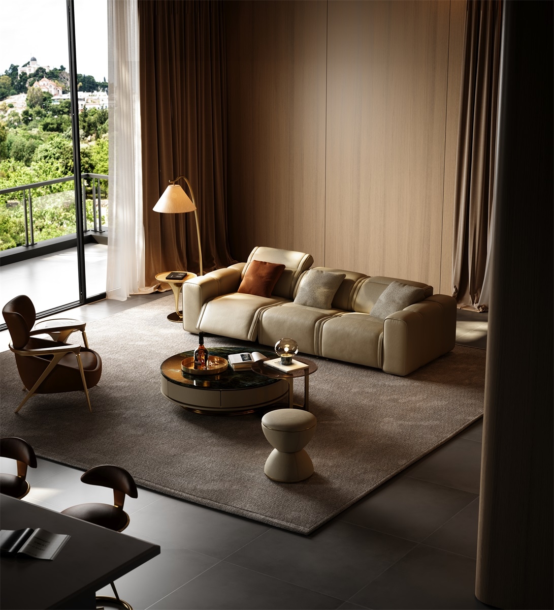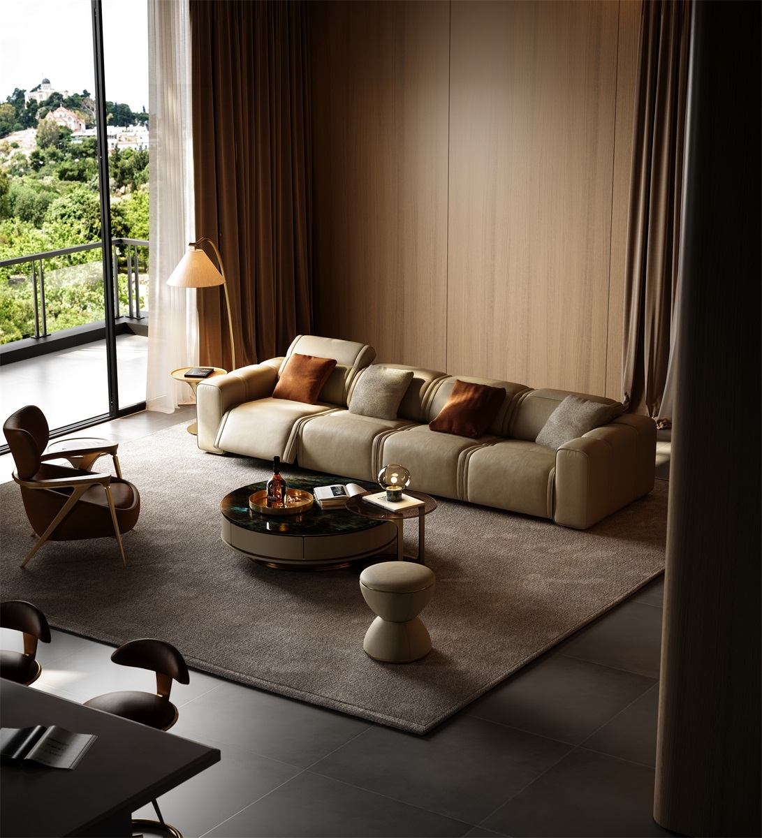 Candy comes with a sweet taste, providing people with a warm and healing experience. Savoring the physical and mental comfort and gentle love wrapped within, living every day of life with sweetness and warmth.Durable, cozy beige fabric offers a sumptuous touch and timeless appeal.A mix of brown and neutral pillows add visual interest and a pop of color.