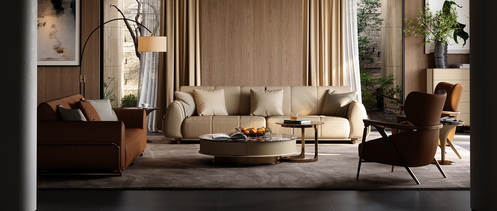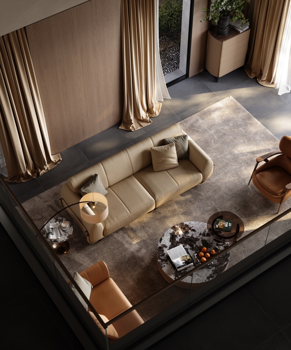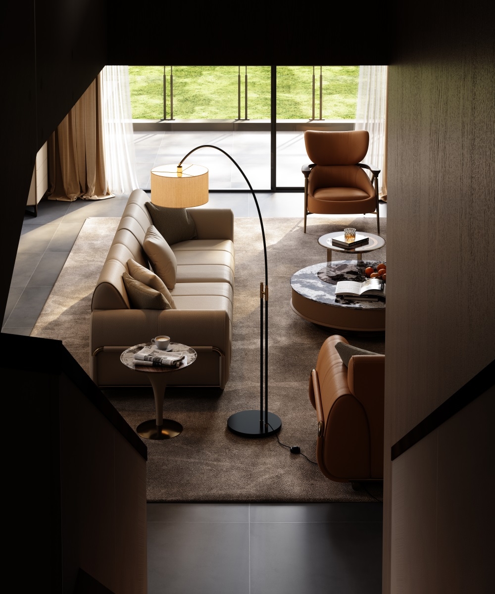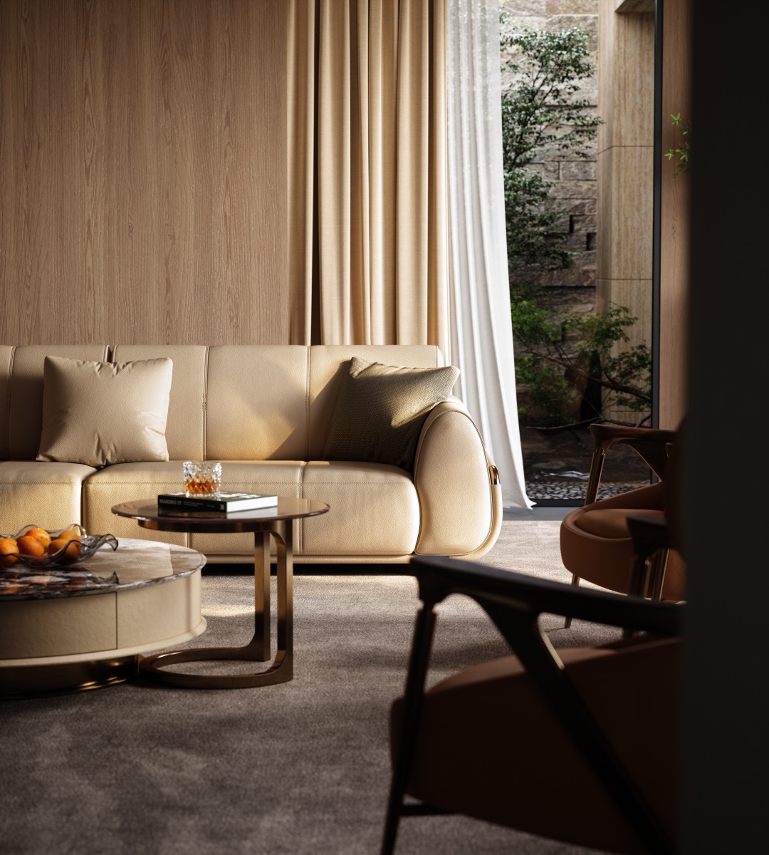 The sofa stitching is made of imported gold thread from Italy, hand-spun by a workshop along the shore of Lake Como. With a 12-needle per inch tight sewing process, it not only makes the leather splicing unbreakable but also Outlines exquisite geometric patterns on the surface of the sofa. When the slanting light shines, the gold threads will emit a delicate metallic luster, creating an interplay of light and shade with the matte texture of the leather, transforming the "detail-oriented" craftsmanship into flowing art in the living room