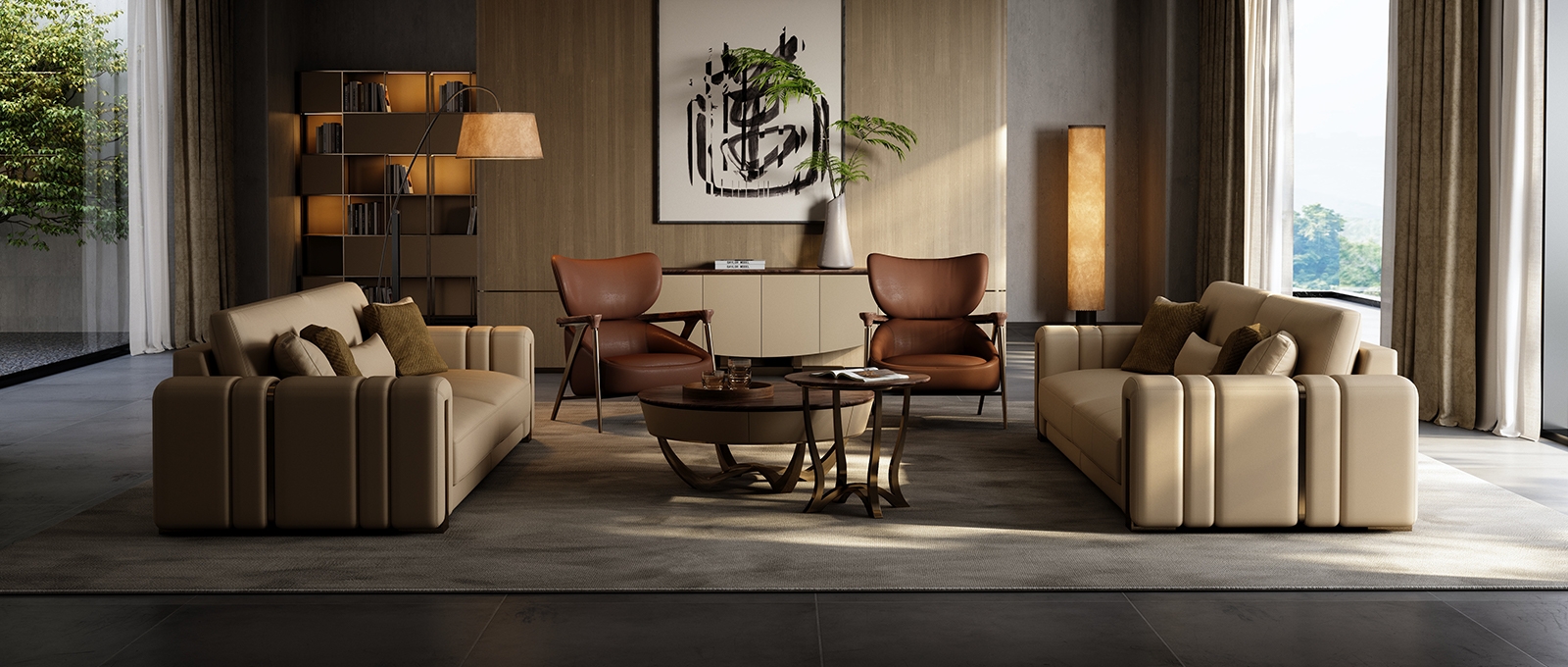 It can easily adapt to large living rooms of over 30 square meters. Whether it's a family gathering or a private solitude, it can create a comfortable corner exclusively for you. The backrest adopts a waterfall-style tilt Angle, naturally transitioning from the top to the cushion, perfectly conforming to the curve of the human body from the cervical vertebrae to the lumbar vertebrae.