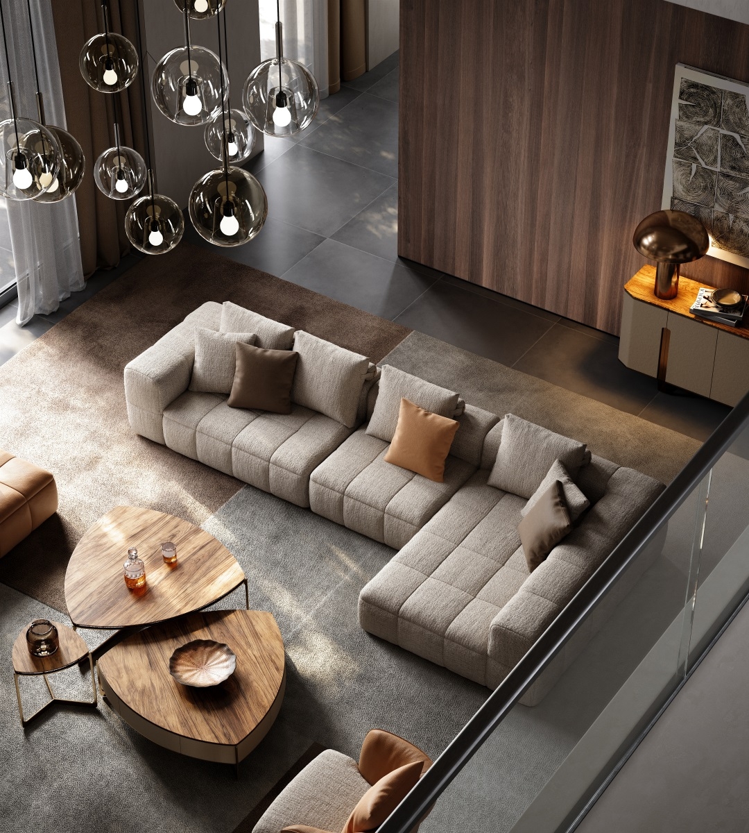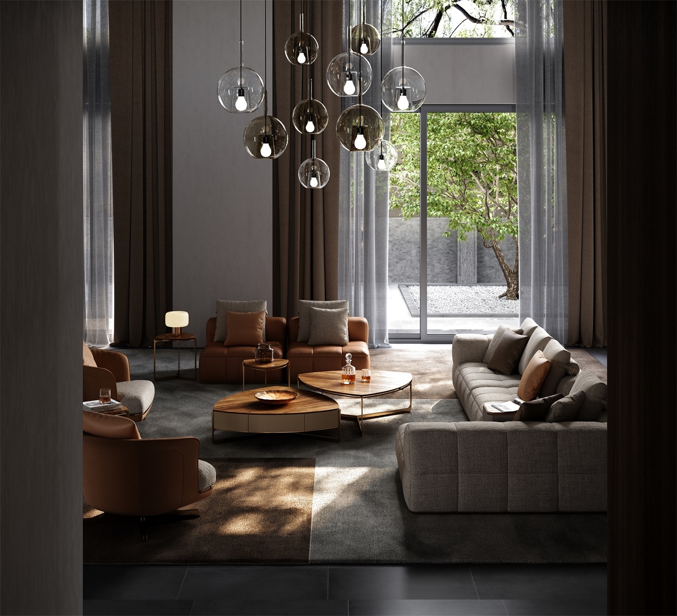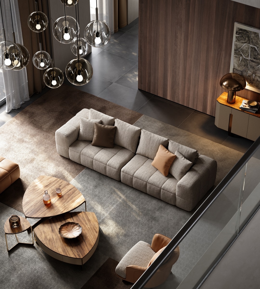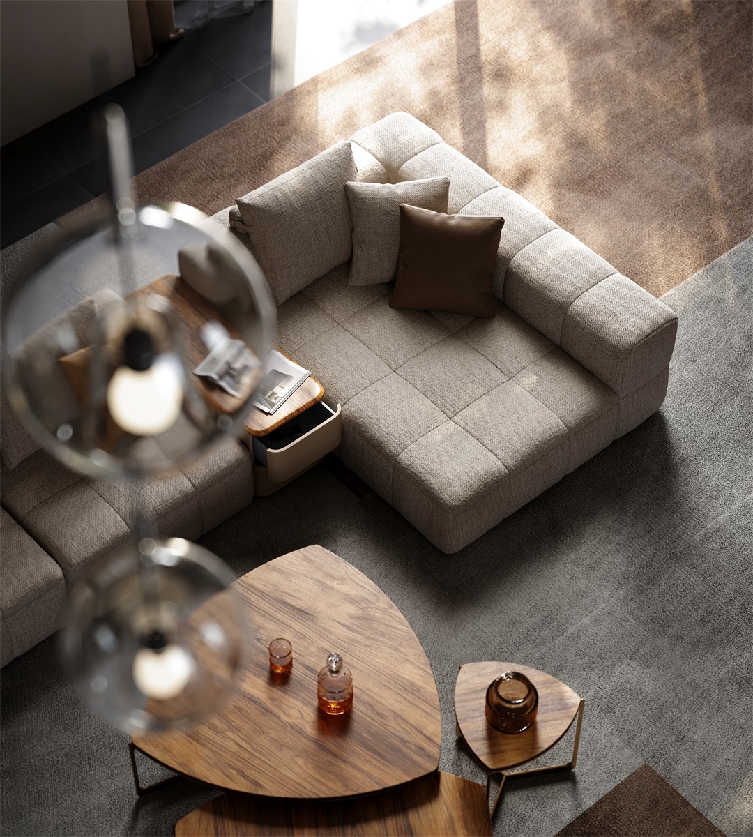 The innovative module design allows for free splicing and combination, adapting to different spatial forms. The small side table provides practical storage functions, making the layout more flexible. The full-bodied backrest and square-shaped design, combined with the exquisite embellishment of the metal base, are both aesthetically pleasing and comfortable.