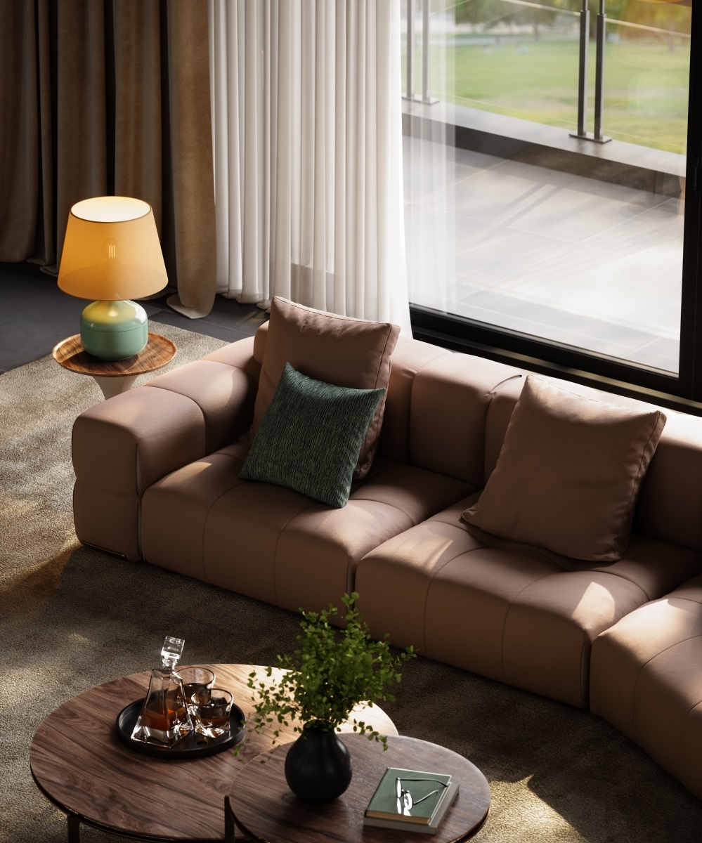 The design is simple, square, and practical, with a neat and orderly layout of the space, and the utilization rate of the space is beyond your imagination.The rich, brown leather is hand - selected for its buttery softness and durability, aging gracefully to develop a unique patina over time. Effortlessly adapt the sofa to your space – expand for grand gatherings or compact it for intimate lounging. The clean, linear design suits any contemporary or minimalist decor.