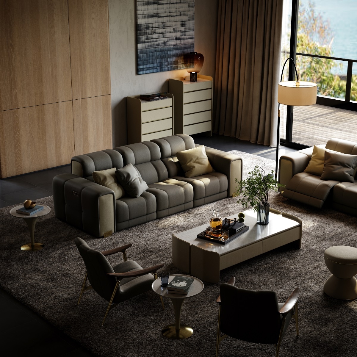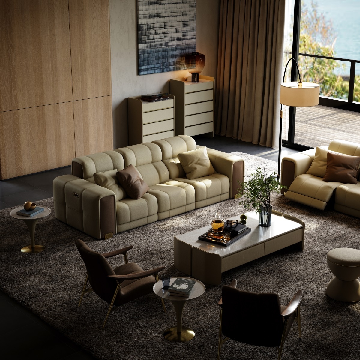 Each sofa set is hand-stitched by a senior craftsman with over 20 years of experience. The diamond-shaped quilting on the leather surface is precisely laid down to 0.1mm, with even and fine stitches. The arc treatment at the corners is smooth and round, and the details fully demonstrate the craftsmanship. The golden thread nanmu frame is joined with traditional mortise and tenon joints, without a single nail or glue, yet it can withstand a thousand pounds of pressure and remain as stable as ever after a hundred years.