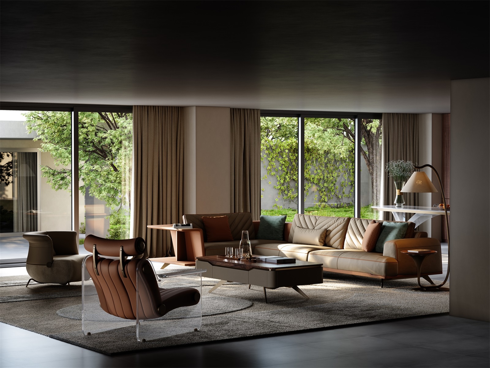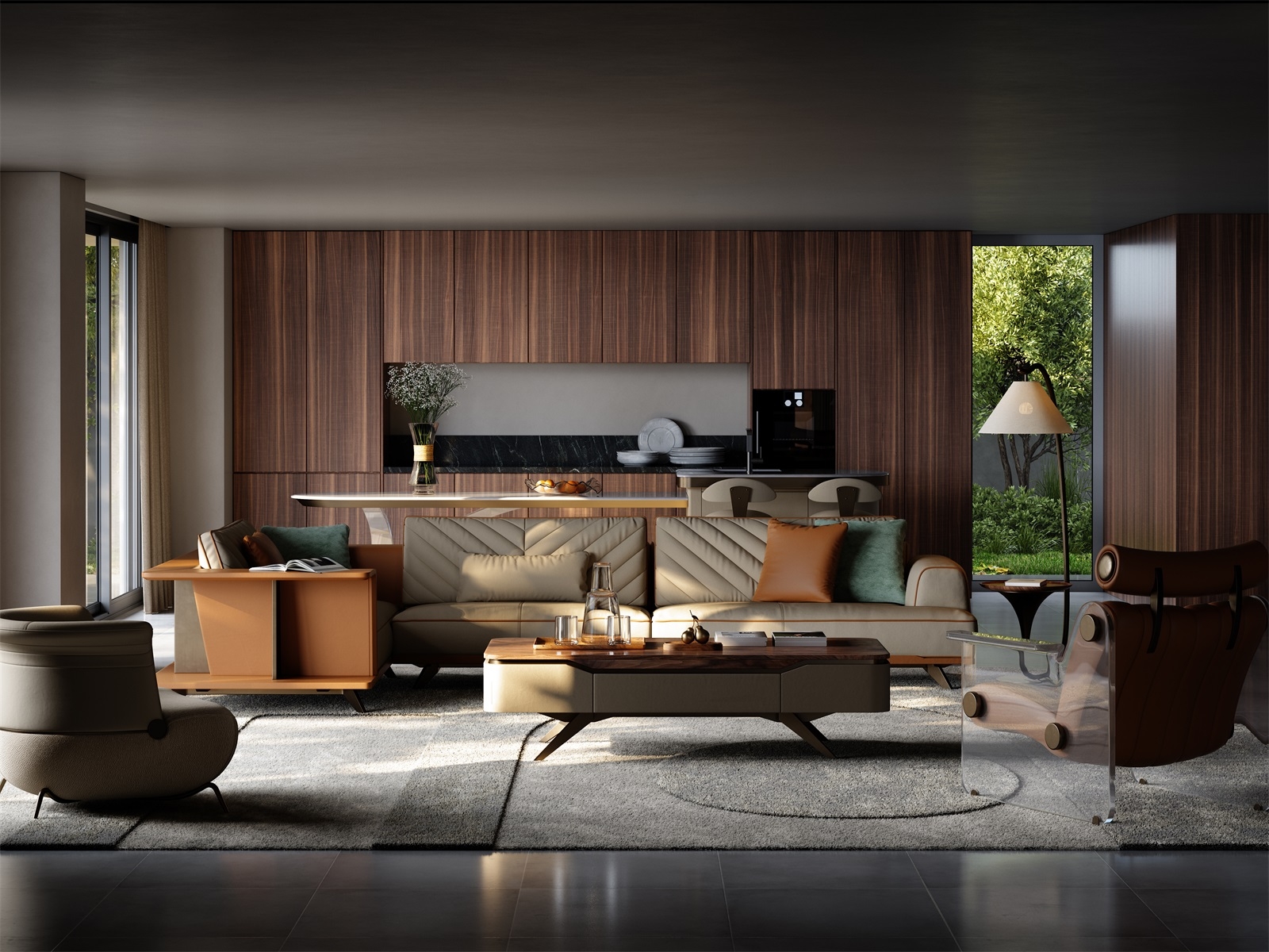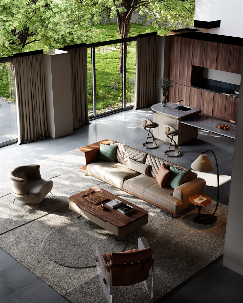 The main body of the sofa is made of top-grain calfskin imported from Italy. The leather is as fine as silk, with a smooth and warm touch. Every inch of the leather has natural pores and textures, exuding a rich and mellow leather aroma. After 28 complex tanning processes, the leather combines outstanding wear resistance and breathability. As time goes by, it forms a unique warm patina, further highlighting the luxurious texture accumulated over the years.