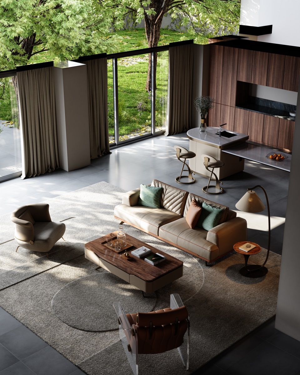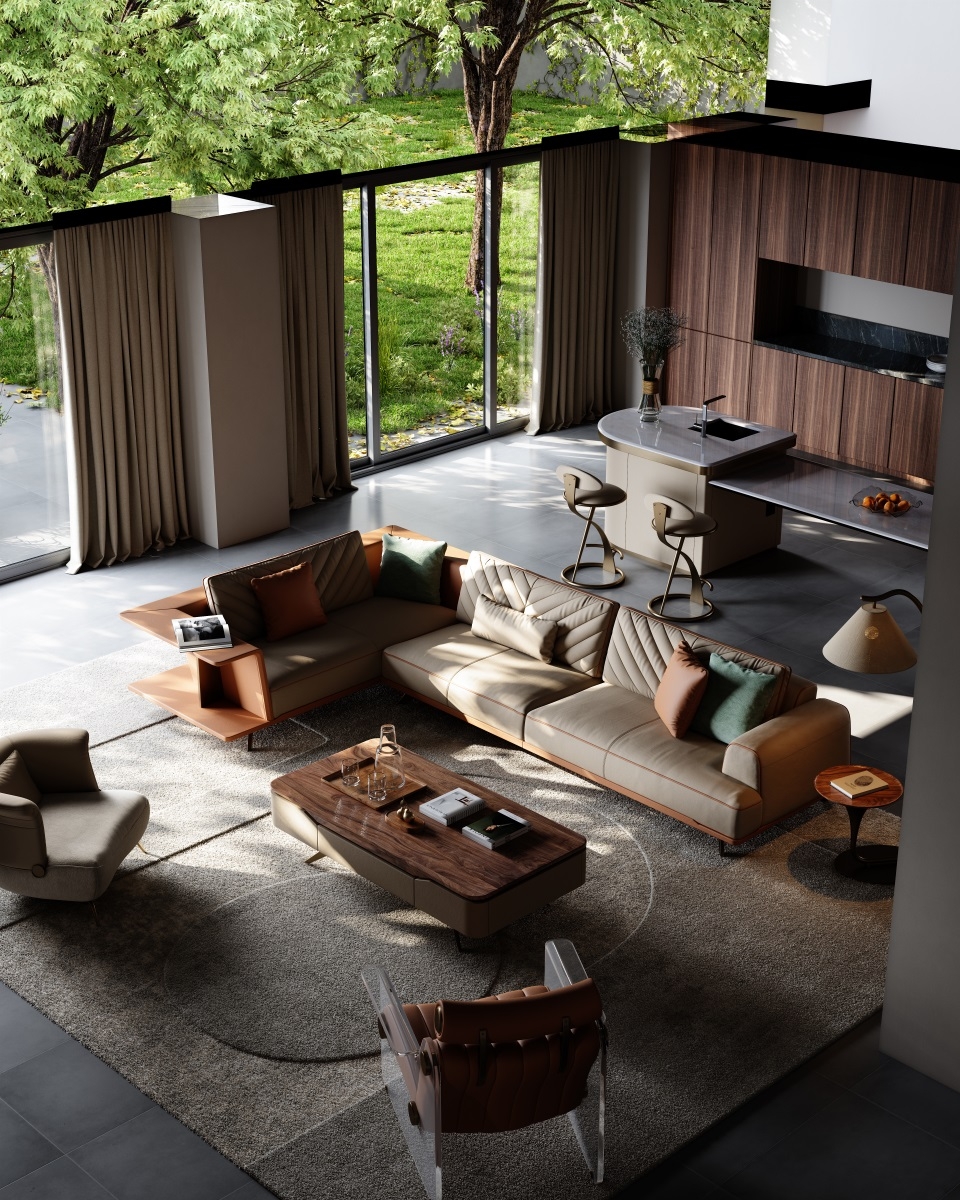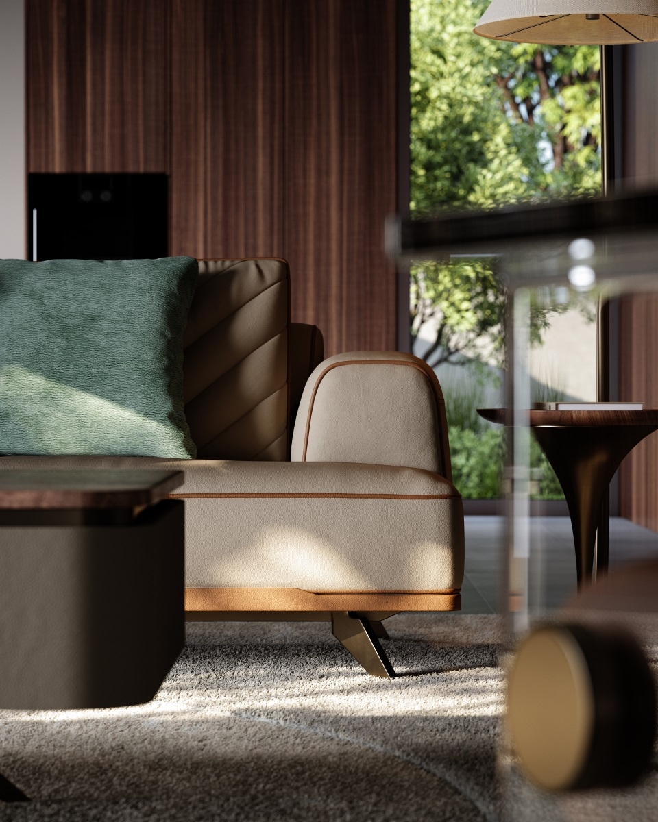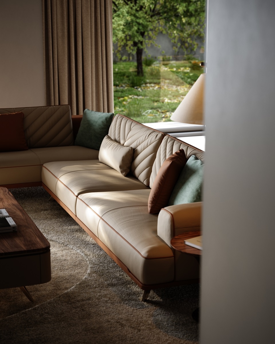 The main body of the sofa is made of top-grain calfskin imported from Italy. The leather is as fine as silk, with a smooth and warm touch. Every inch of the leather has natural pores and textures, exuding a rich and mellow leather aroma. After 28 complex tanning processes, the leather combines outstanding wear resistance and breathability. As time goes by, it forms a unique warm patina, further highlighting the luxurious texture accumulated over the years.