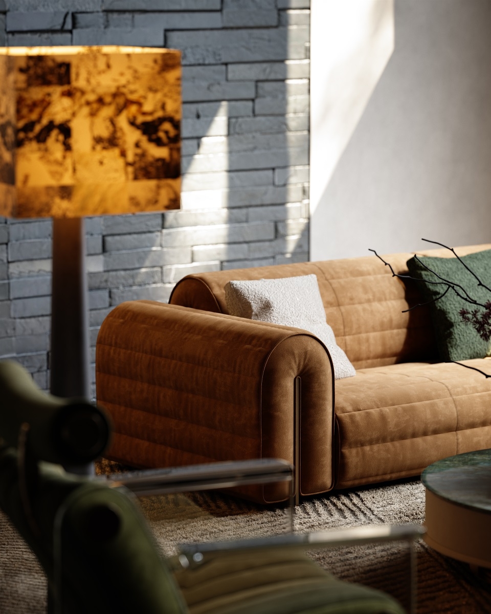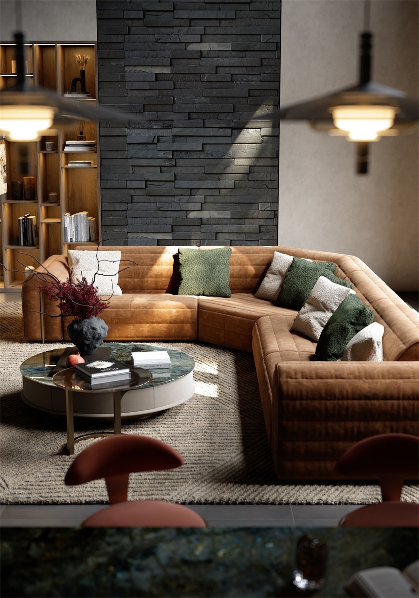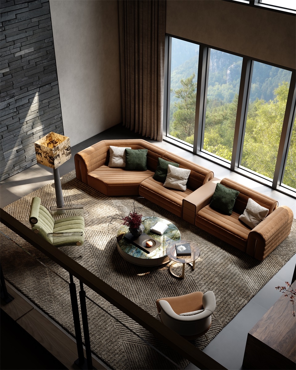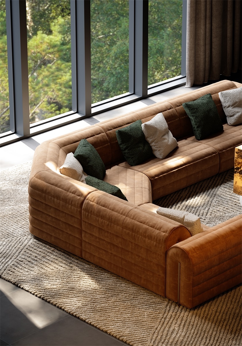 The shape of the sofa armrest resembles jade seal, and the natural and smooth bending process at both ends gives the work a subtle and noble beauty without being ostentatious.
