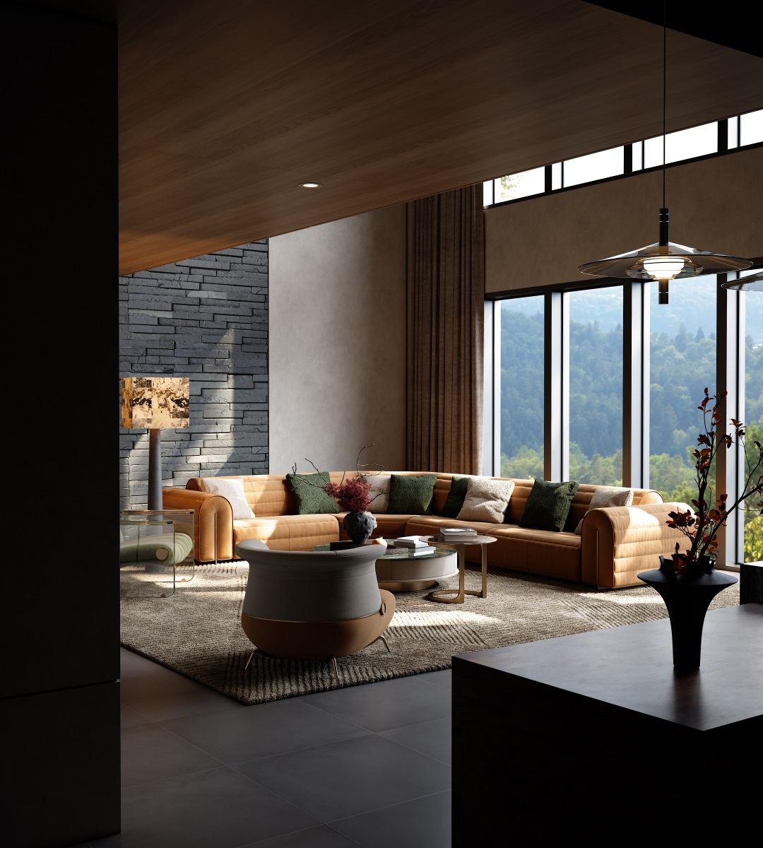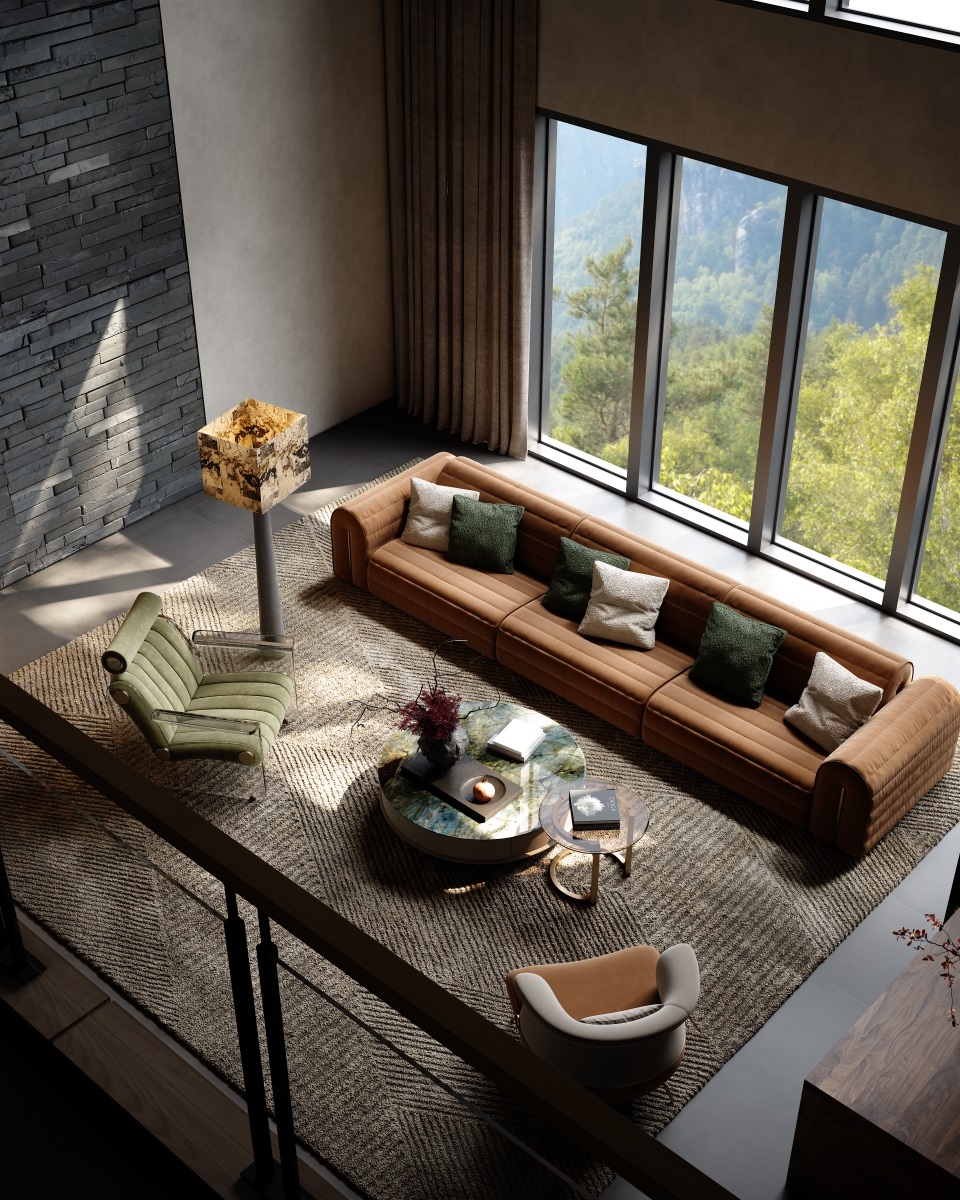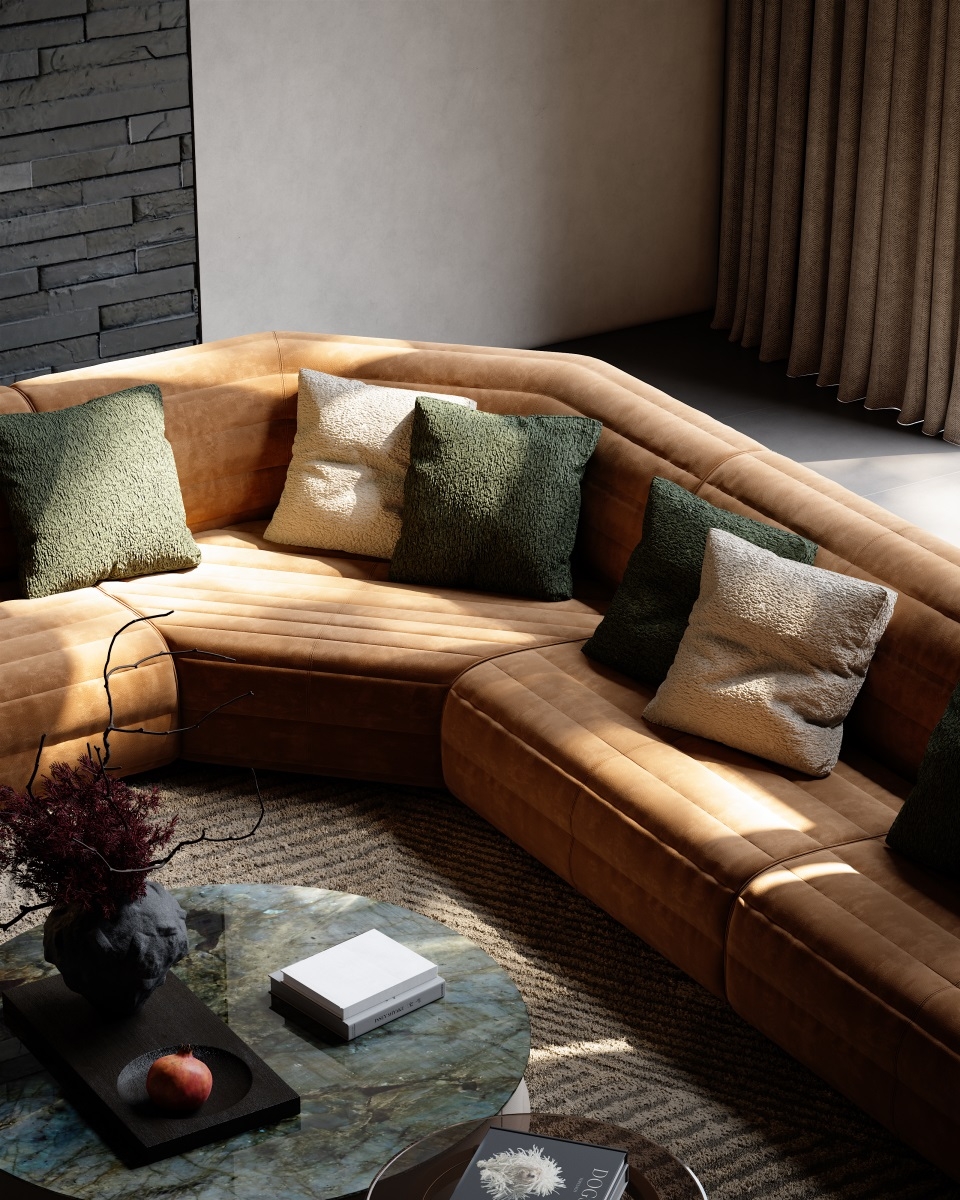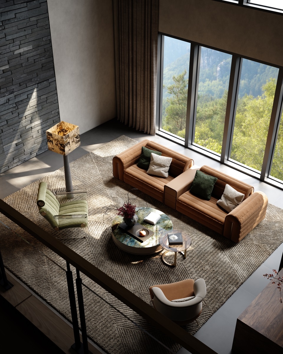 The shape of the sofa armrest resembles jade seal, and the natural and smooth bending process at both ends gives the work a subtle and noble beauty without being ostentatious.