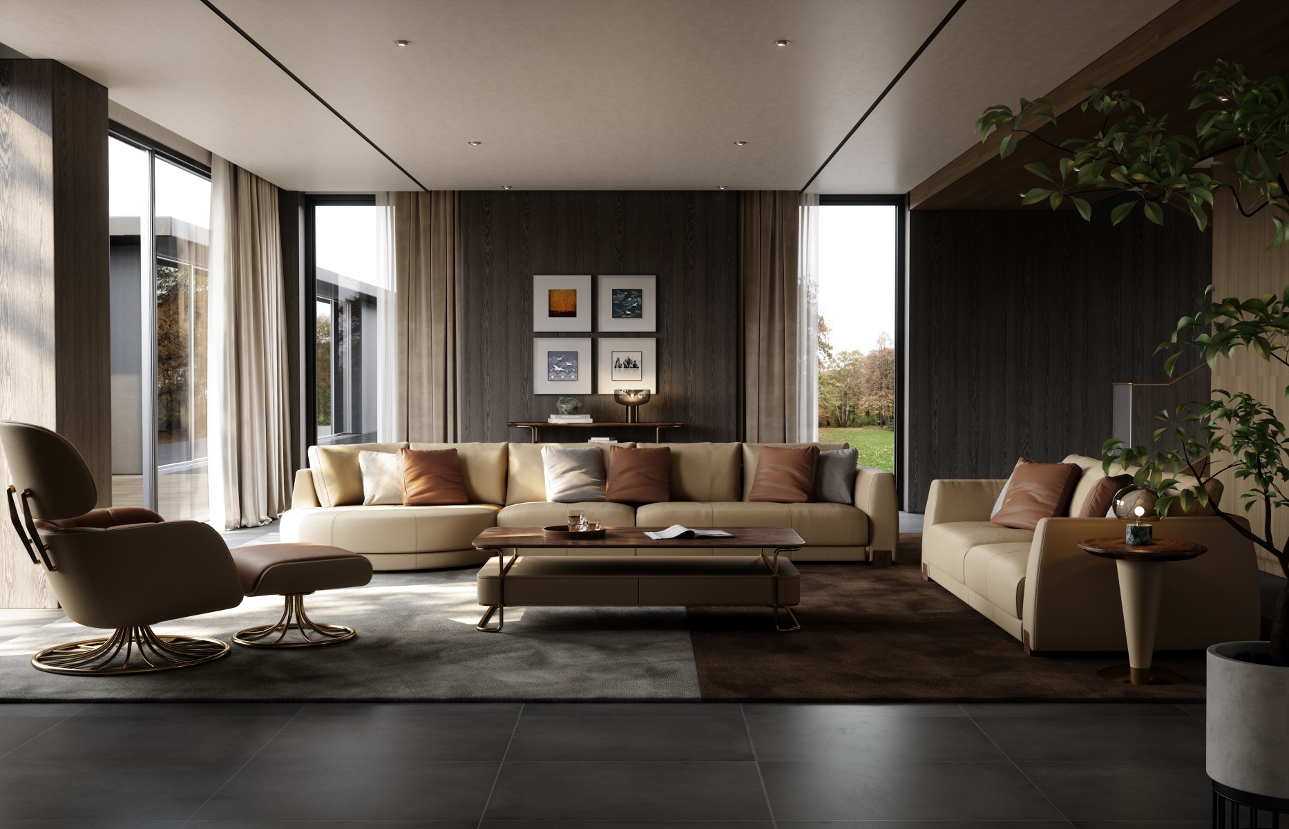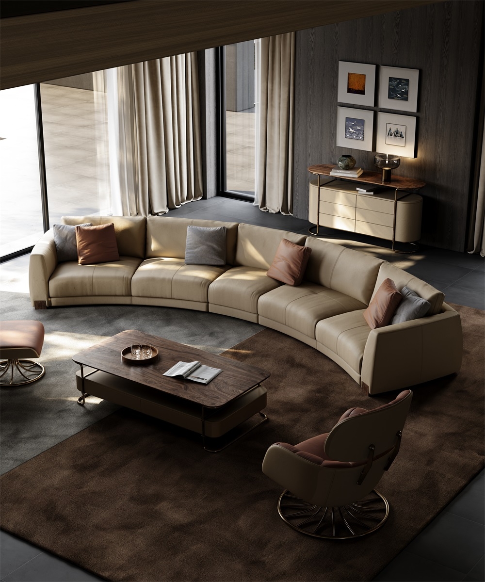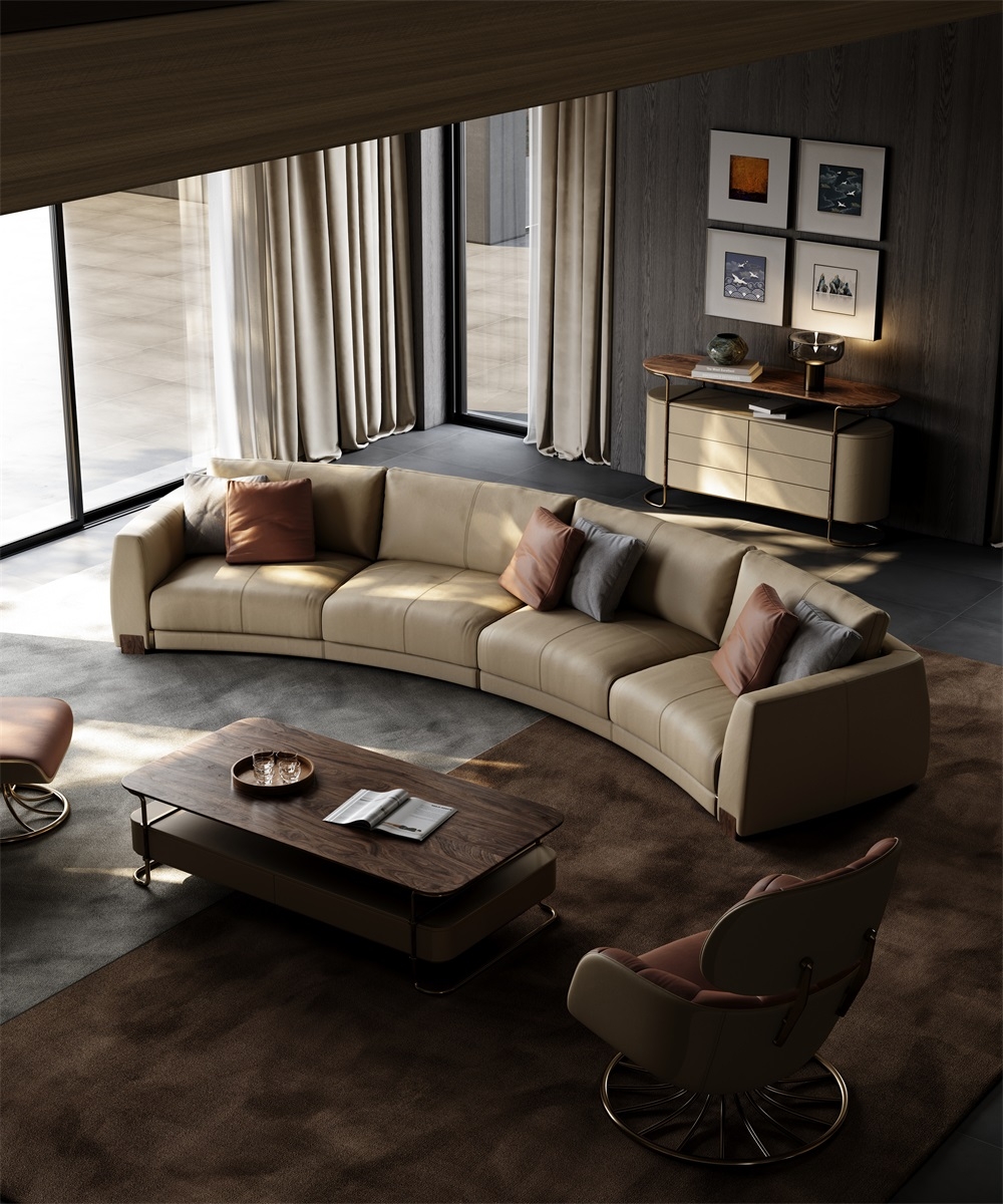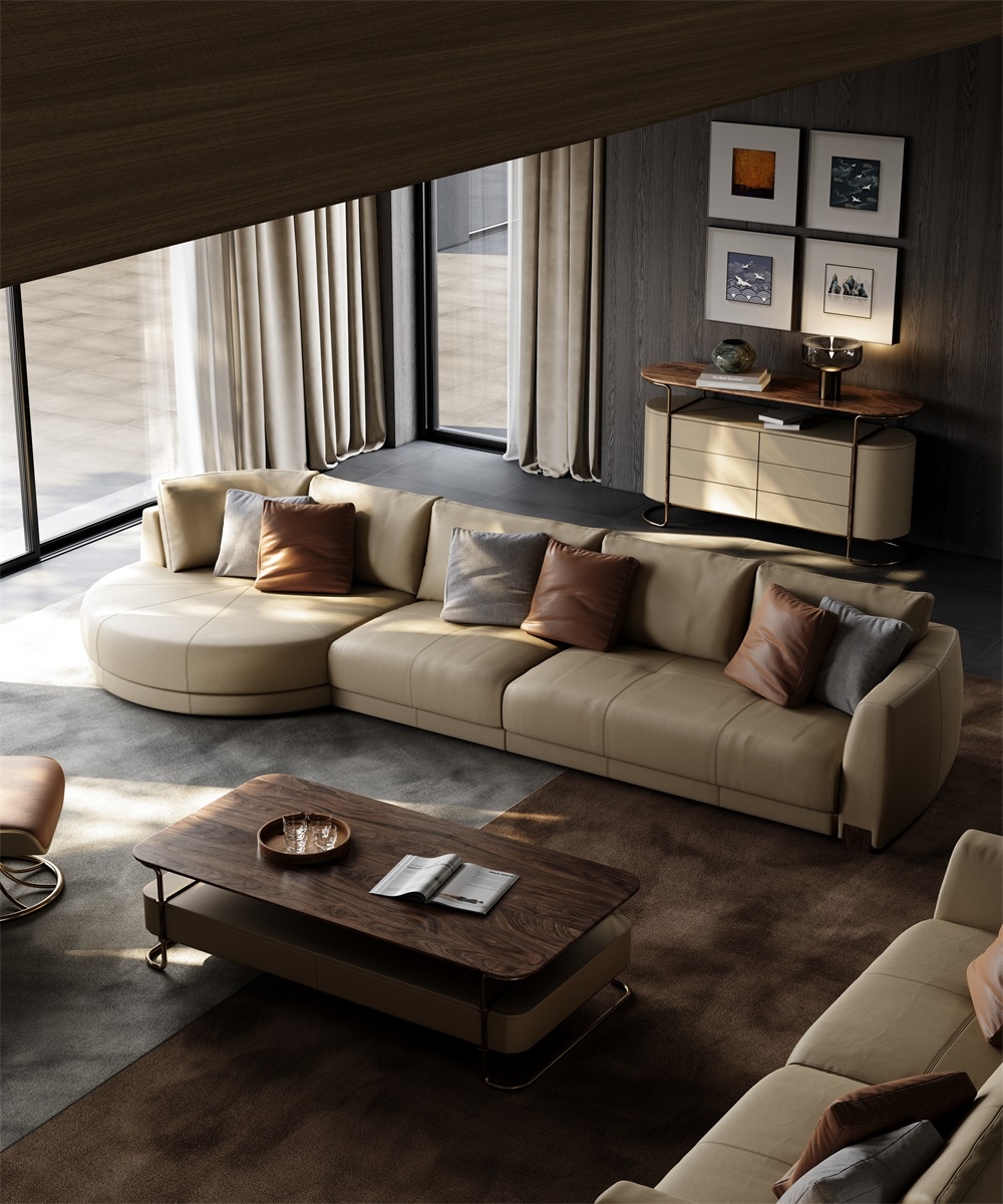 The sofa emphasizes a simple yet luxurious design style, presenting a full and unique visual experience with its high-quality craftsmanship, materials, and color matching.