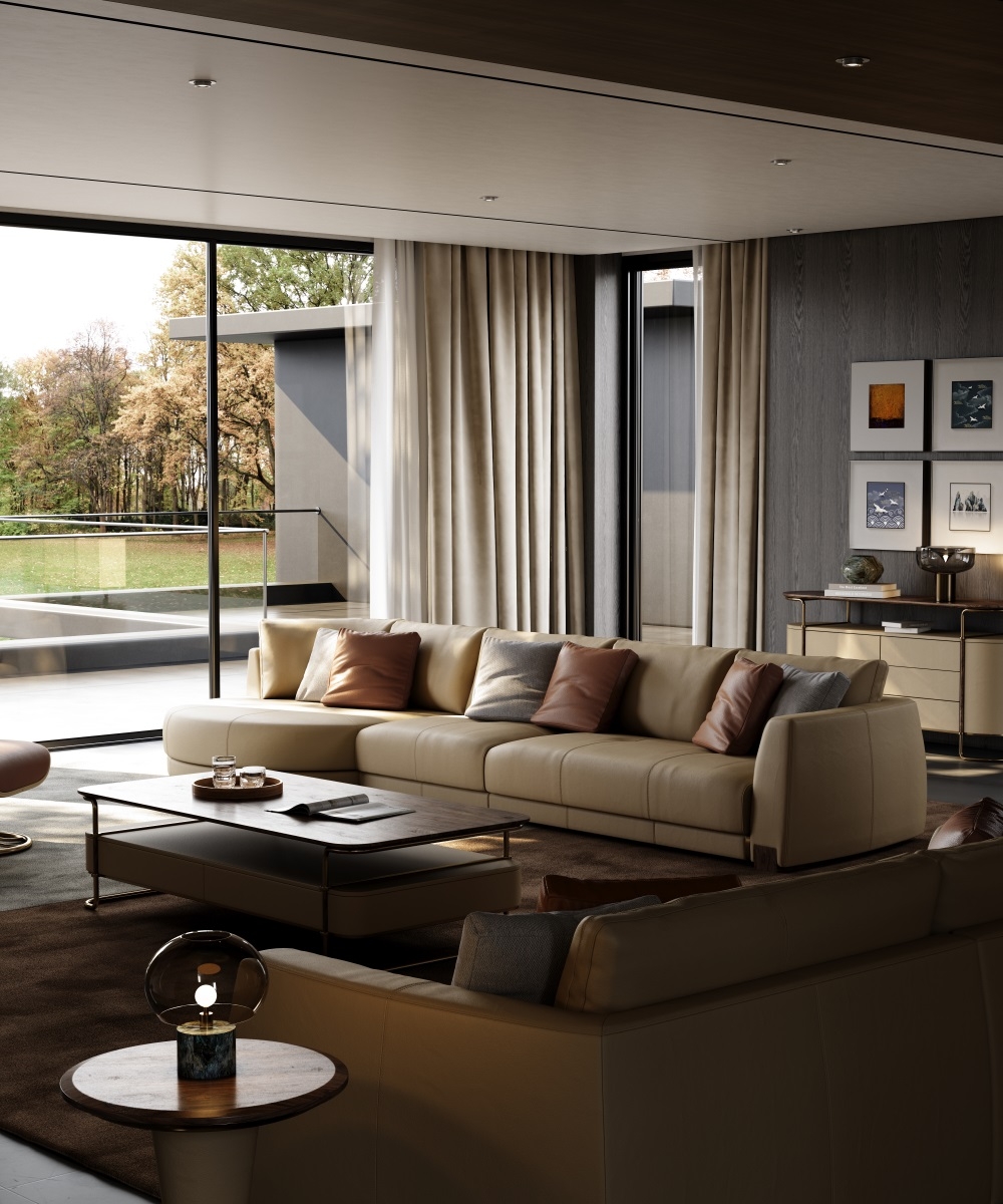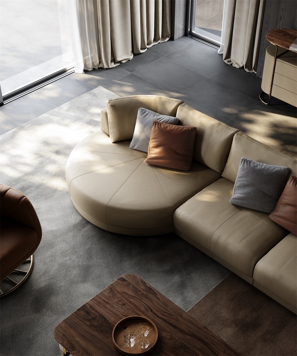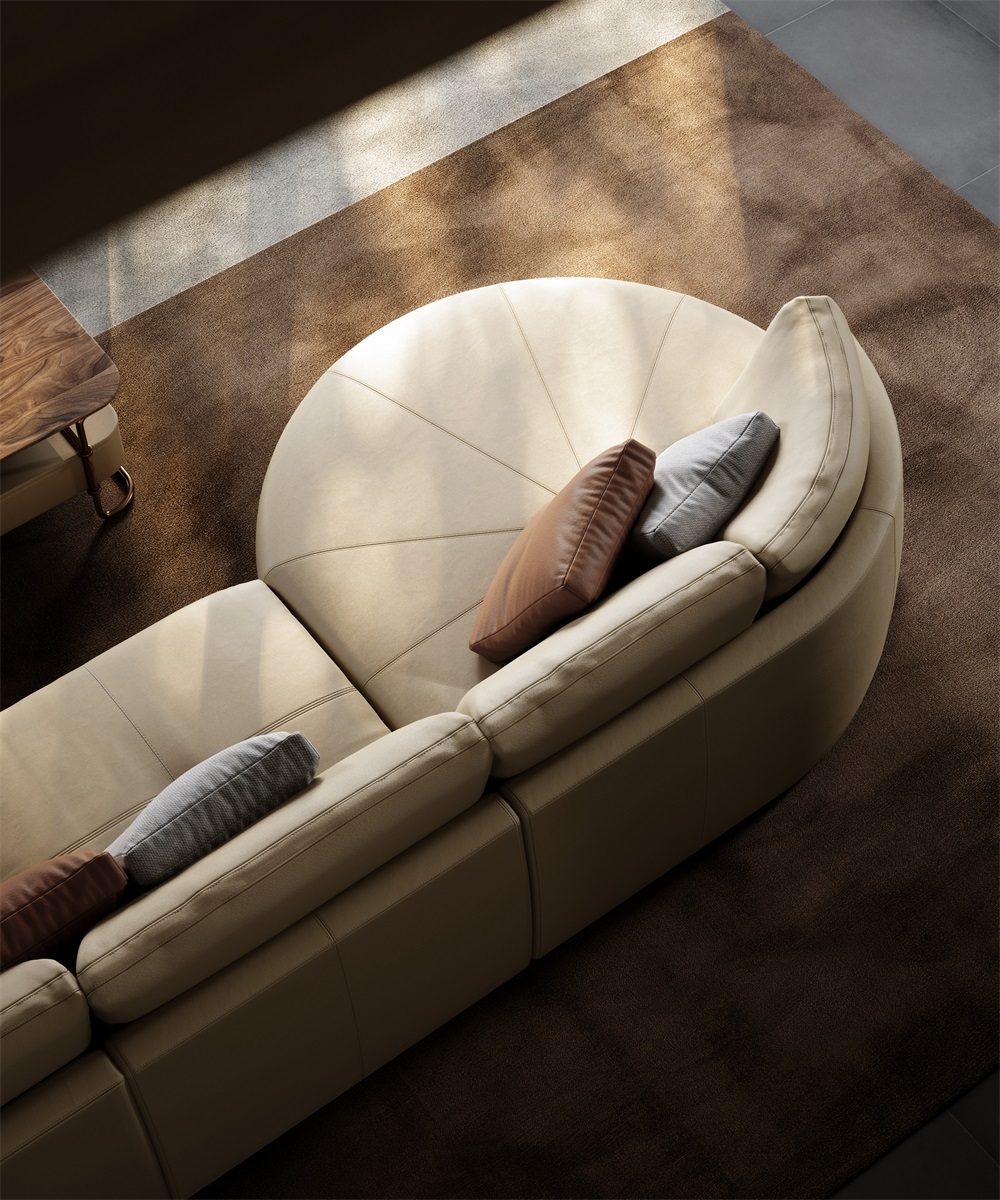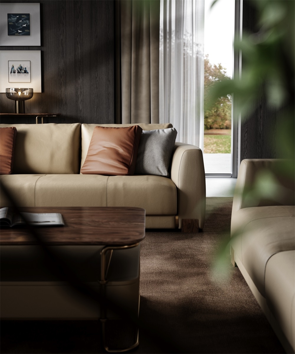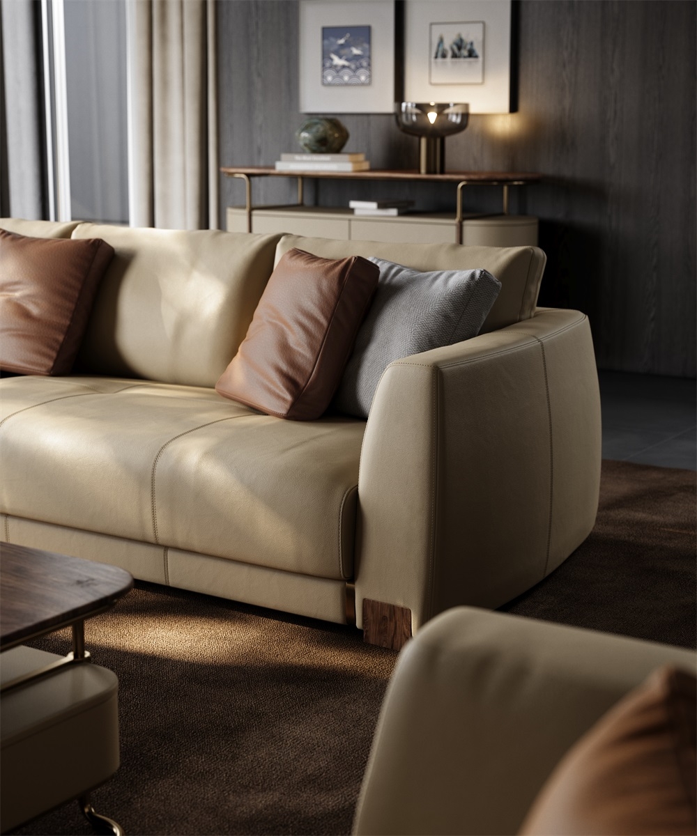 The main body of the sofa is made of top-grain calfskin imported from Italy. The leather is as fine as silk, with a smooth and warm touch. Every inch of the leather has natural pores and textures, exuding a rich and mellow leather aroma. After 28 complex tanning processes, the leather combines outstanding wear resistance and breathability. As time goes by, it forms a unique warm patina, further highlighting the luxurious texture accumulated over the years.
