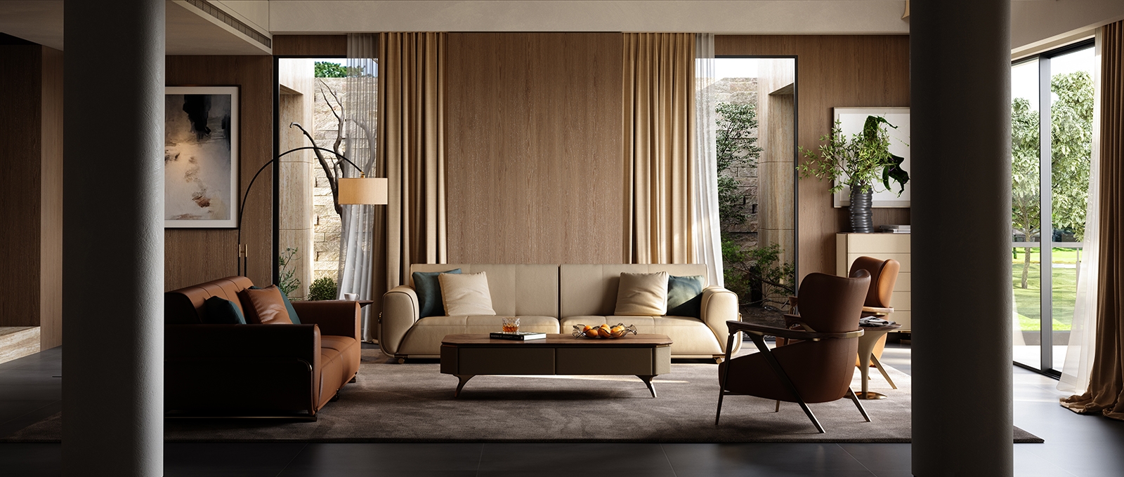 The use of a metal frame wraps around the entire sofa structure, making the sofa look more cohesive and aesthetically pleasing.