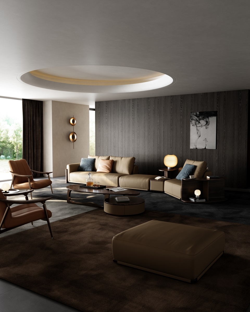 The ancient saying goes, 'If everything is in harmony, everything can be accomplished.' We should understand how to seize the opportunity and accept and follow the natural fortune; Consolidate the power of nature and merge with the world; The He series is also based on the consideration of Tianhe and human rationality, using symmetrical design techniques to achieve a perfect state. Durable, cozy beige leather offers a sumptuous touch and timeless appeal.