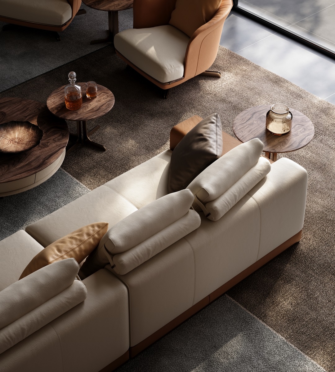 Each sofa set is hand-stitched by a senior craftsman with over 20 years of experience. The diamond-shaped quilting on the leather surface is precisely laid down to 0.1mm, with even and fine stitches. The arc treatment at the corners is smooth and round, and the details fully demonstrate the craftsmanship. The golden thread nanmu frame is joined with traditional mortise and tenon joints, without a single nail or glue, yet it can withstand a thousand pounds of pressure and remain as stable as ever after a hundred years. The welding points of the metal parts are finely ground to be smooth and traceless, and then covered with multiple layers of anti-oxidation coatings to ensure that they do not fade or rust over long-term use and always shine as new.