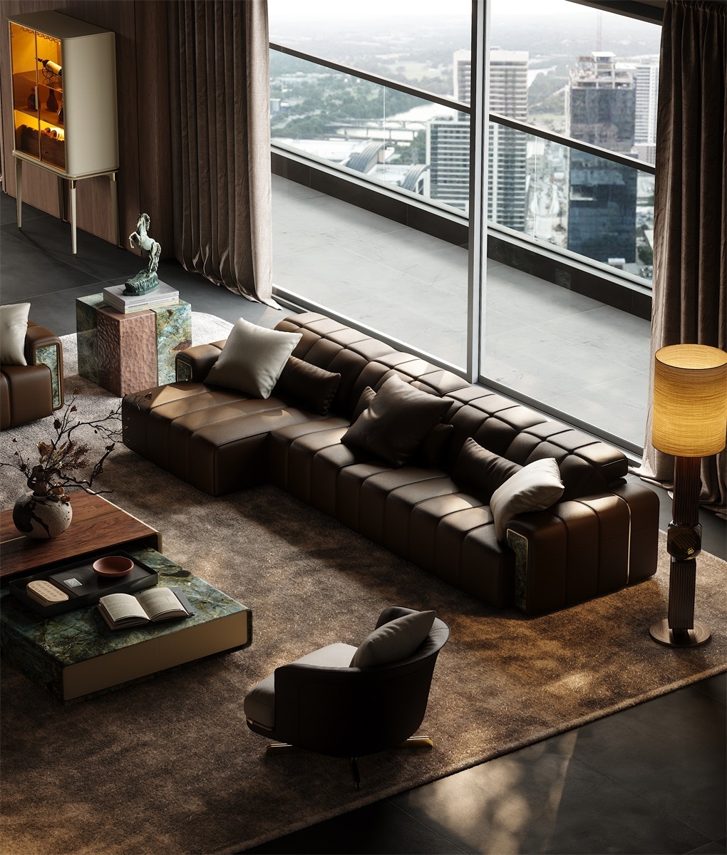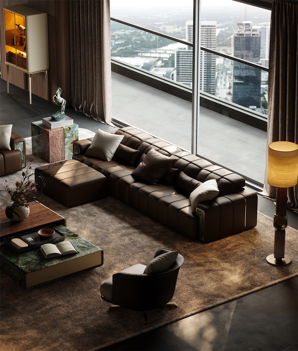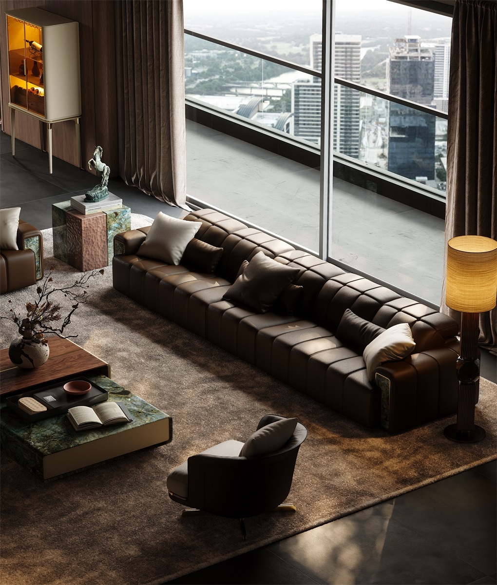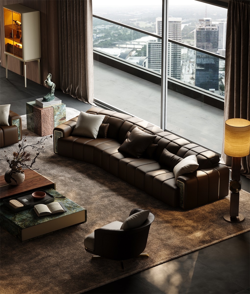 Shaped like piano keys, the sofa brings a unique visual rhythm to the space through its dynamic design. Each module is like an independent note, and through clever arrangement, all the modules combine to form a beautiful musical picture—a perfect fusion of modular freedom and artistic expression.