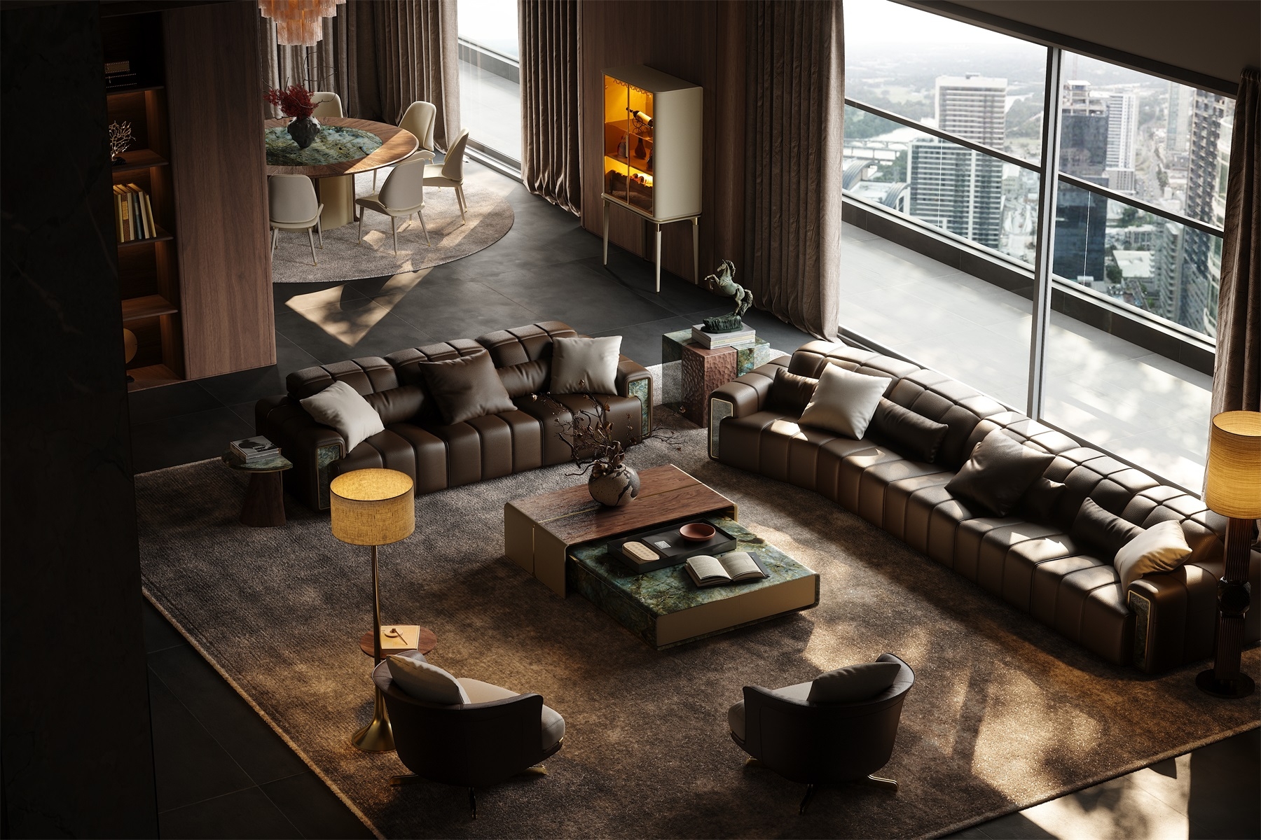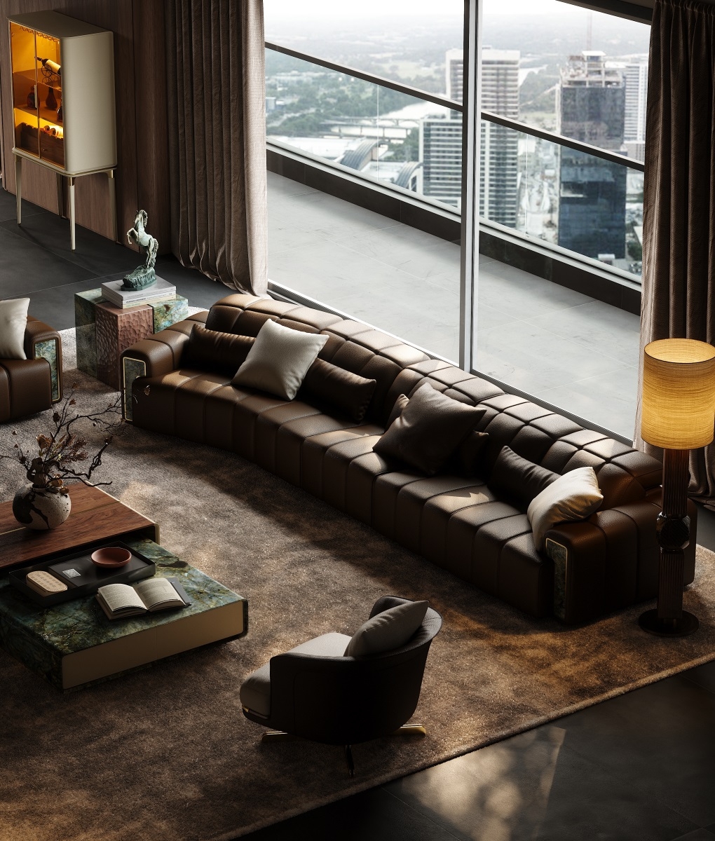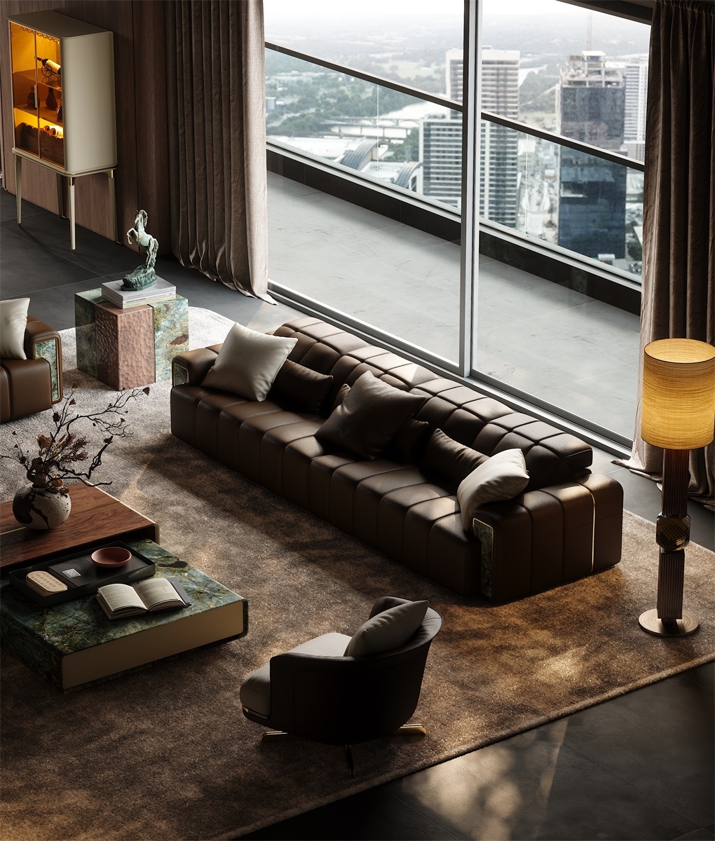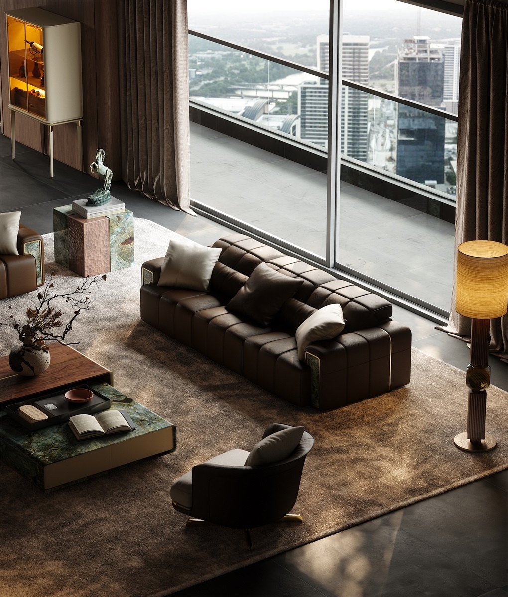 Shaped like piano keys, the sofa brings a unique visual rhythm to the space through its dynamic design. Each module is like an independent note, and through clever arrangement, all the modules combine to form a beautiful musical picture—a perfect fusion of modular freedom and artistic expression.