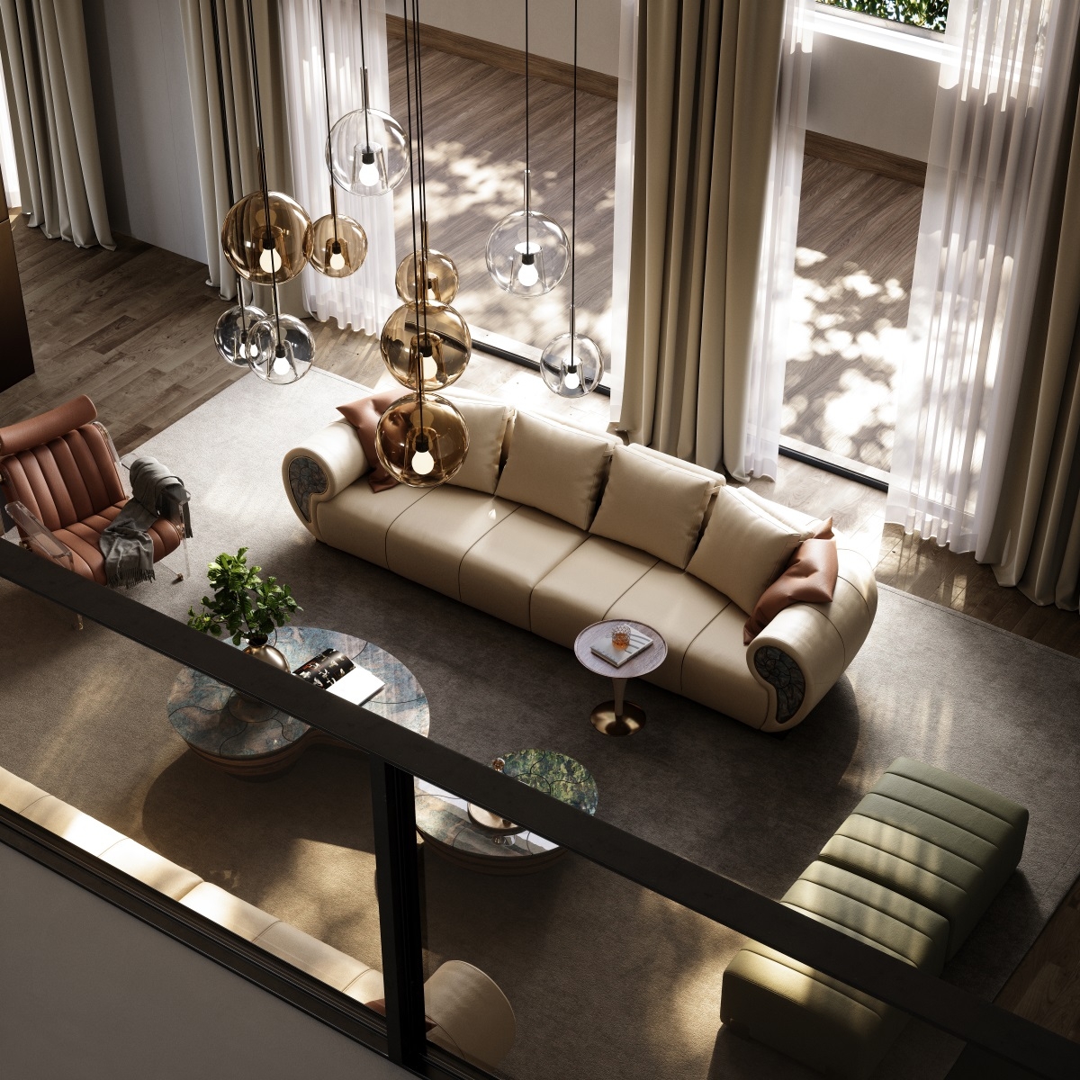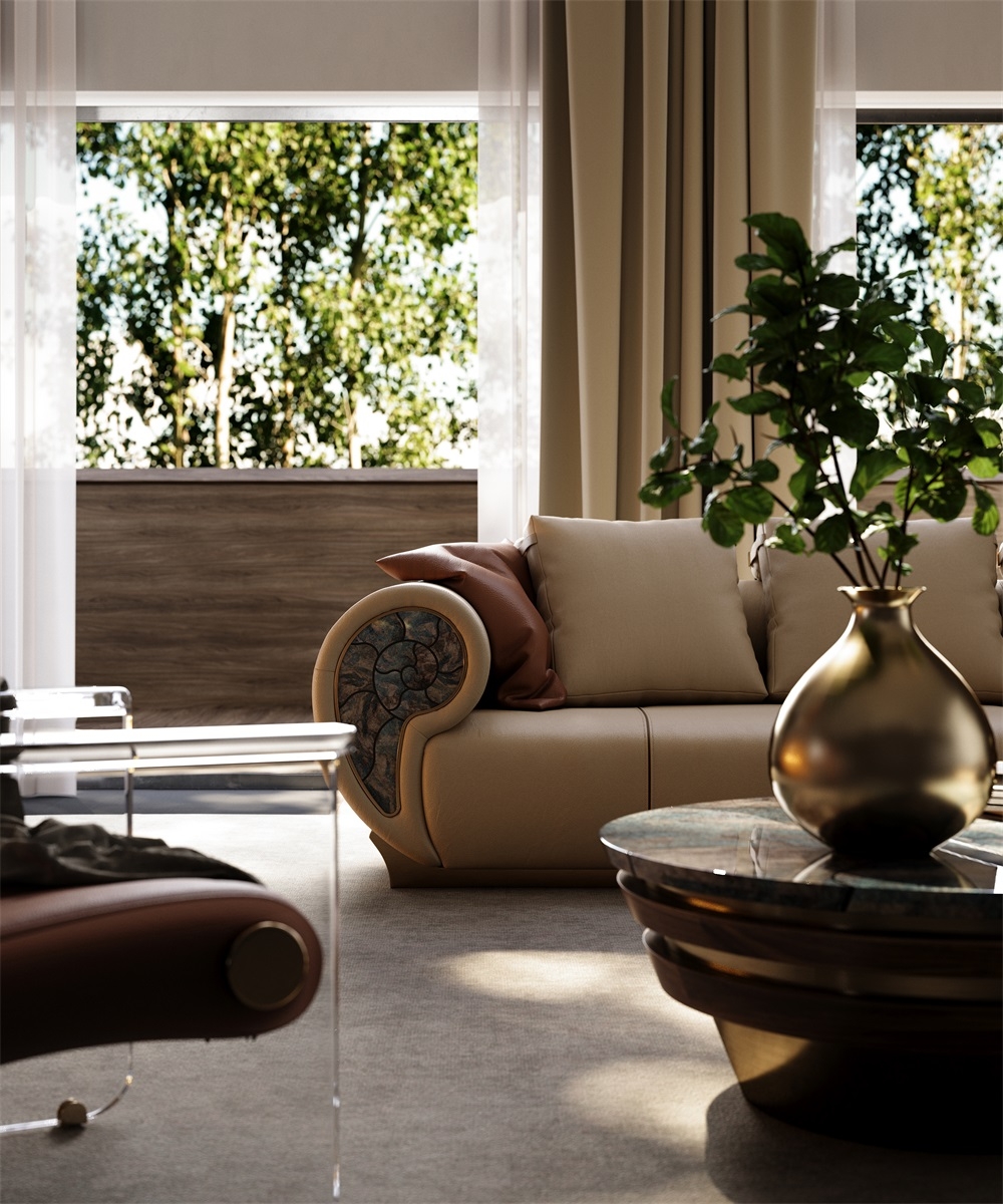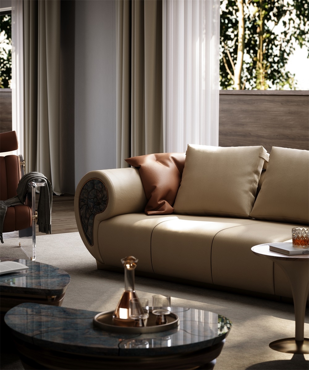 The armrest is bionic in shape of a conch, the spiral line design is beautiful, the ratio of the luxury stone to the luxury stone is exquisite, and the excellent craftsmanship presents the natural beauty of the conch gorgeously.