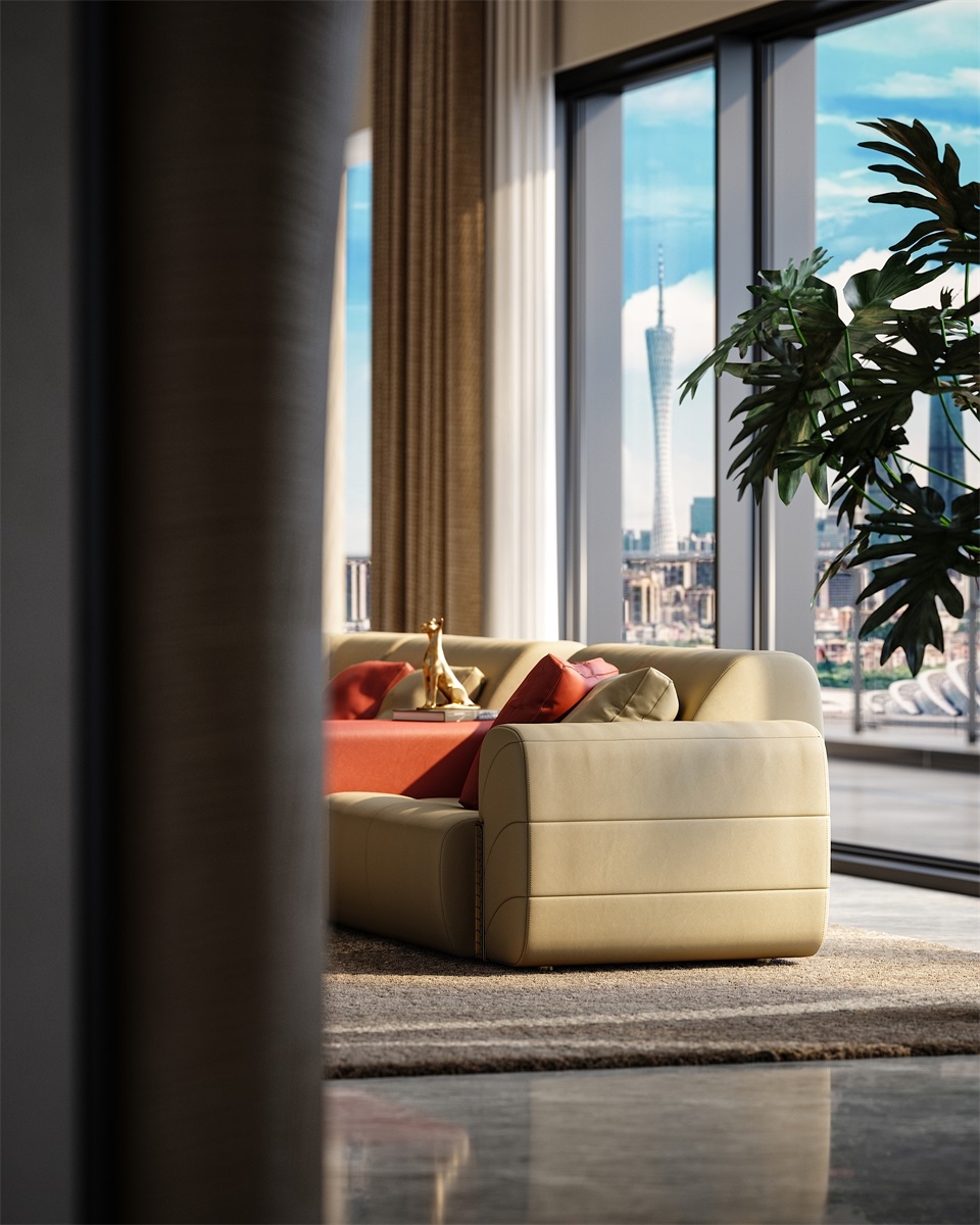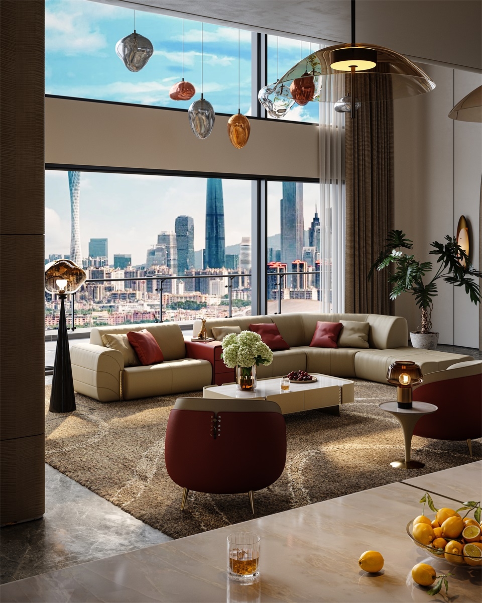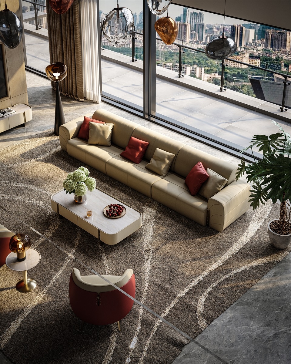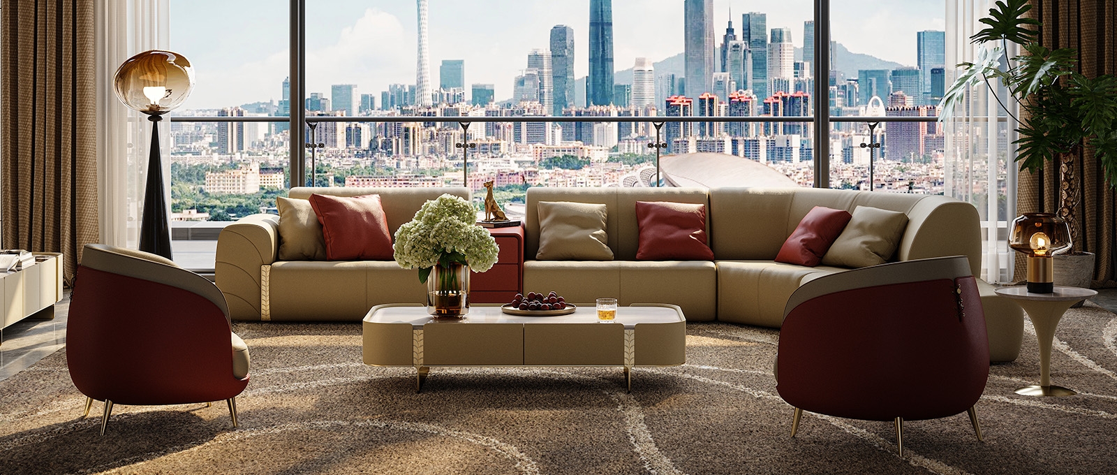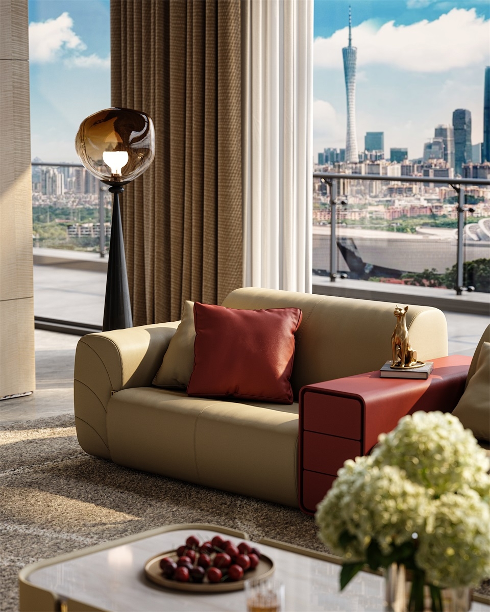 Modern minimalist genuine leather sofa with distinct layers of dark and light contrasting colors. It balances appearance and comfort with plump filling and smooth lines. The modular design is flexible and versatile. The texture of natural genuine leather fully demonstrates low-key luxury and a quality life.