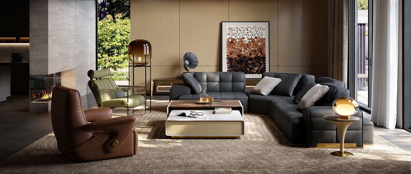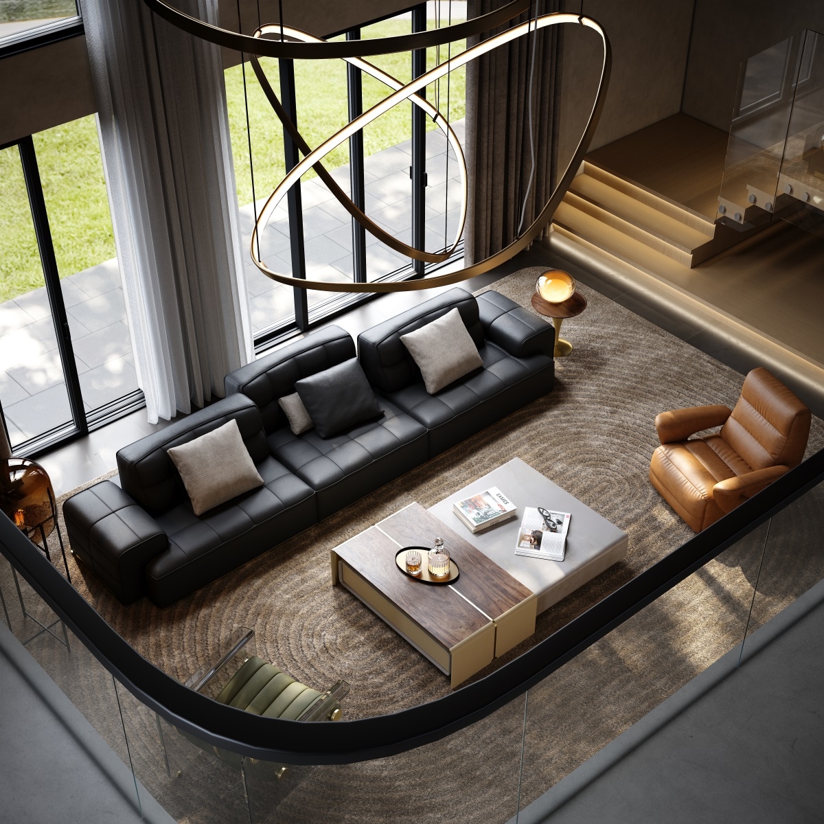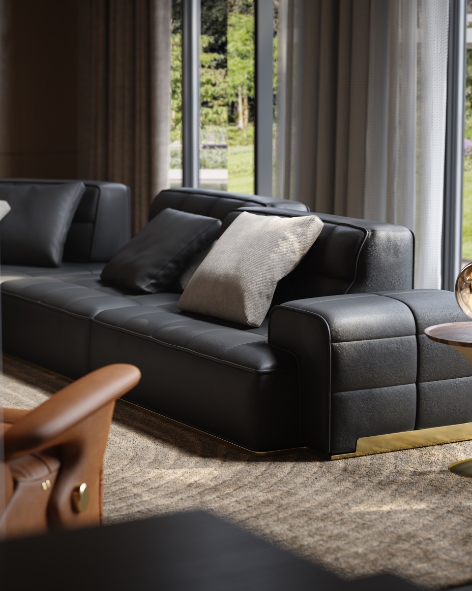 Leather: Thickness 1.4-1.6mm V-grade top layer cowhide Classic Leather Sofa