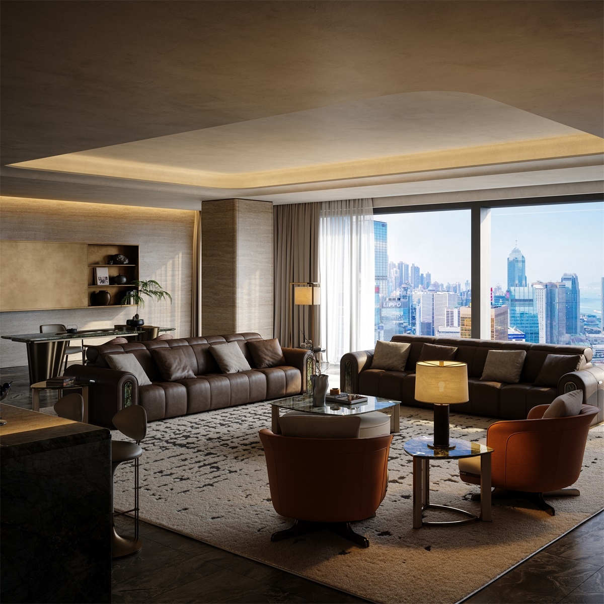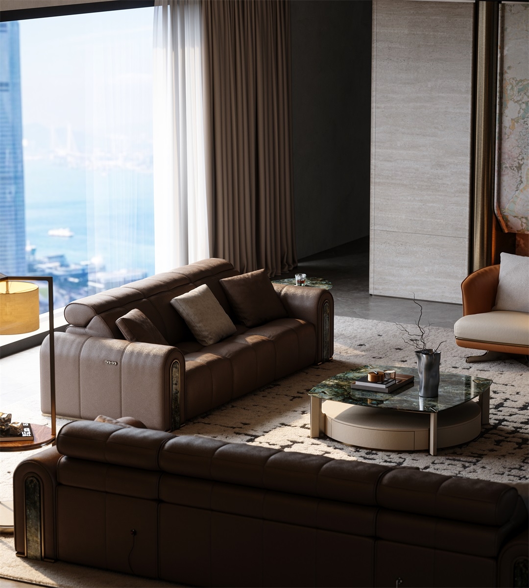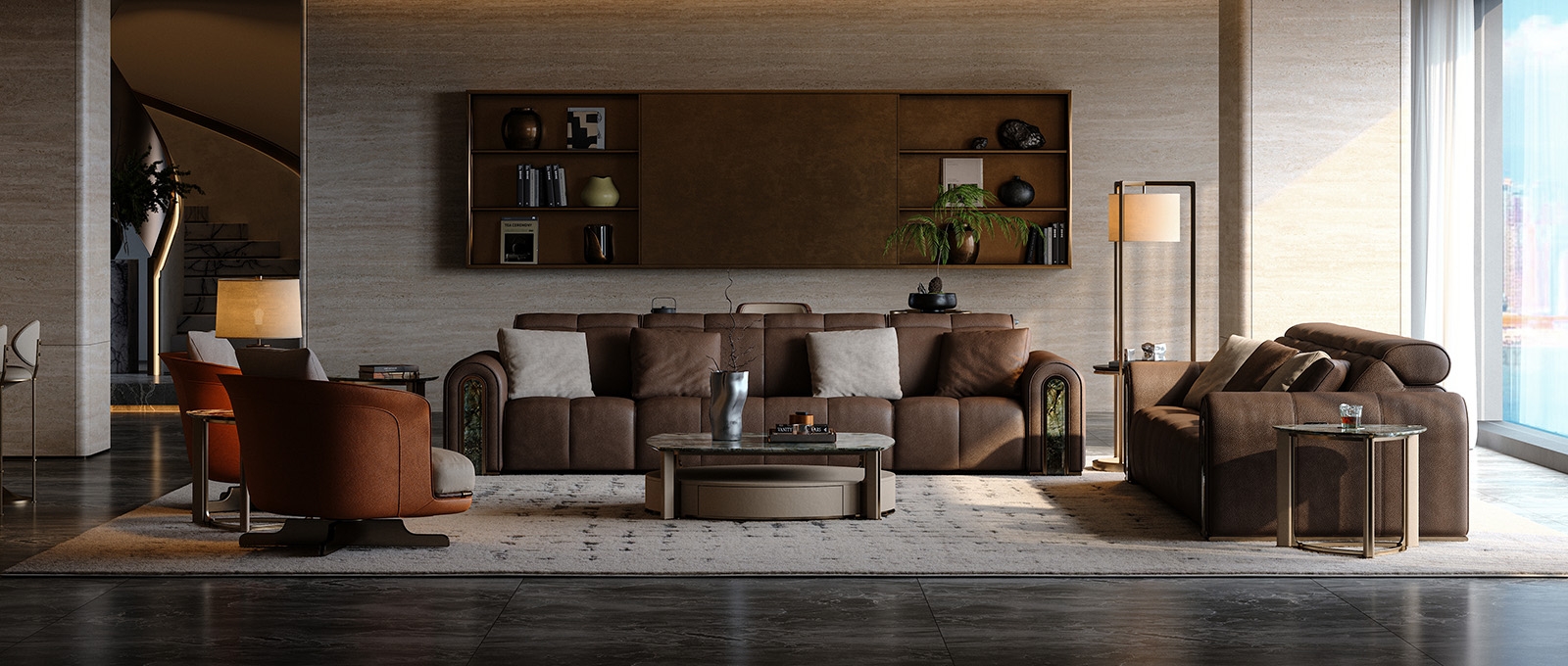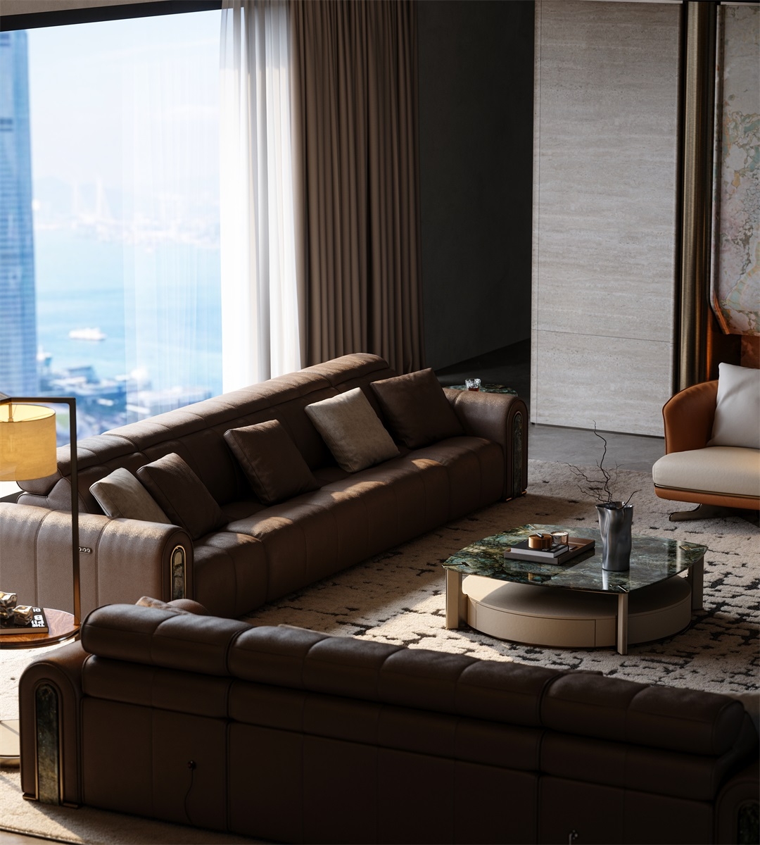 Through the interplay of diverse materials, it merges composure and capability with modern,