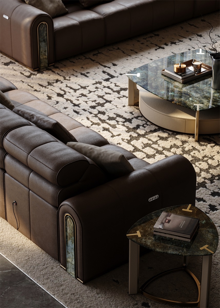 Drawing inspiration from the Arc de Triomphe, the design translates the archway elements and their symbolic meaning of victory into the lines and connotations of the sofa.