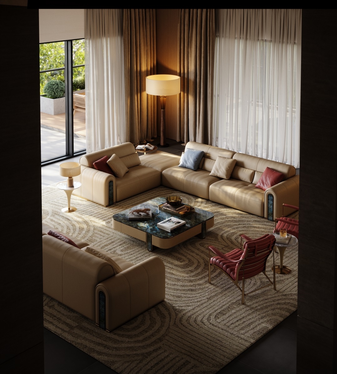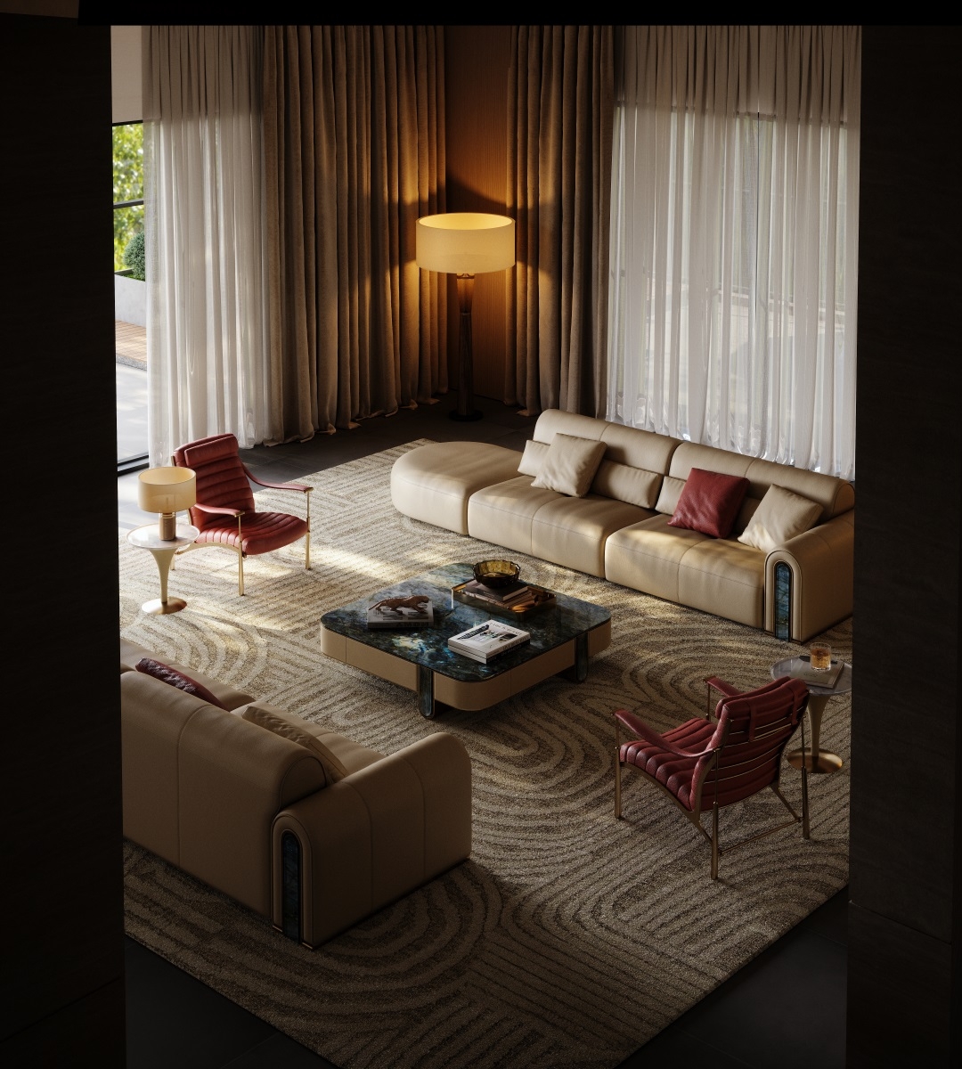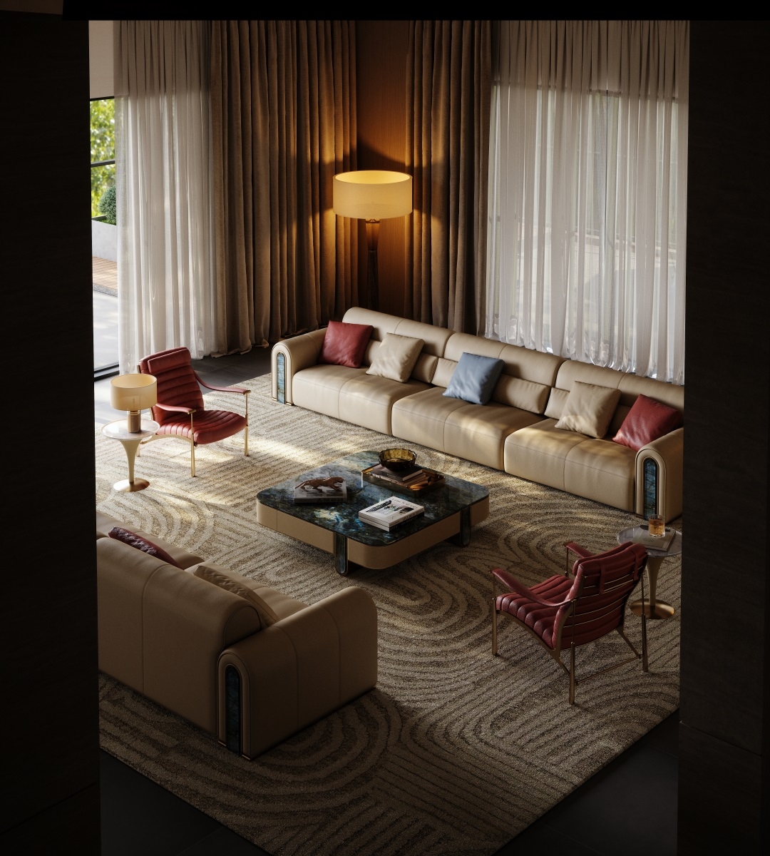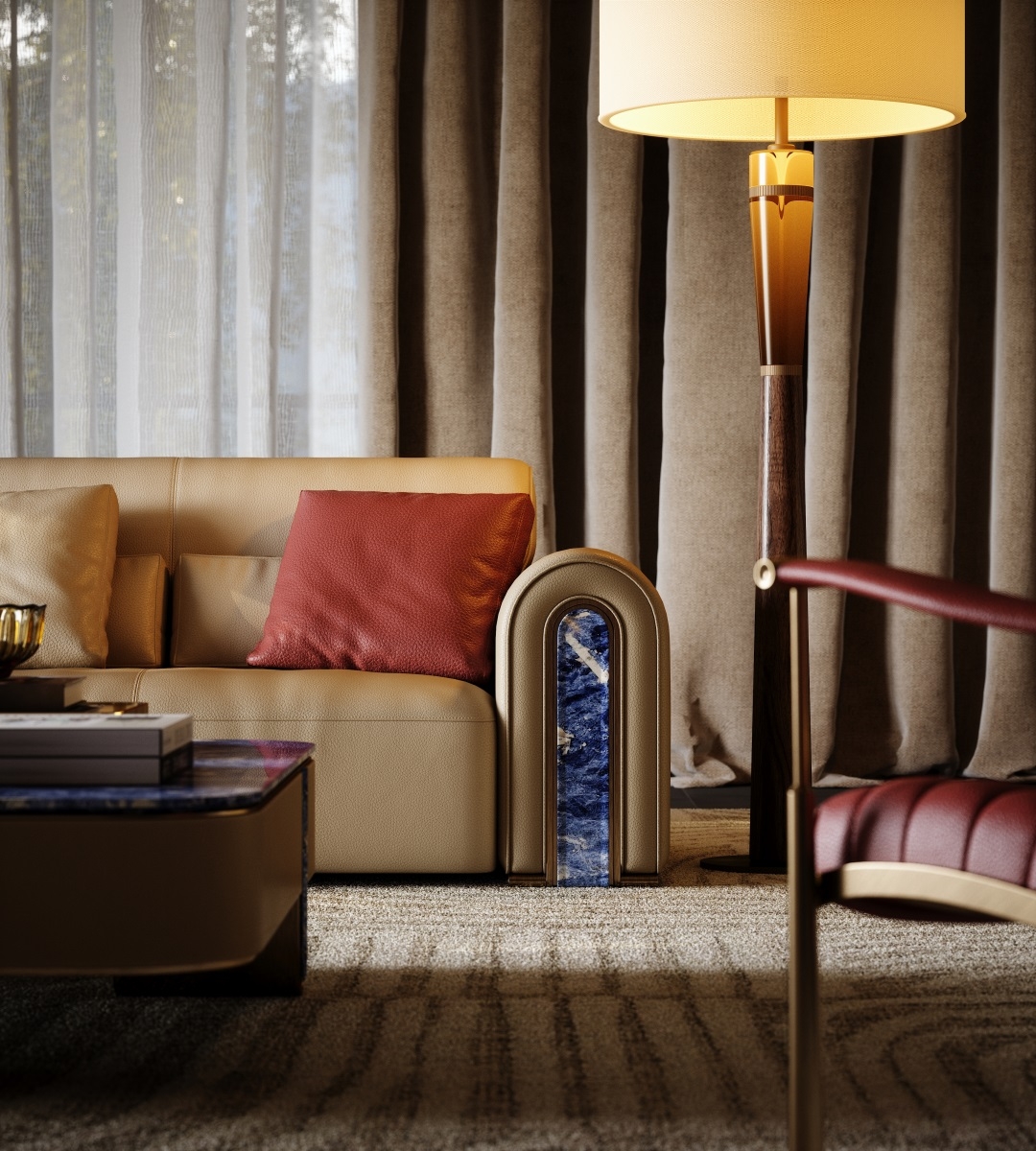 Drawing inspiration from the Arc de Triomphe, the design translates the archway elements and their symbolic meaning of victory into the lines and connotations of the sofa.