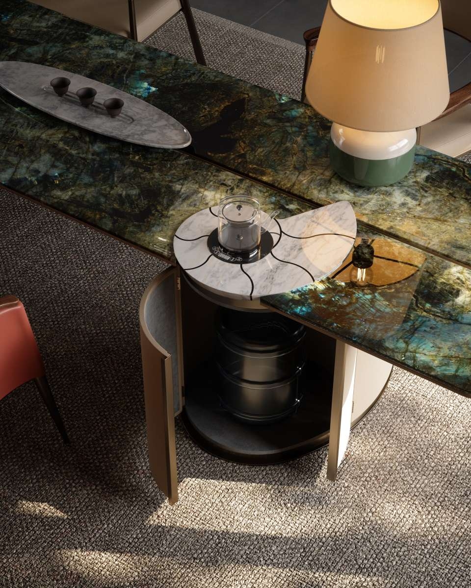 The beauty of storing worldly things in it, with its auspicious and beautiful symbols endowed with rich cultural connotations by people, should be like a conch, with a heart like the sea, able to accommodate all things in the world and be invincible.Combines natural marble’s unique veining with sleek metallic legs. The contrasting textures (smooth stone + polished metal) create an art - piece - like look, instantly elevating any space’s luxury quotient.