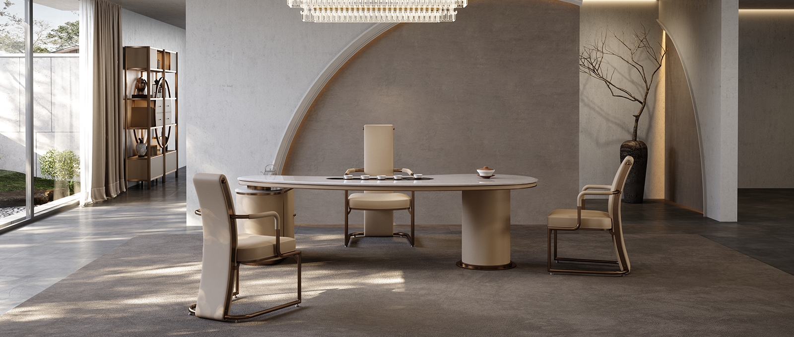 Contemporary sintered stone tea table