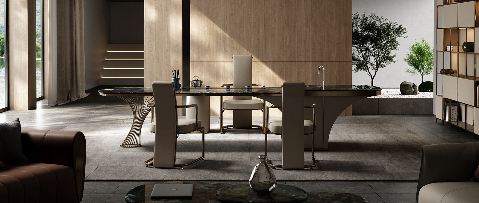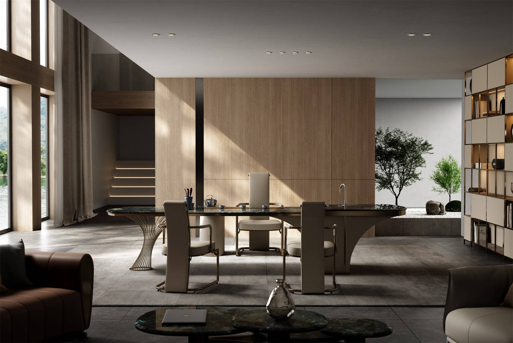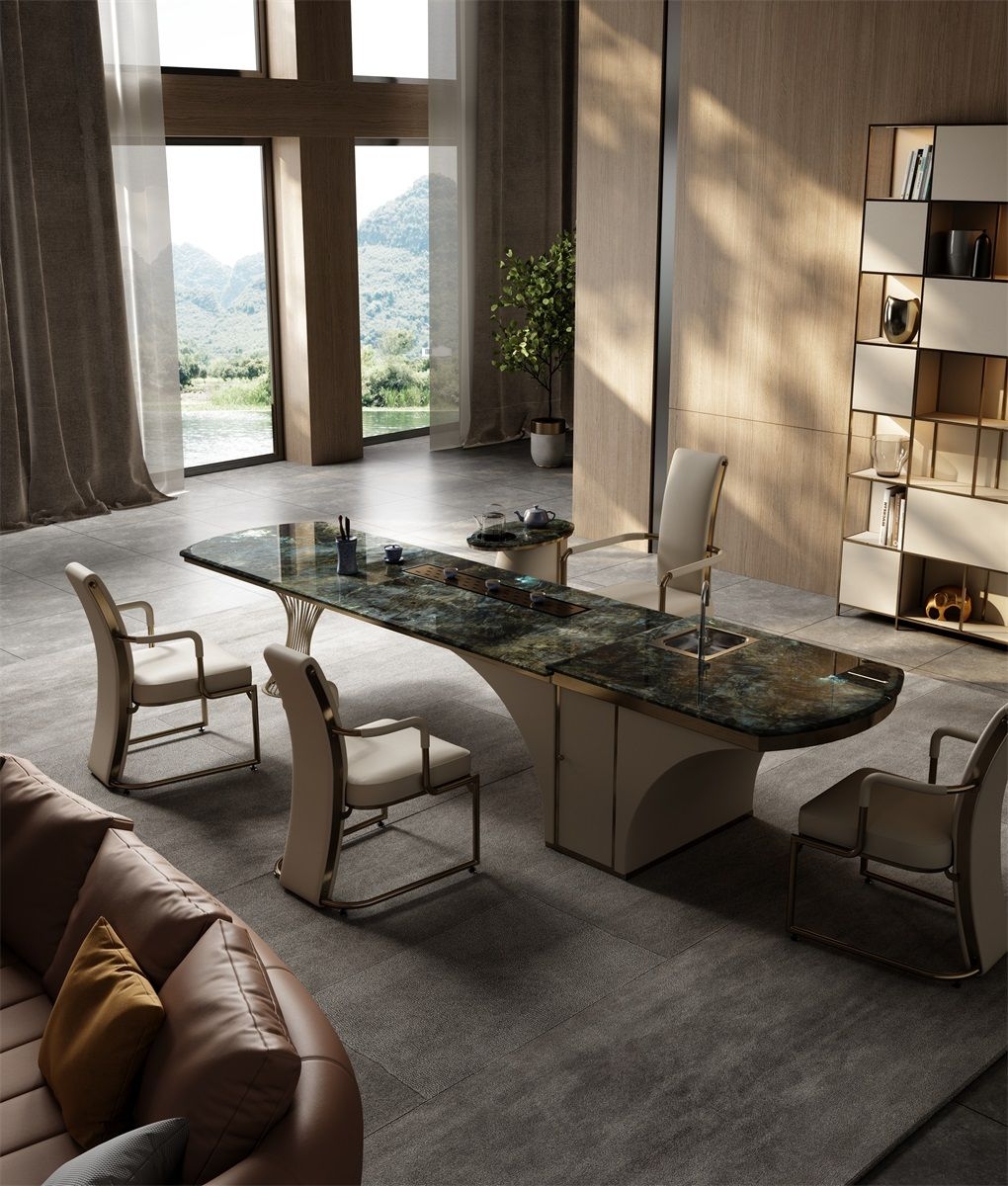 It integrates storage functions with the side cabinet, providing convenient space for storing tea sets, tea leaves, and other items. The open - ended leg design not only ensures structural stability but also gives a sense of lightness, making the space feel less cramped.