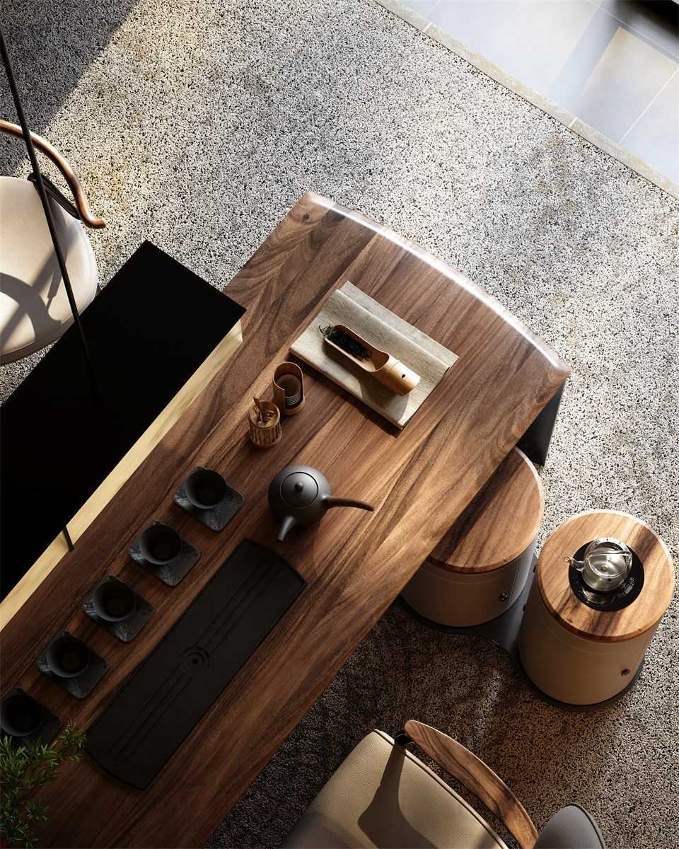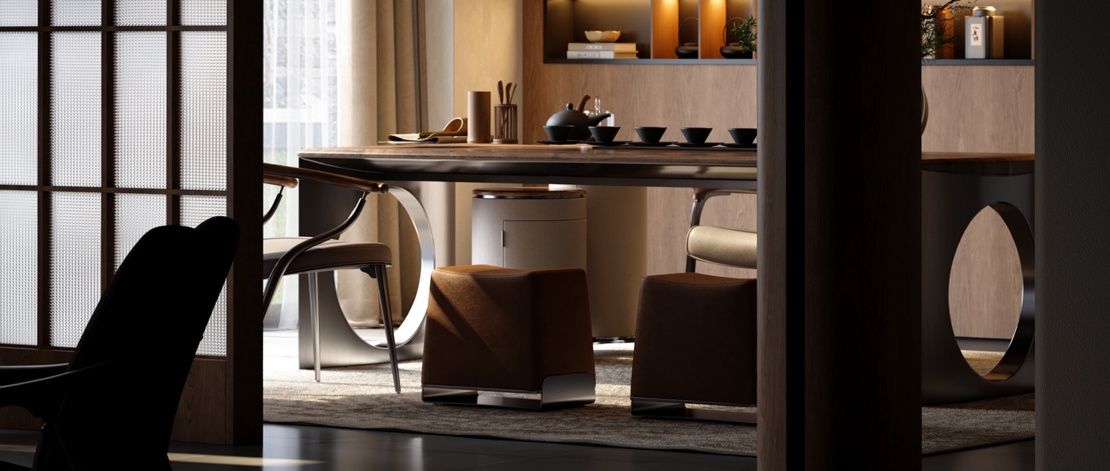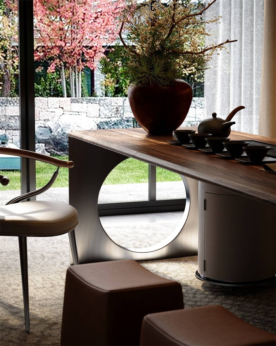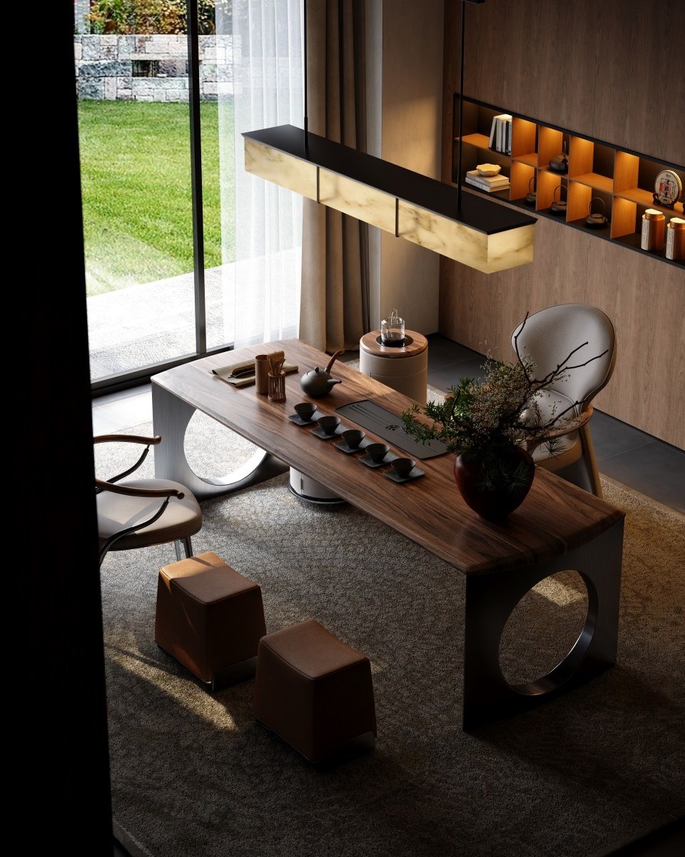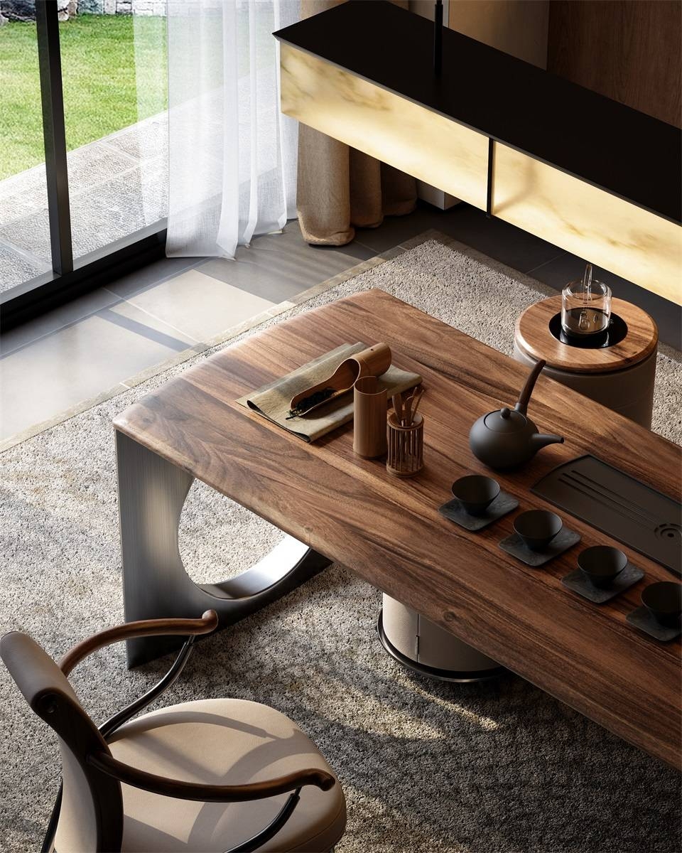 Indulge in timeless elegance with our luxury teatable . Crafted from premium solid wood and sleek metal frame , its minimalist modern design merges contemporary flair with traditional Asian charm .