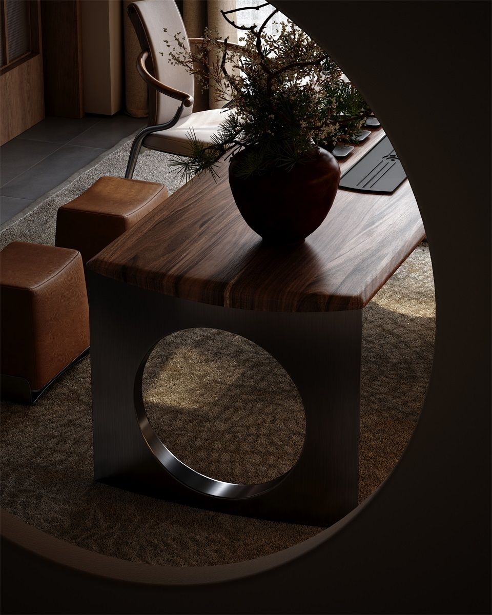 The metal embellishment support base, the atmospheric design brings the light outside the window into the room, combining beauty and stability, showing elegant line art.