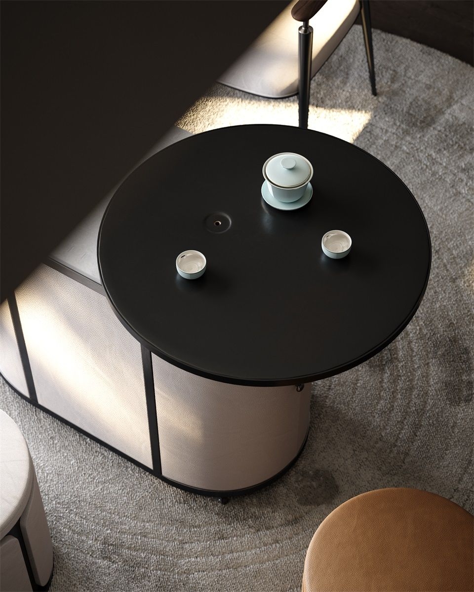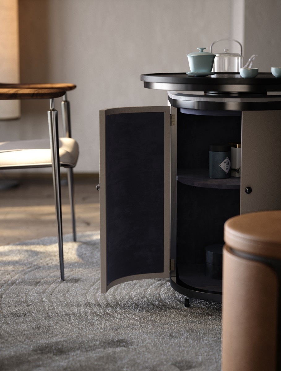 Built - in Storage & Wheels: Concealed cabinets store tea supplies (leaves, tools), while 360° - rolling wheels let you move the cabinet effortlessly—great for adapting to different living/entertaining needs.