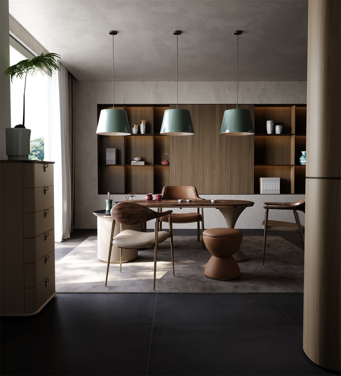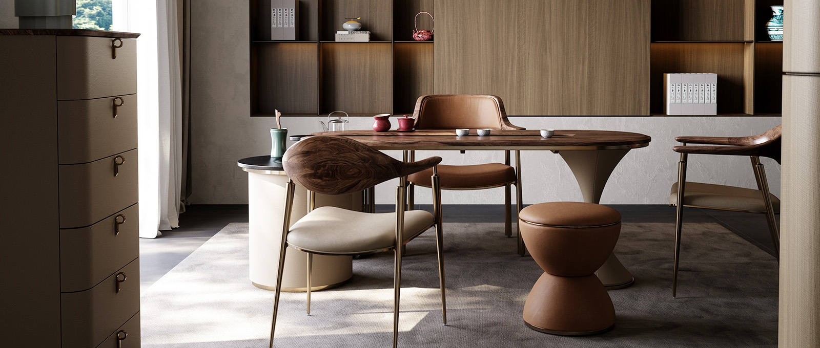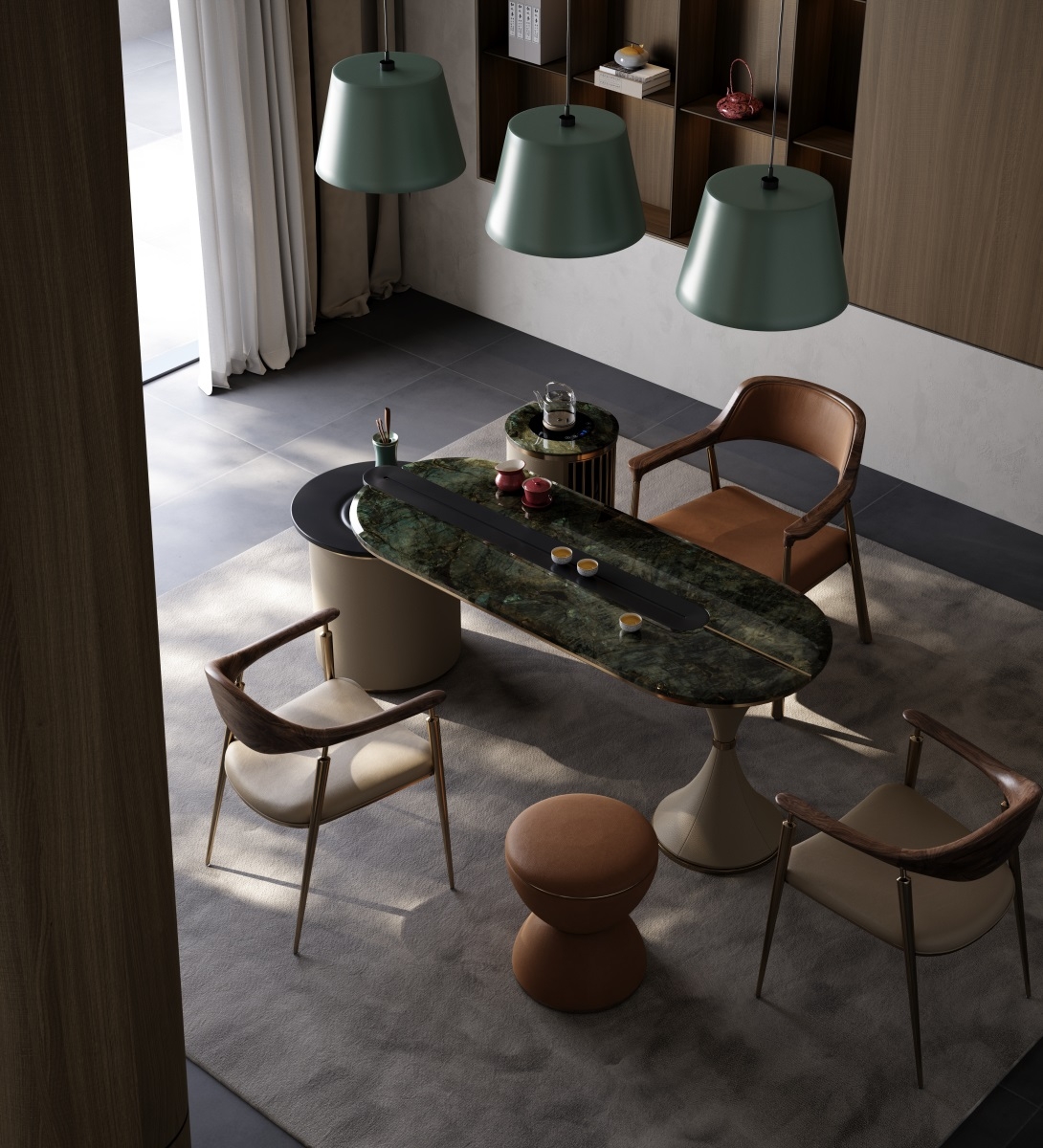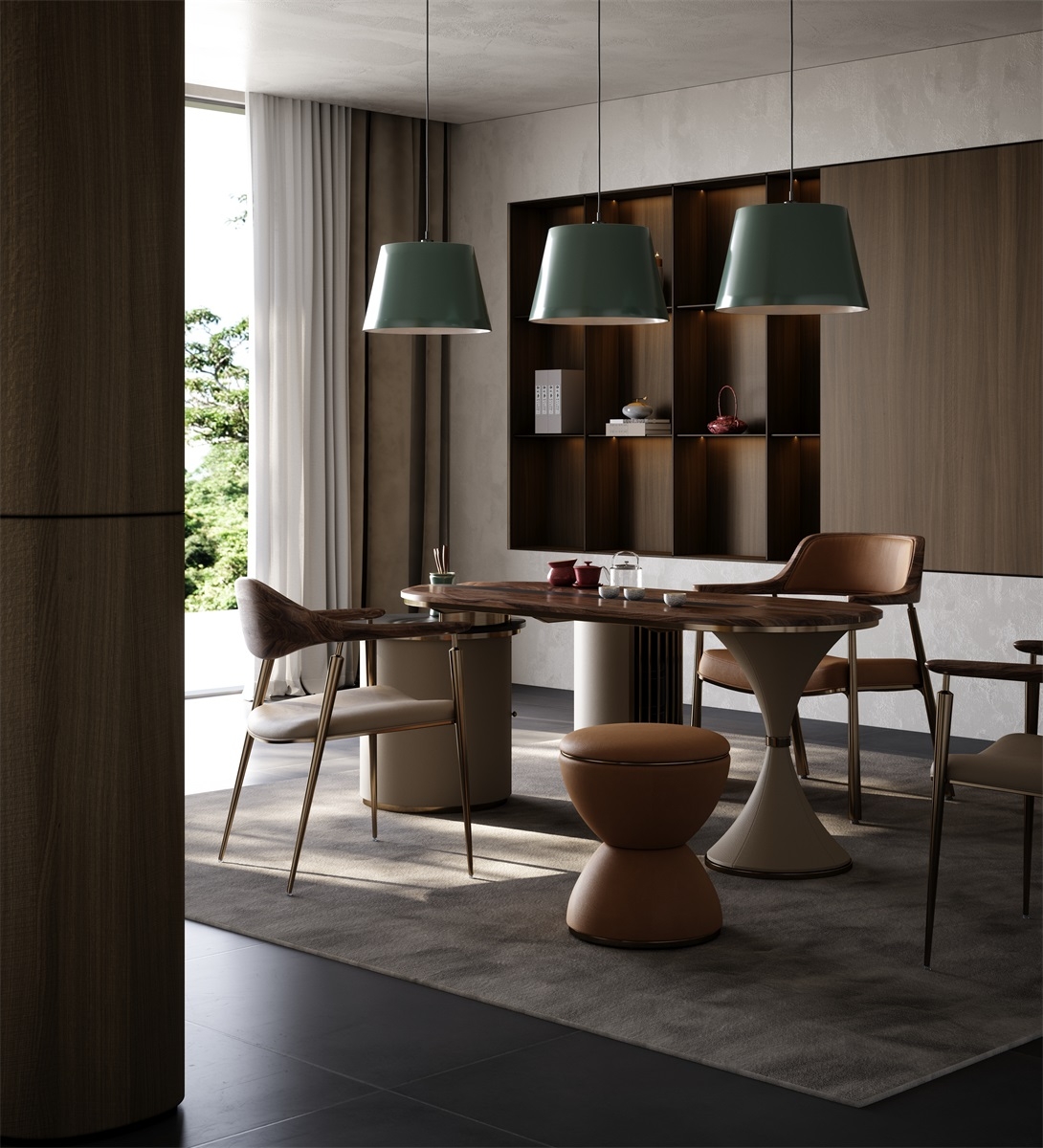 The money tree plant features an umbrella-shaped form, possessing a unique kind of beauty. Its owner is believed to receive boundless good fortune and wealth. The designer has introduced this auspicious symbolism into the furniture, showcasing extraordinary characteristics.