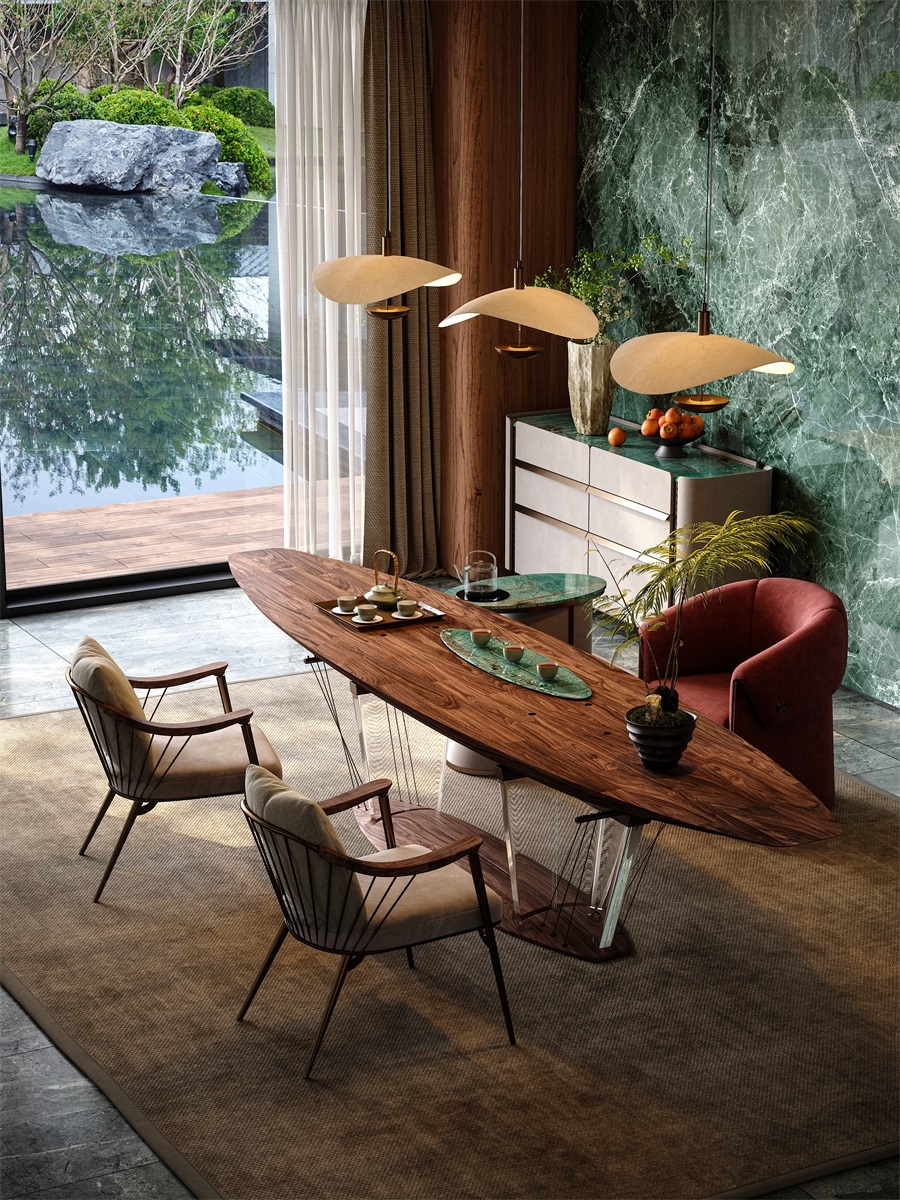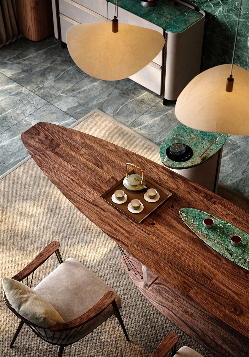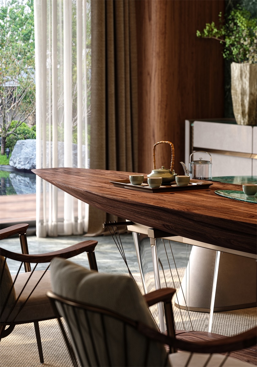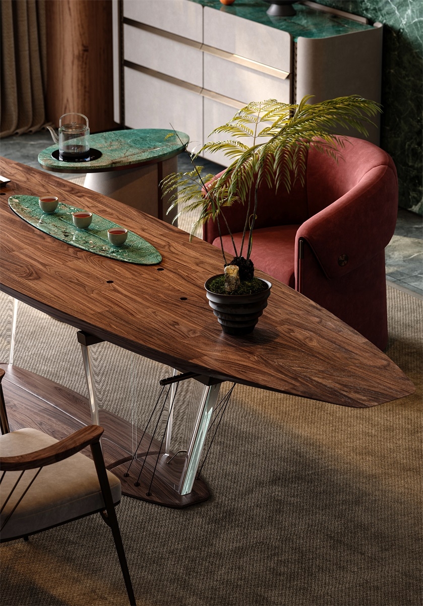 The money tree plant features an umbrella-shaped form, possessing a unique kind of beauty. Its owner is believed to receive boundless good fortune and wealth. The designer has introduced this auspicious symbolism into the furniture, showcasing extraordinary characteristics.