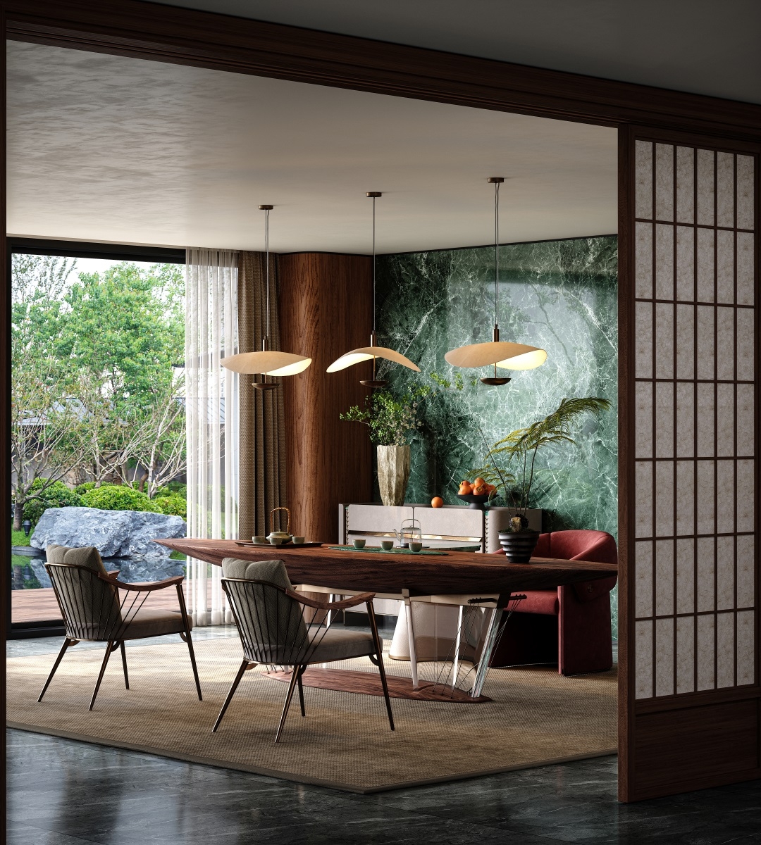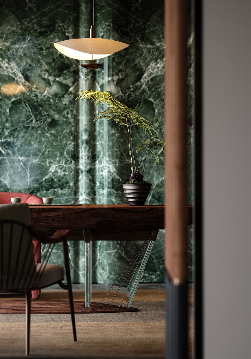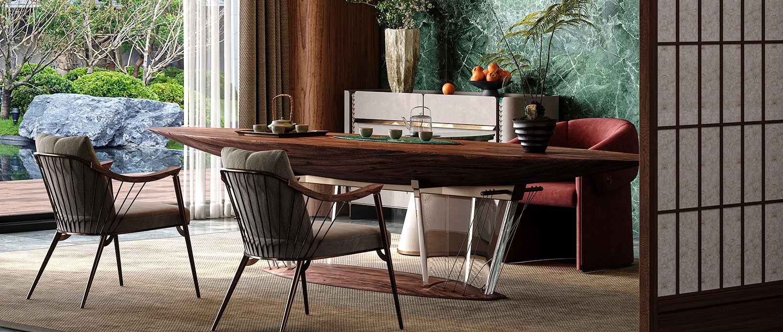 The money tree plant features an umbrella-shaped form, possessing a unique kind of beauty. Its owner is believed to receive boundless good fortune and wealth. The designer has introduced this auspicious symbolism into the furniture, showcasing extraordinary characteristics.