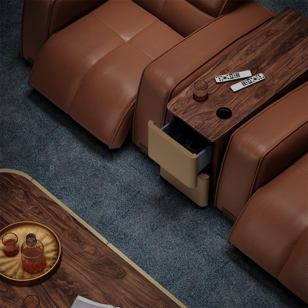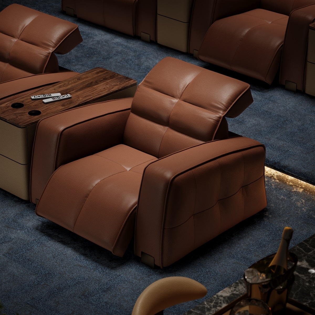 The electric function position with infinite adjustment, the backrest and footrest can be adjusted separately, sitting and lying freely, can provide the best viewing angle. The leather-wrapped shape is luxurious and stylish, adding a touch of art to the home while watching movies.