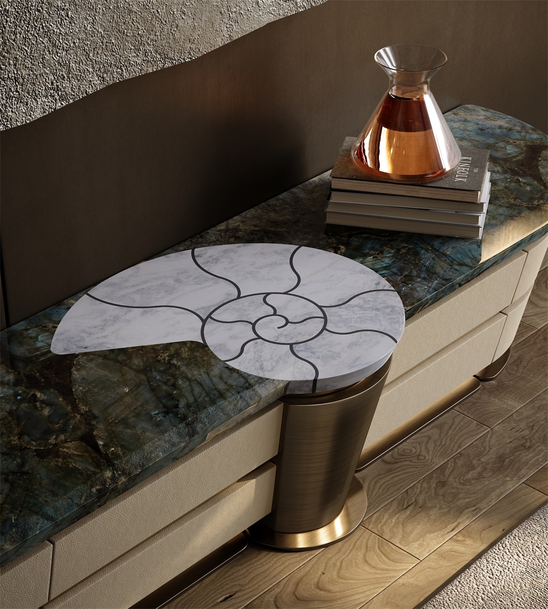 Handrail bionic conch shape, spiral line design is full of beauty, luxury stone and luxury stone interval ratio, sophisticated technology will be the conch natural beauty gorgeous.