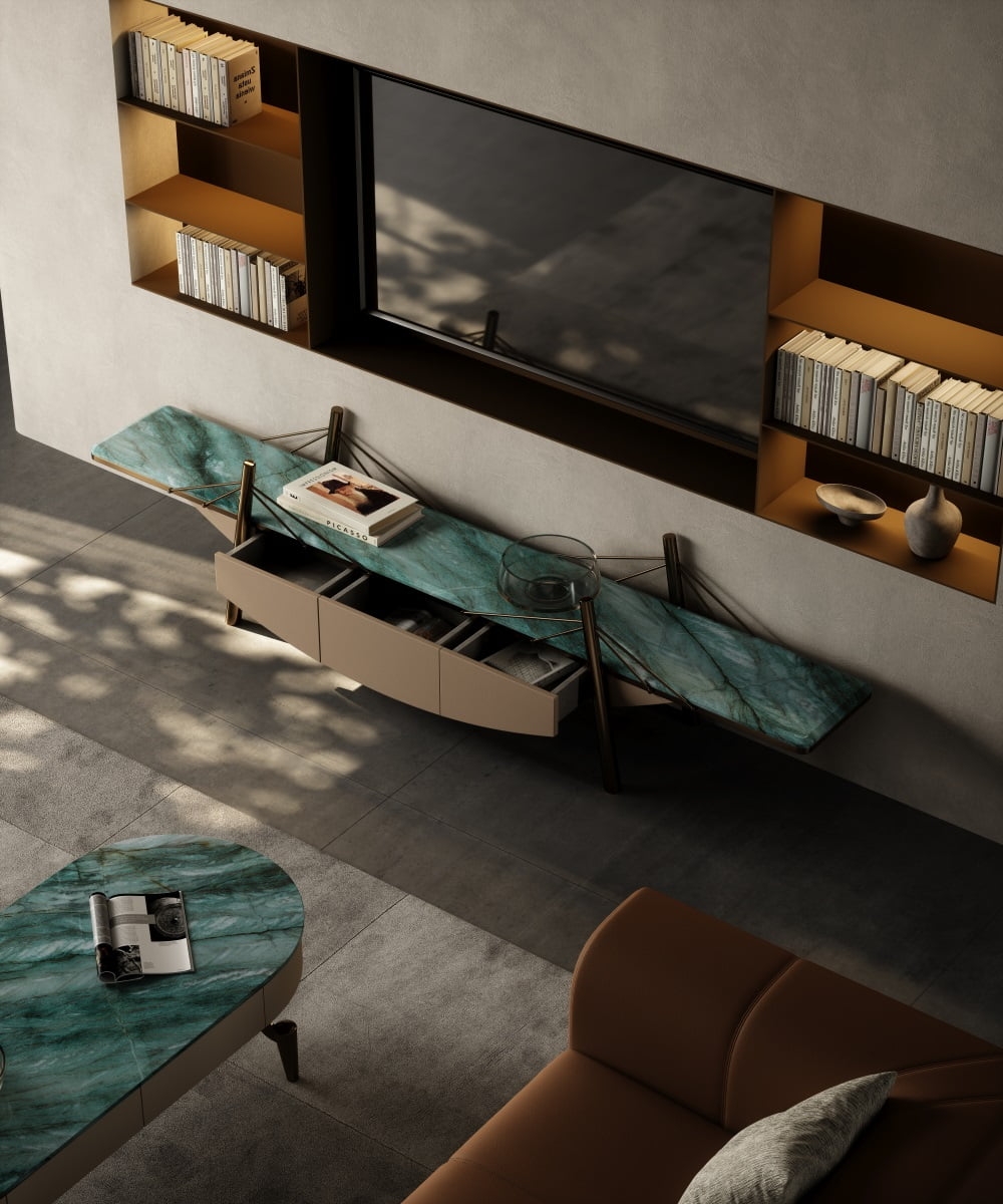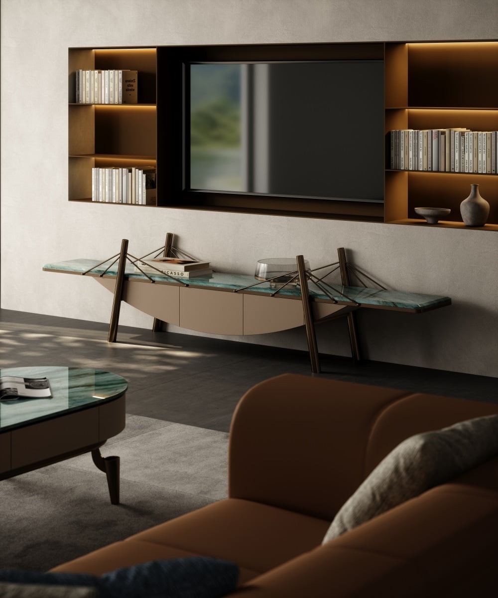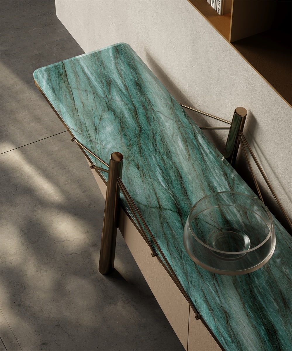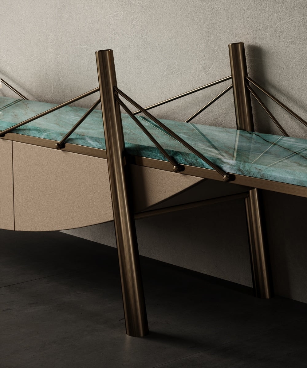 The joints of the rock slabs are CNC cut and manually filled, so the gaps are naturally hidden and the texture is coherent and unified; the joints between the metal frame and various materials are laser welded and manually adjusted, which is stable and without shaking, and the artistic form is fully presented; the linen cabinet and countertop are matched with manual layout, and the colors and shapes are harmoniously blended, integrating "exquisite detailism" into every bridge structure.