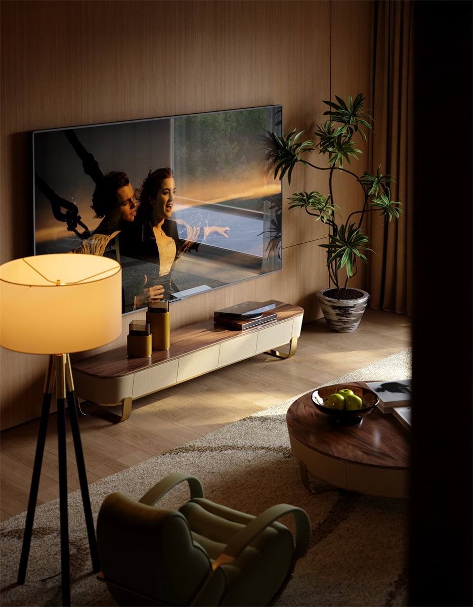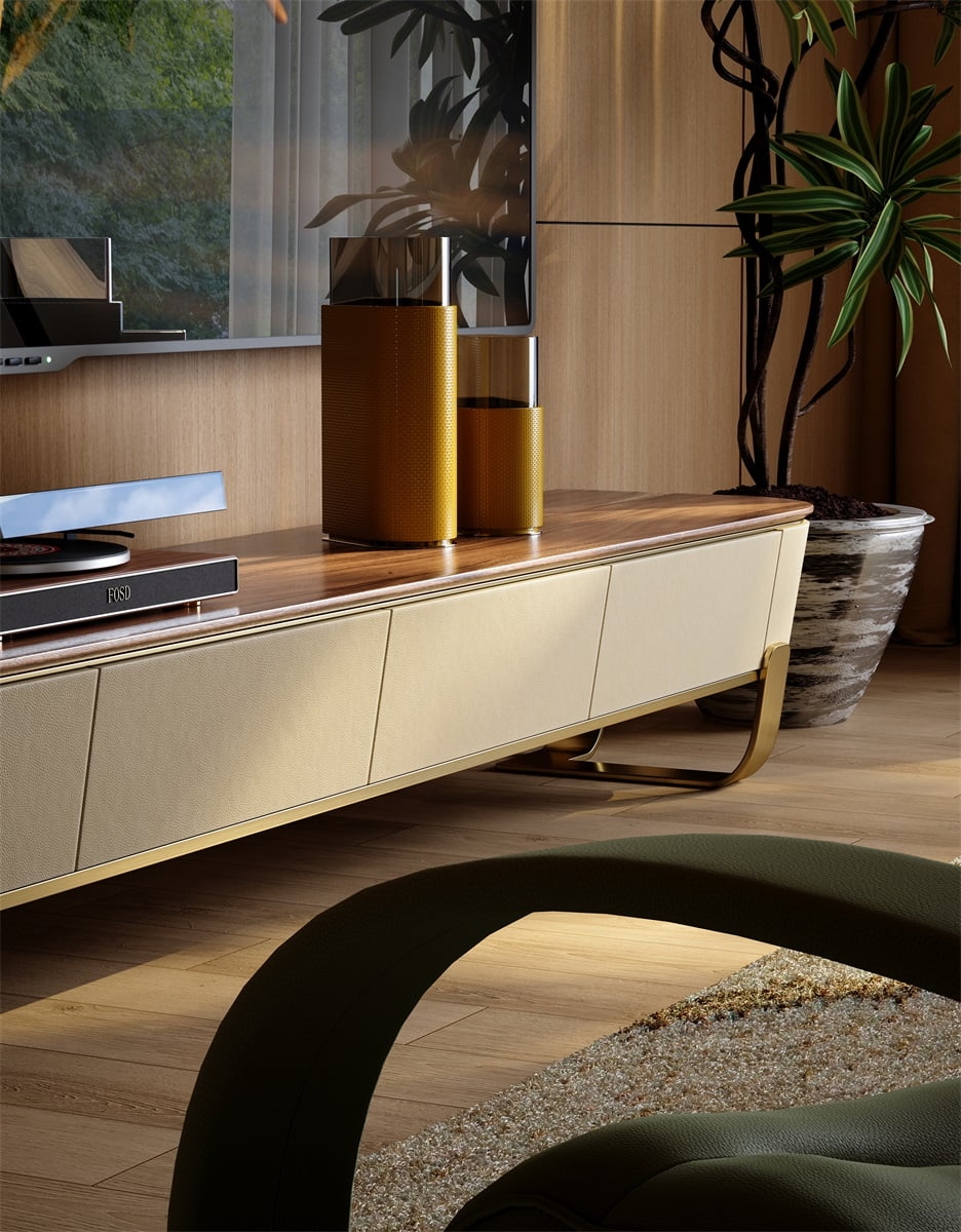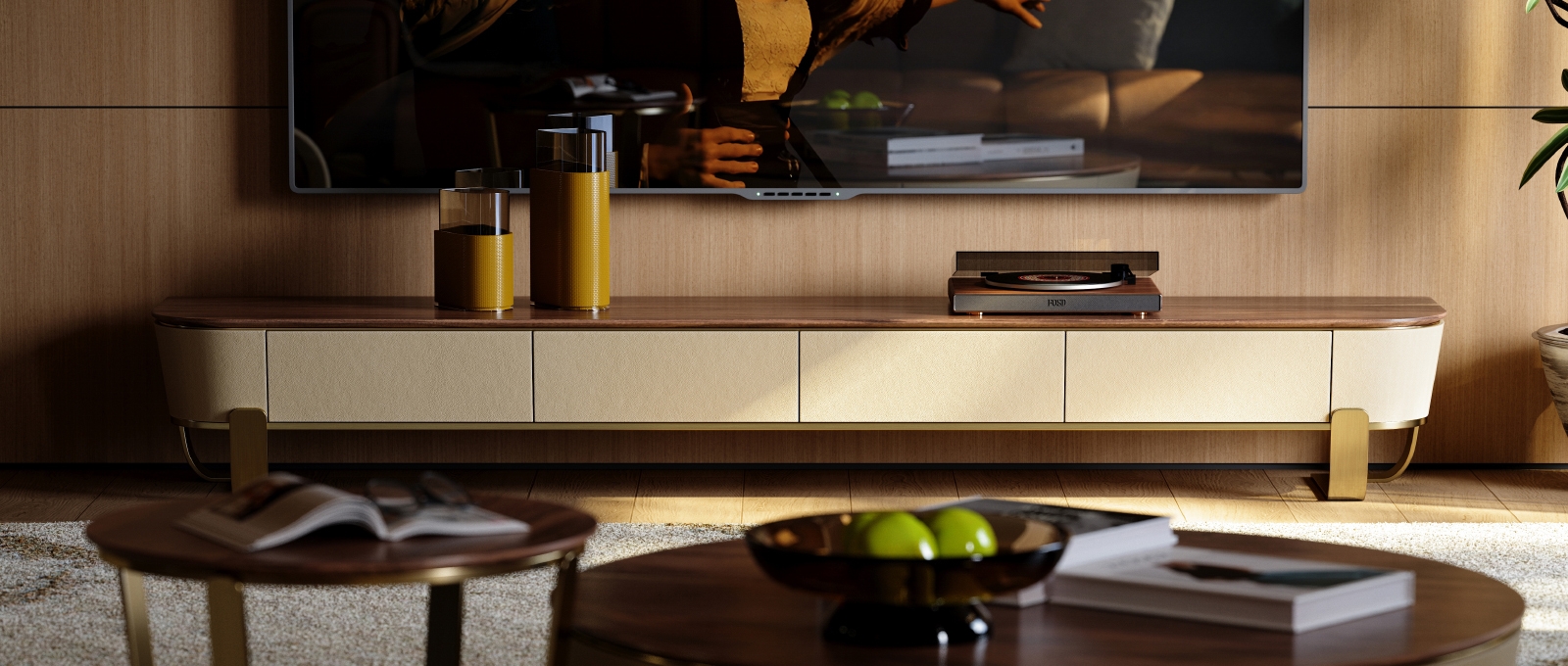In a scene that focuses on living room storage and spatial style, this TV cabinet combines the materials of rock slabs, linen, and metal, with a long layout + multi-drawer storage design, becoming the "aesthetic core" of the living room, turning every time you watch a movie or rest into a pleasant experience blending with quality life.