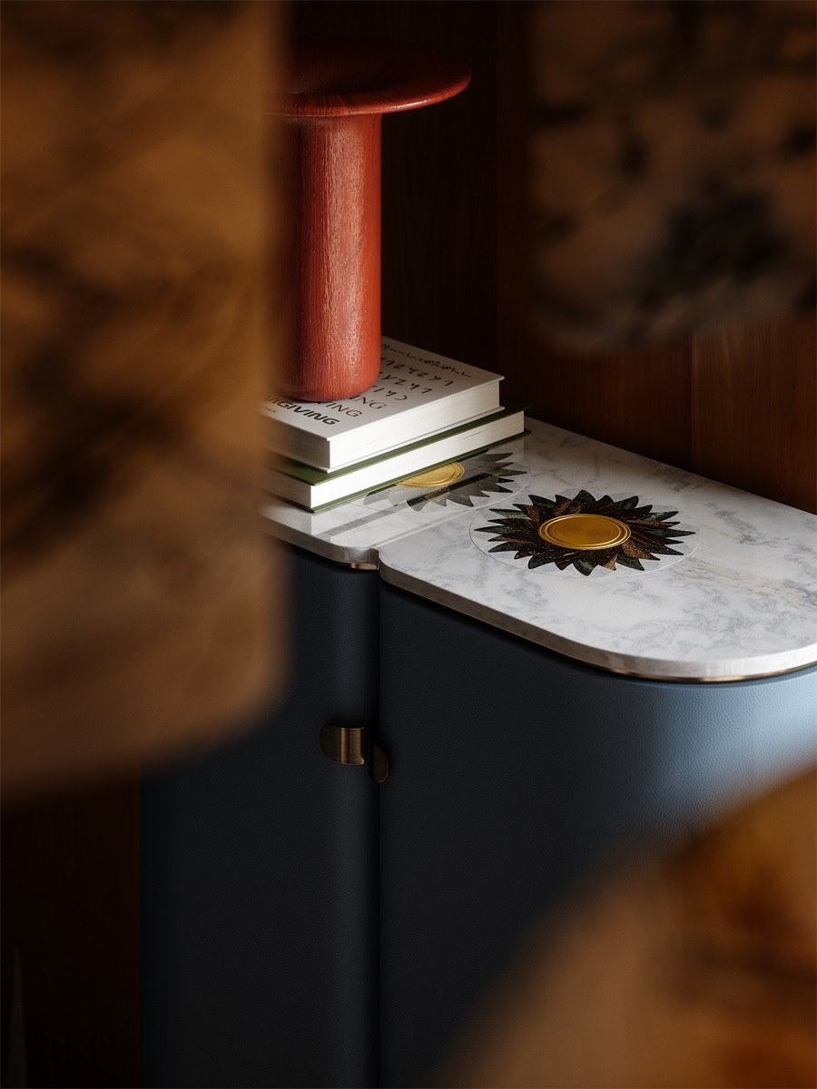shadow, and the hues of natural luxury stone to depict the elegant form and spirit of the golden sunflower. It not only serves