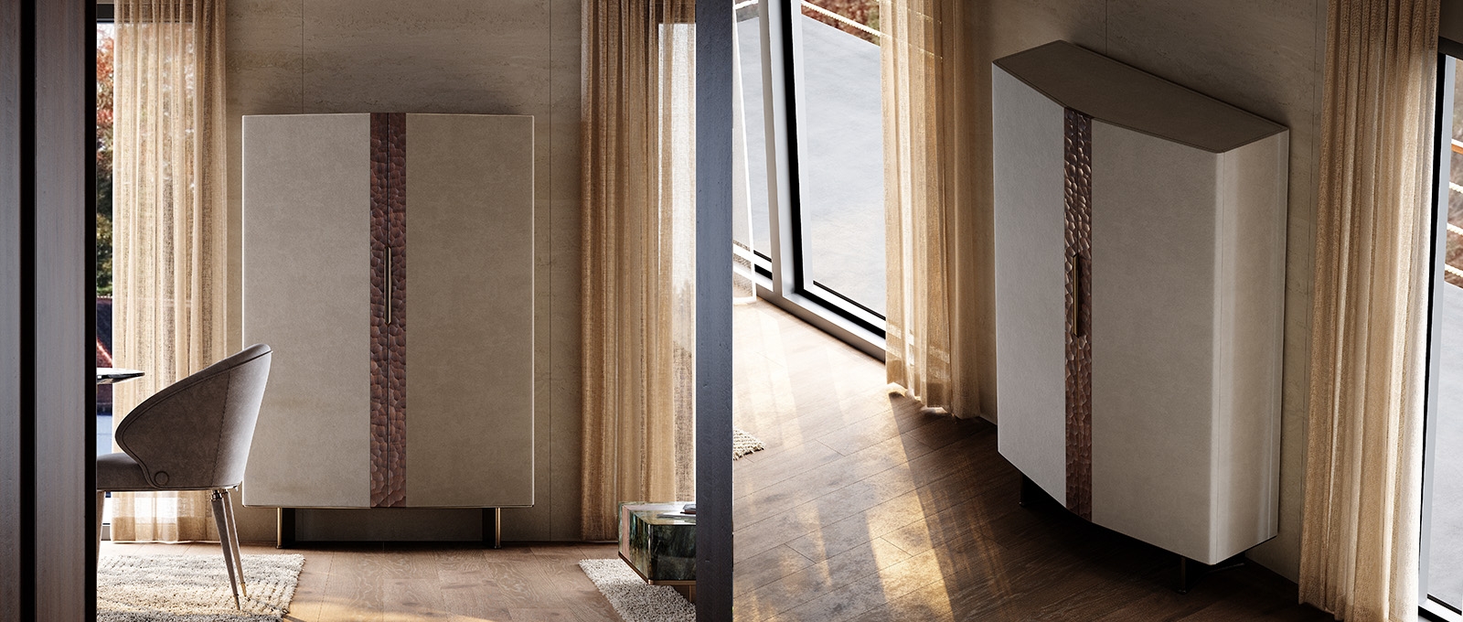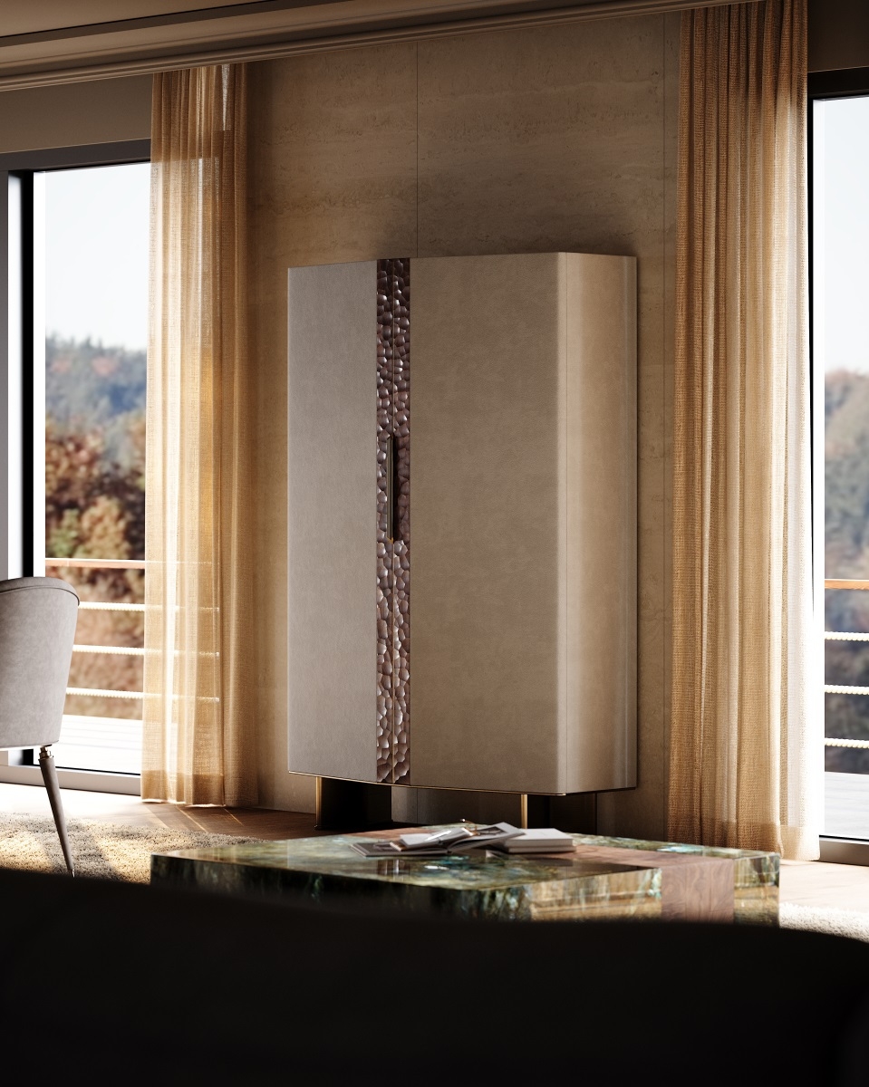 The product creates a strong sense of space with clean, generous lines. Its linear metal structure stands out as a highlight,