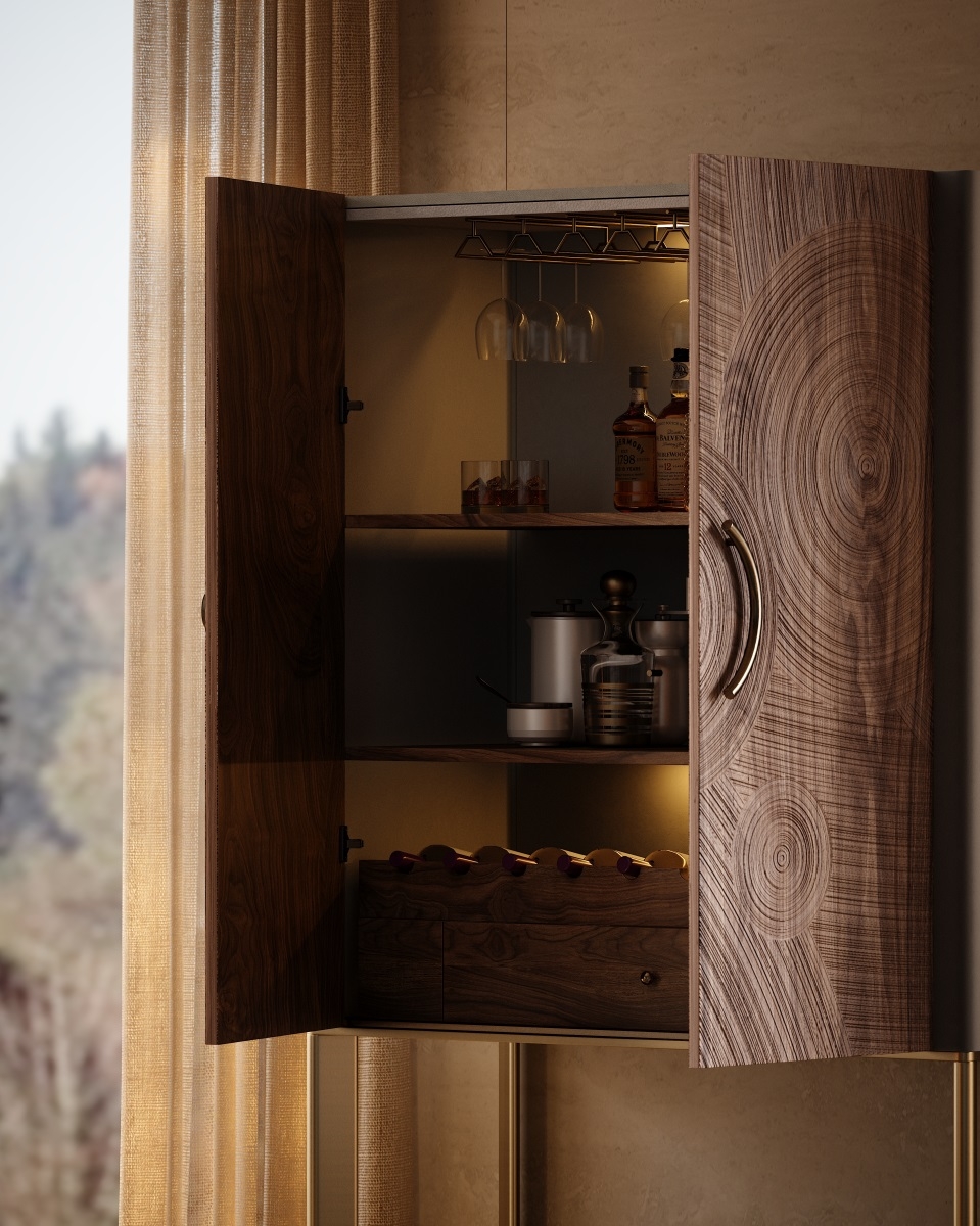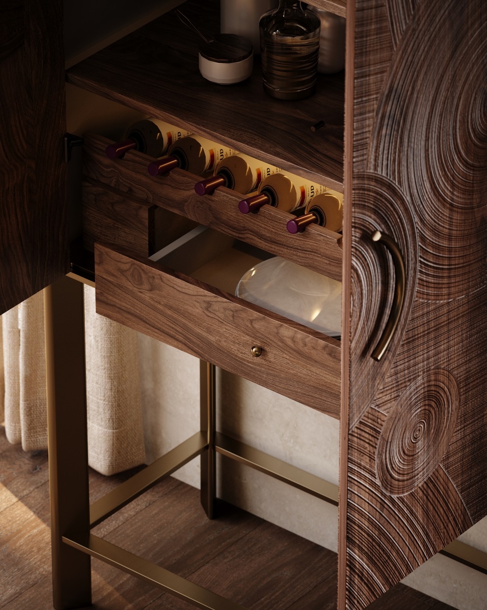 and set against the starry-night-themed carvings, organizing and storing becomes an expression of